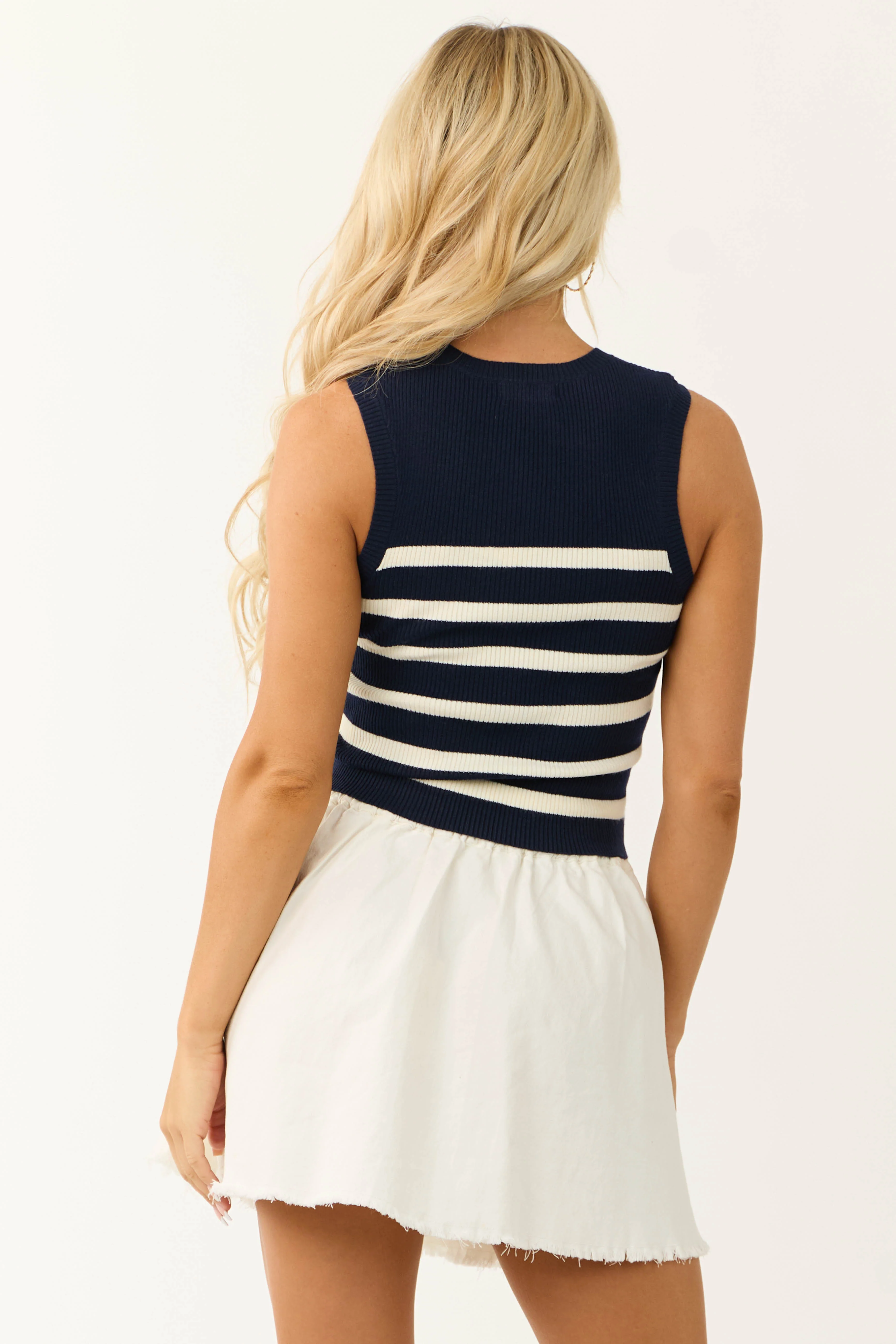 Navy and Cream Striped Sweater Knit Tank Top