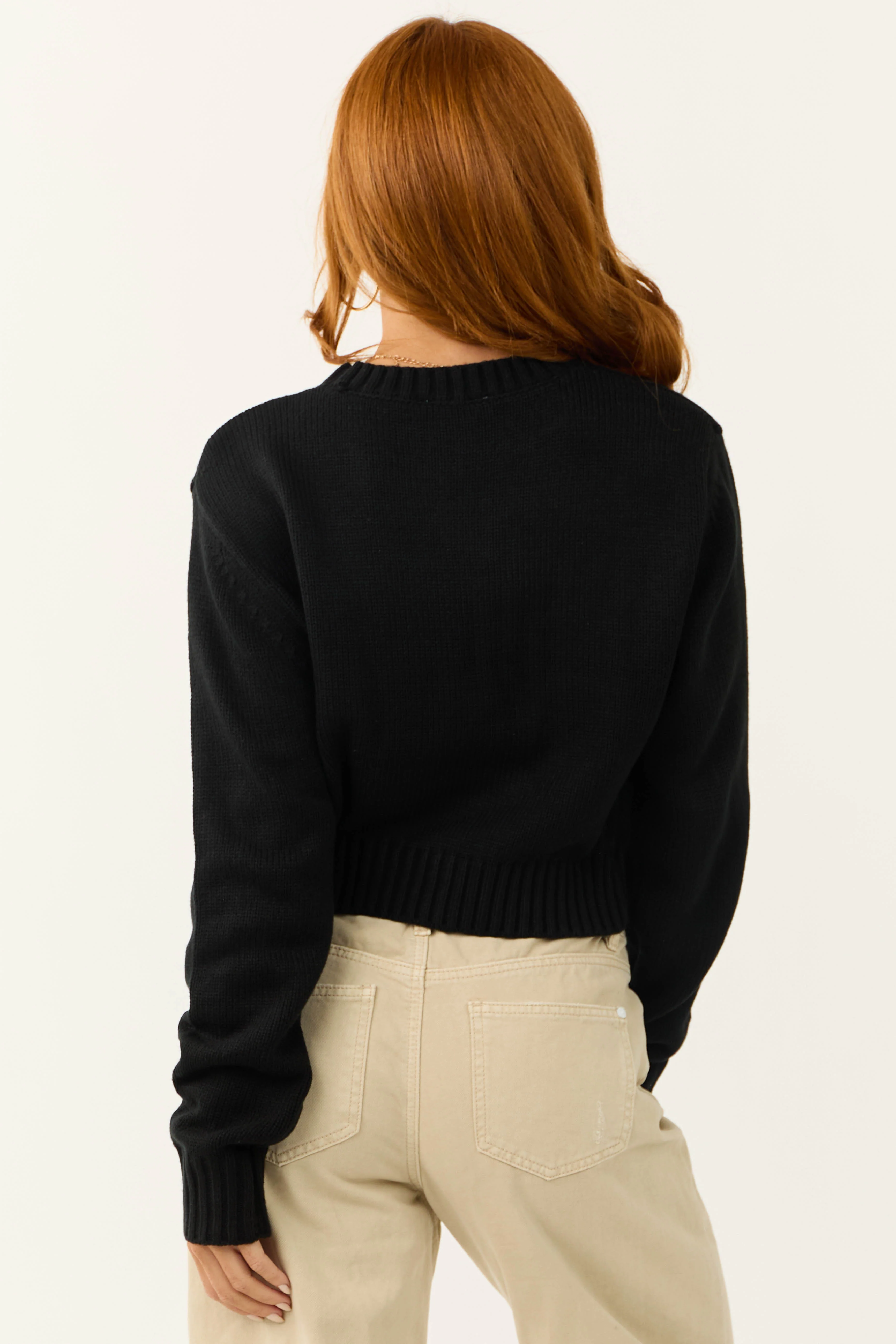 Black Cropped Ribbed Trim Knit Sweater