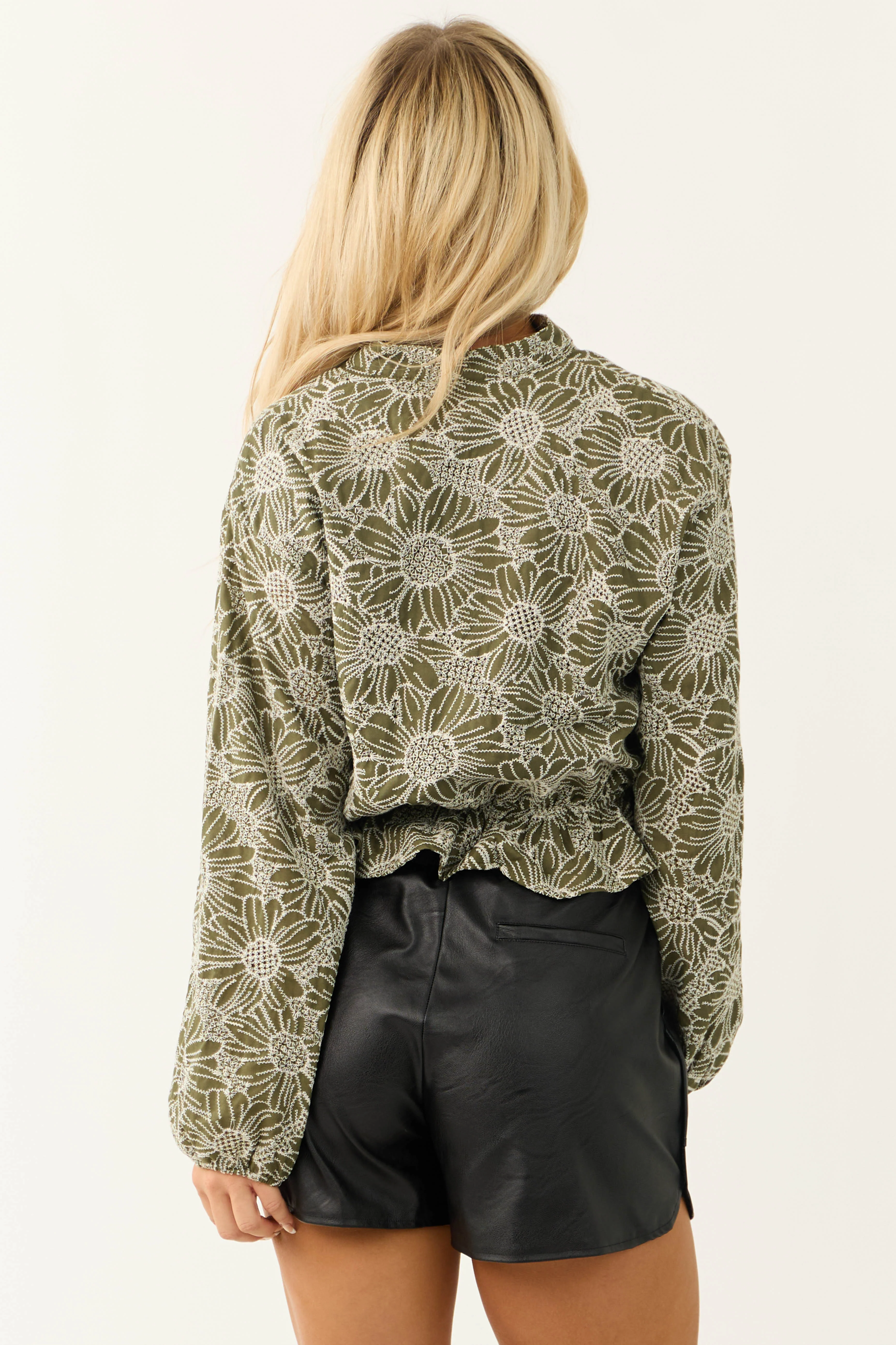 Olive Floral Embroidered Long Sleeve Blouse