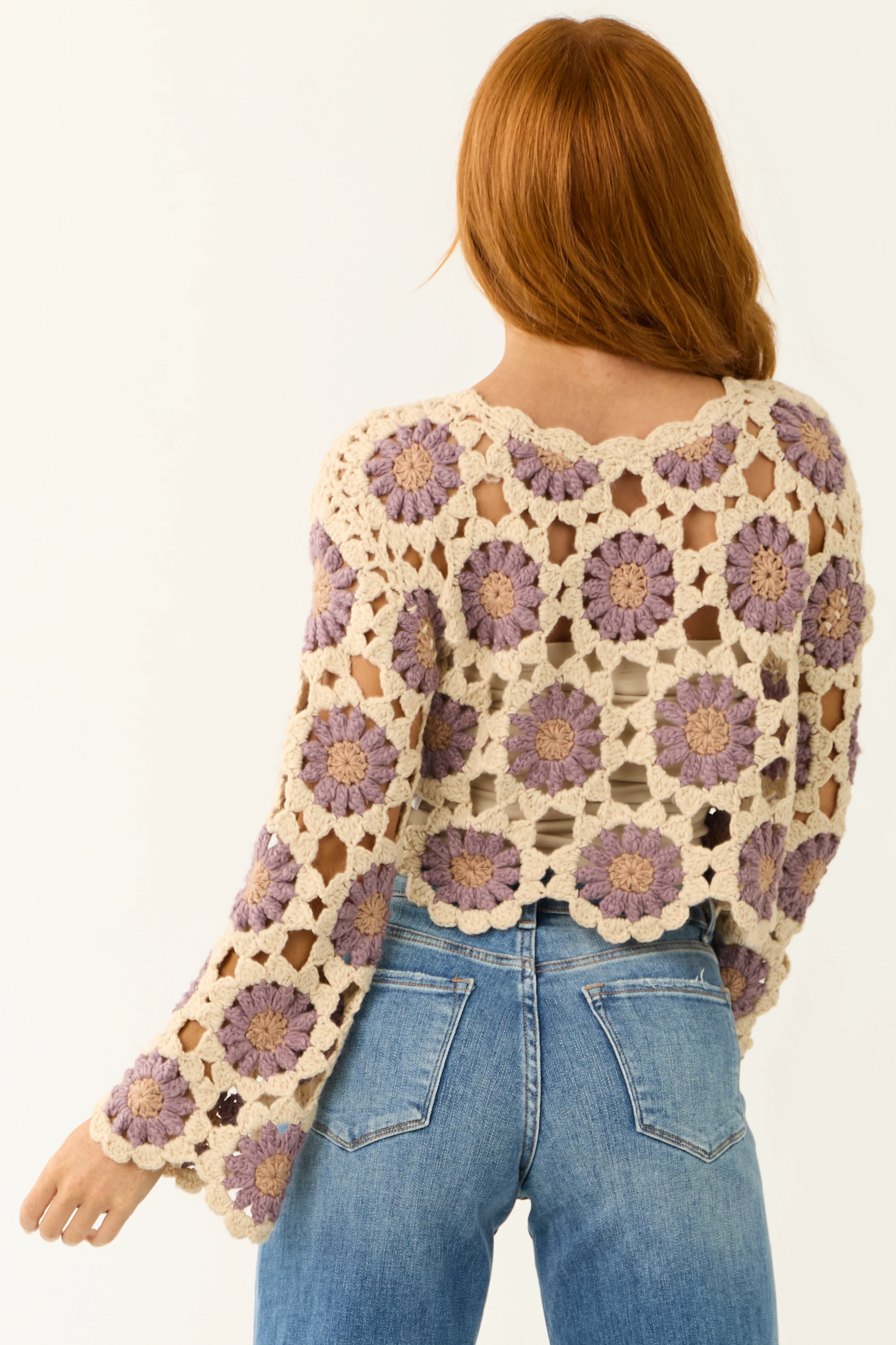 Cream Contrast Pattern Ruffle Sleeve Knit Top