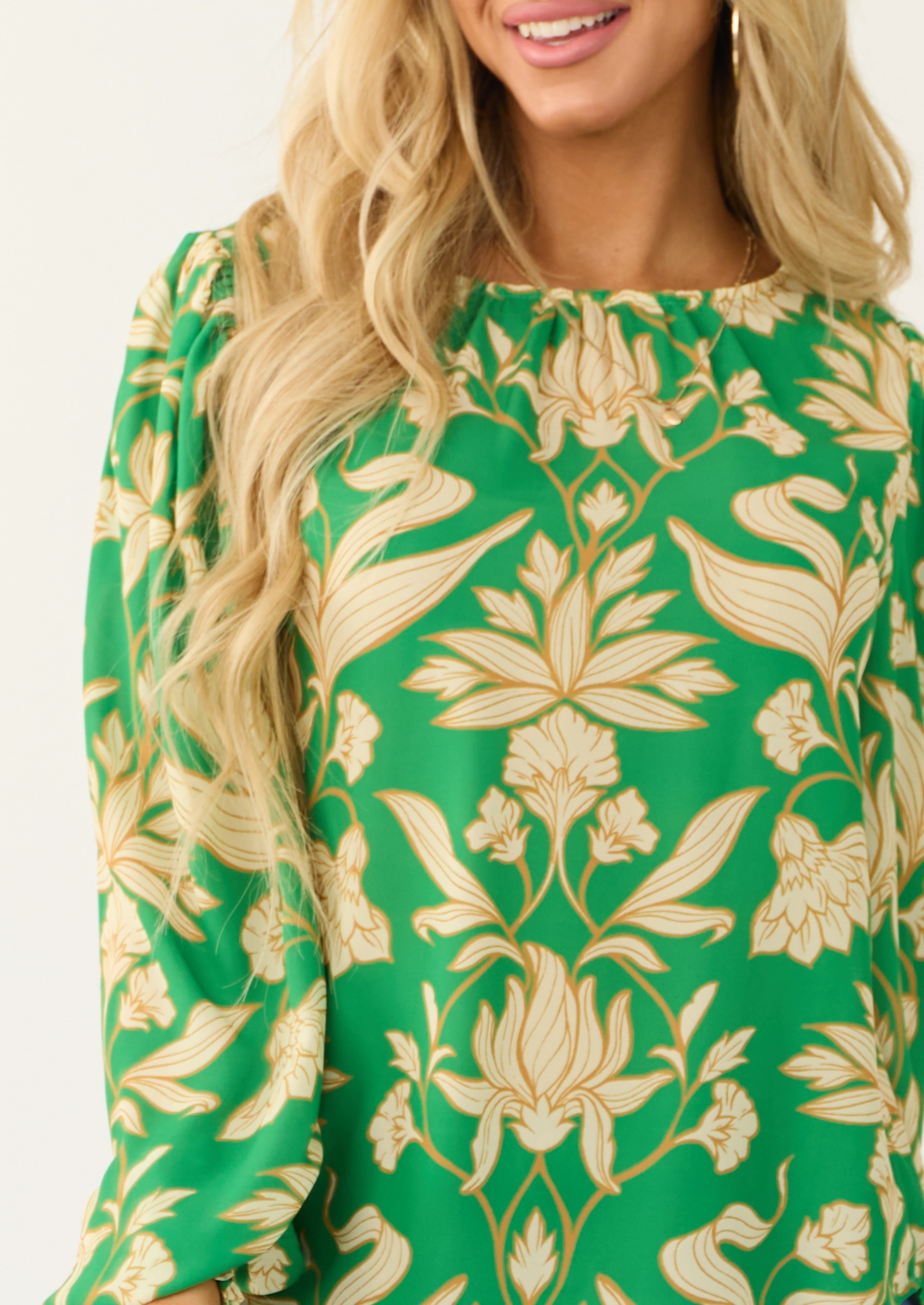 Flying Tomato Kelly Green Leaf Print Long Sleeve Top