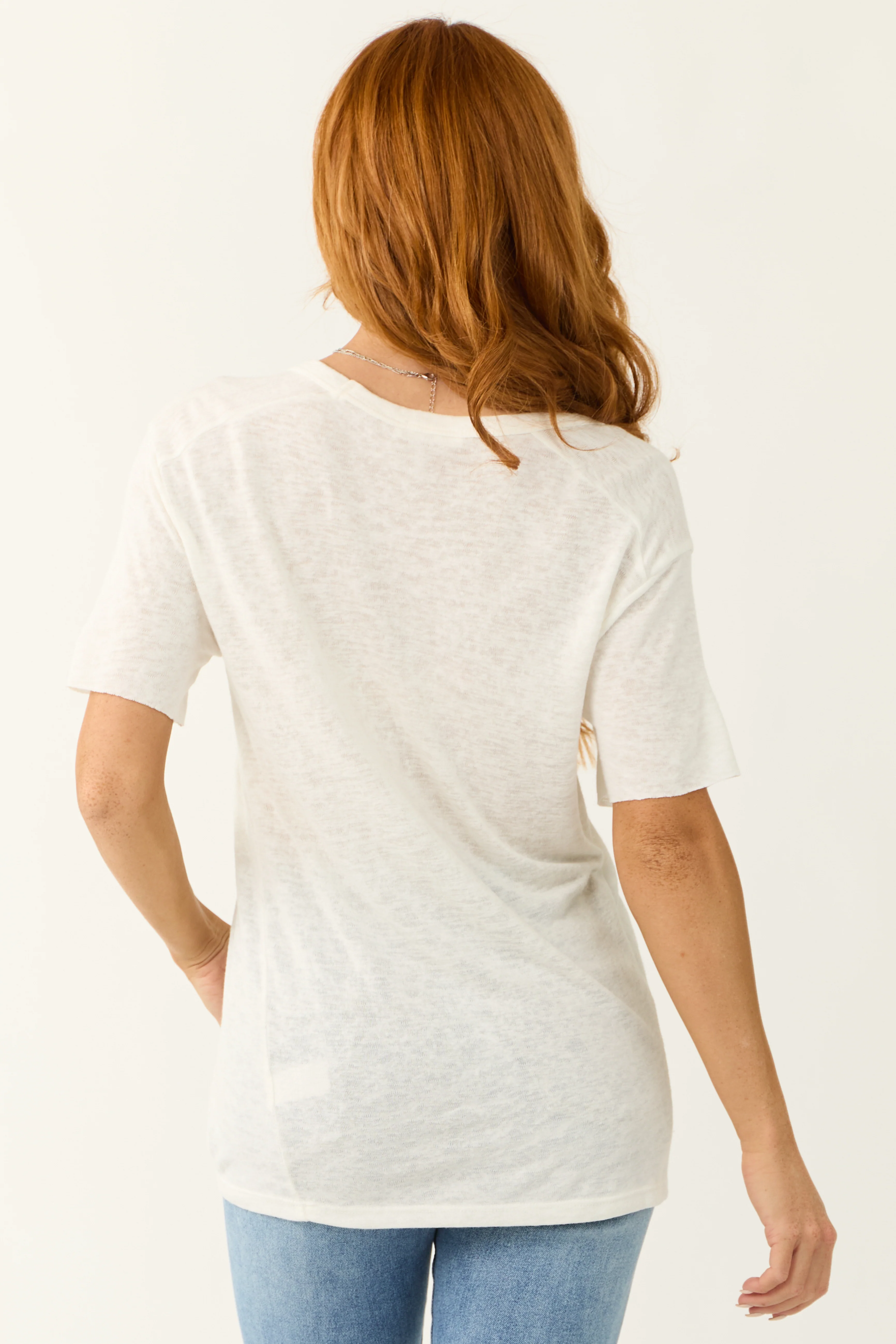 Ivory V Neck Chest Pocket Short Sleeve Top