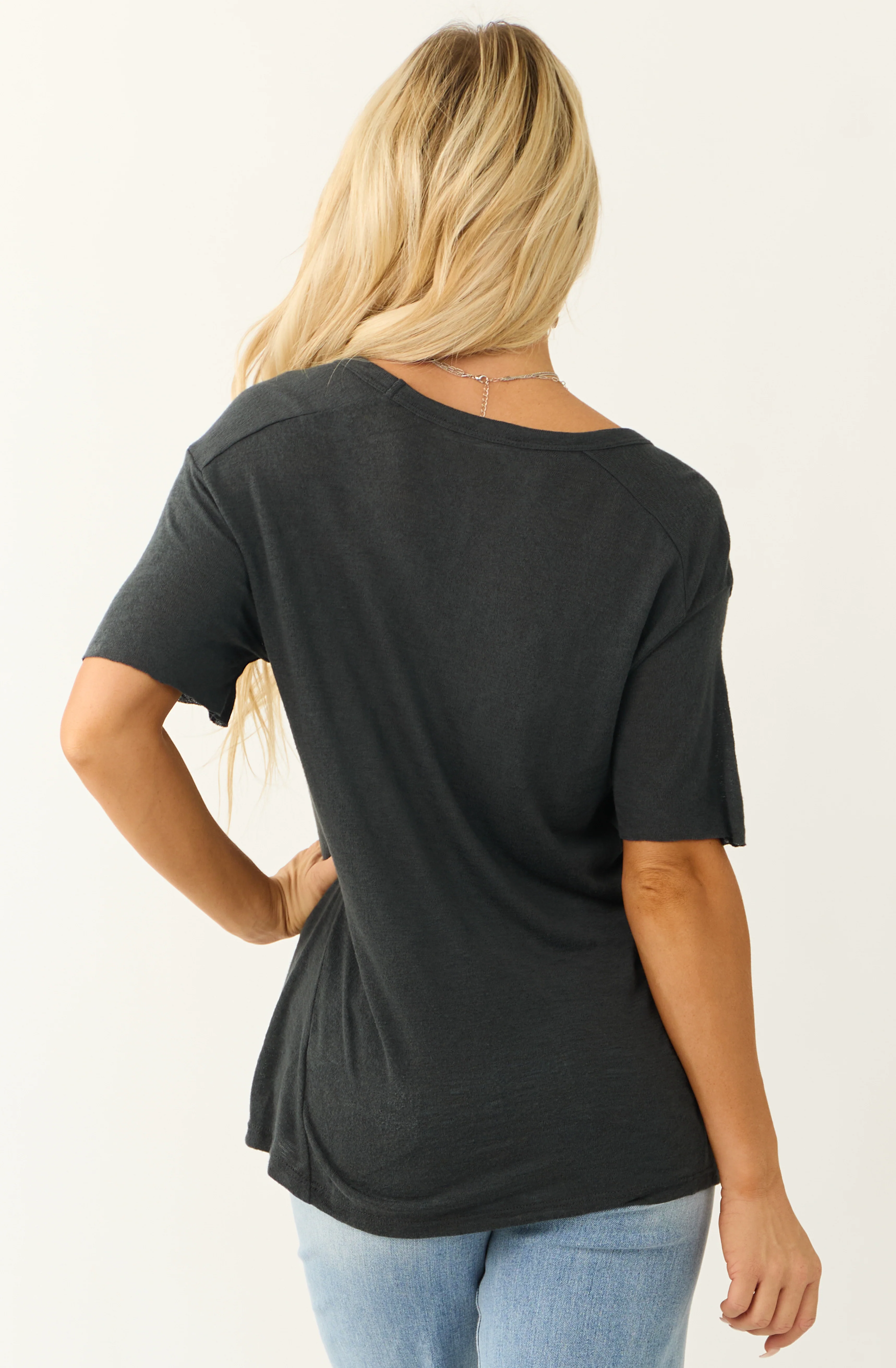 Charcoal Slub Knit Cuffed Short Sleeve Tee