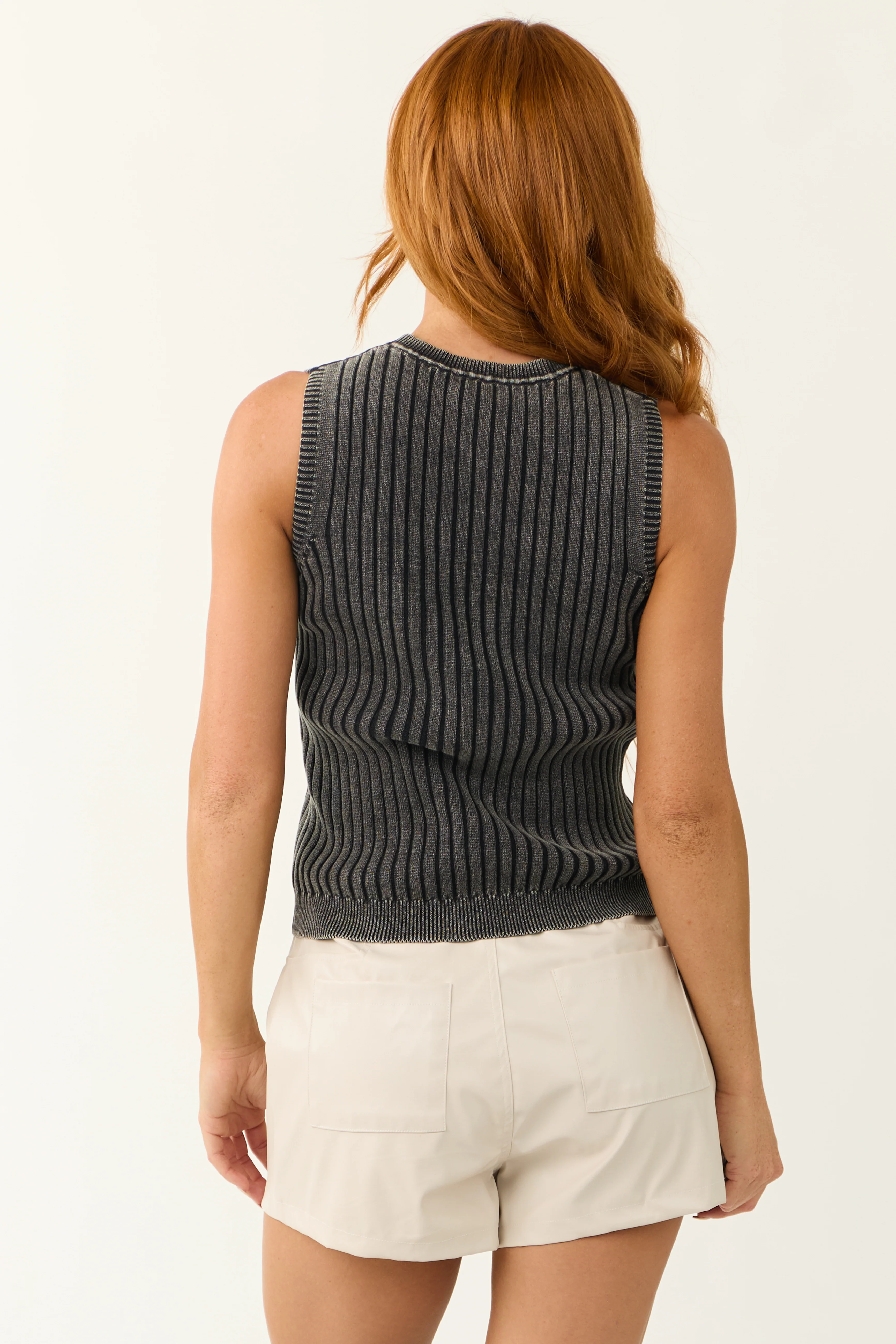 Charcoal Ribbed Knit Sleeveless Fitted Top
