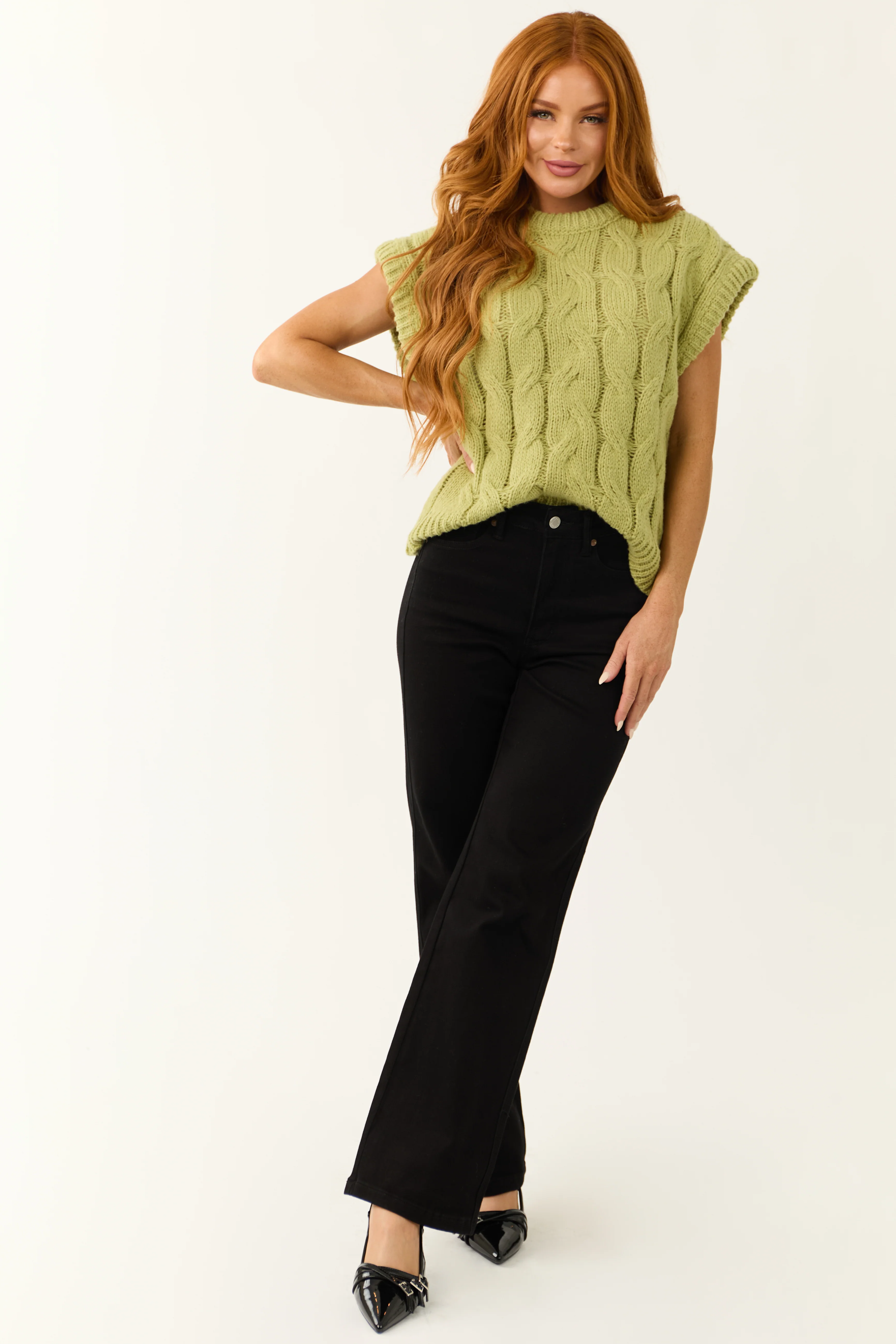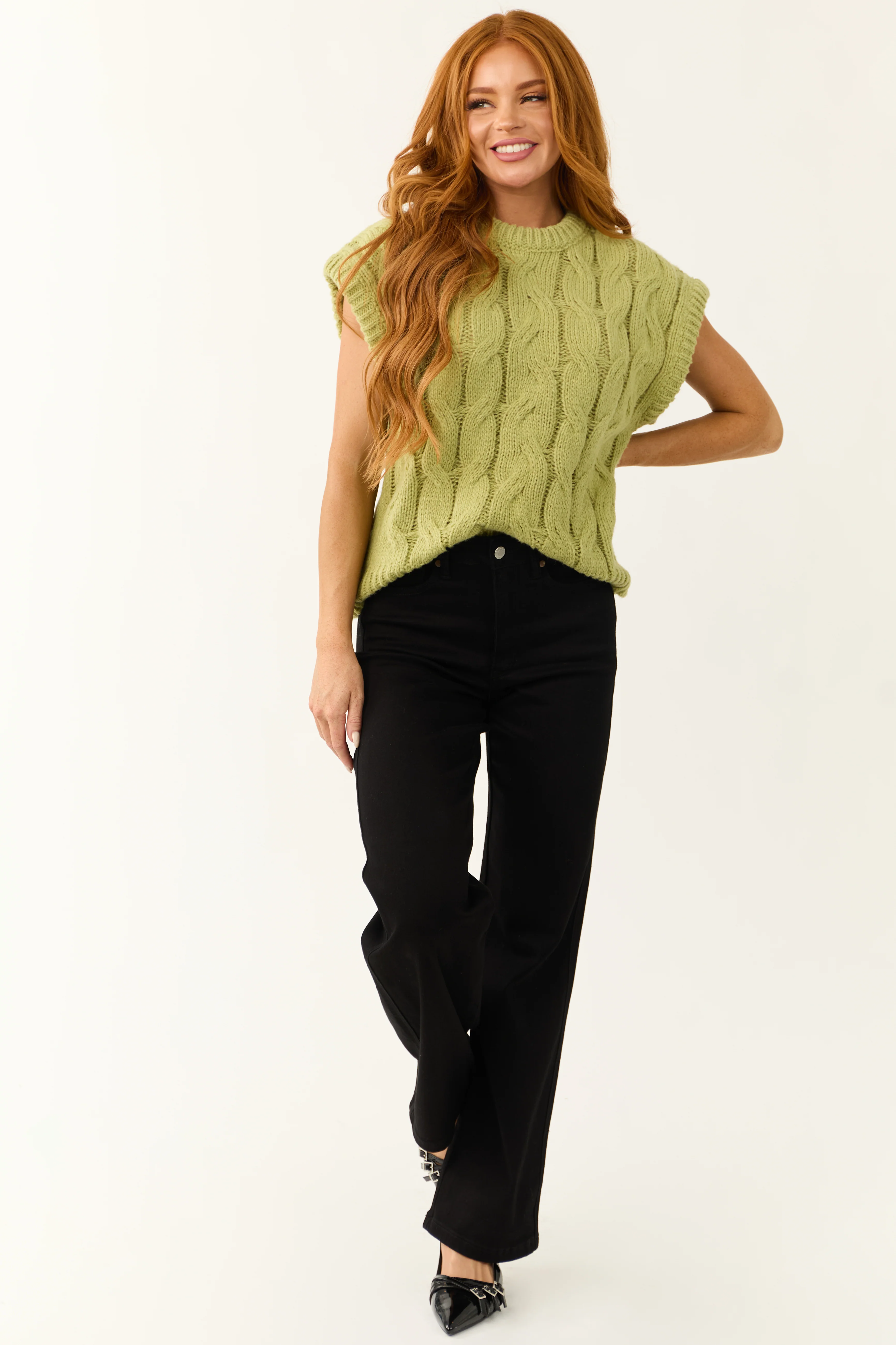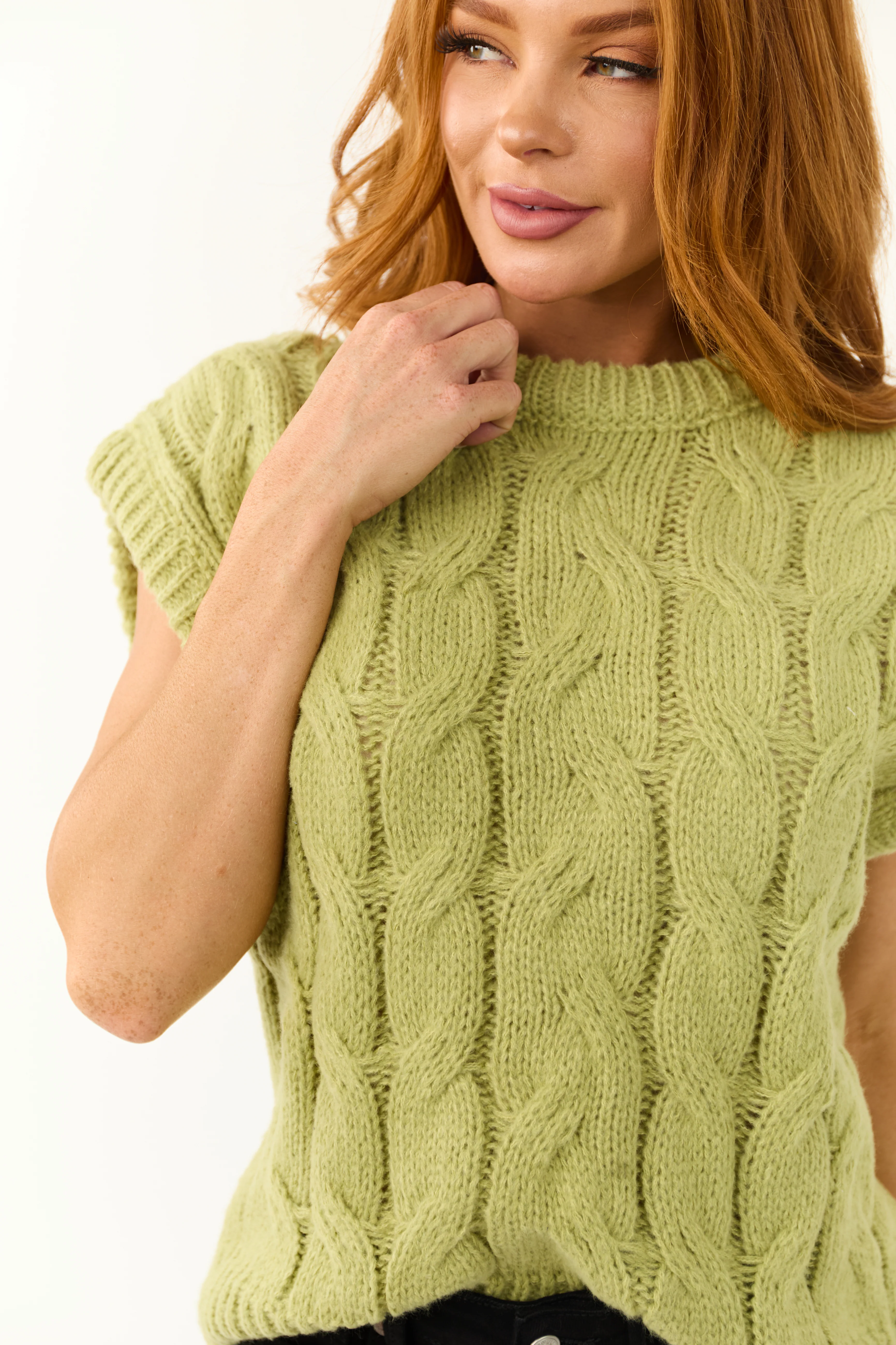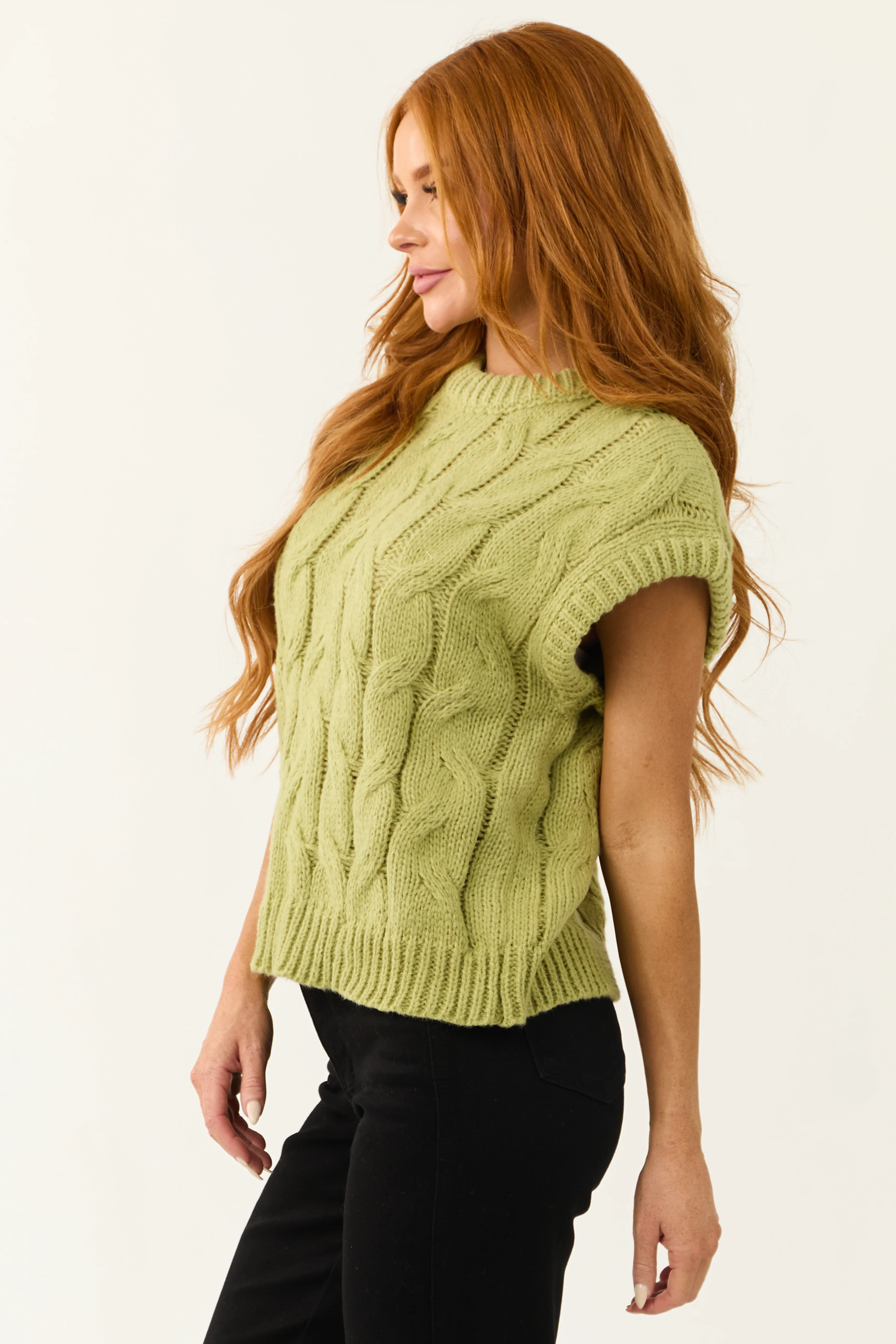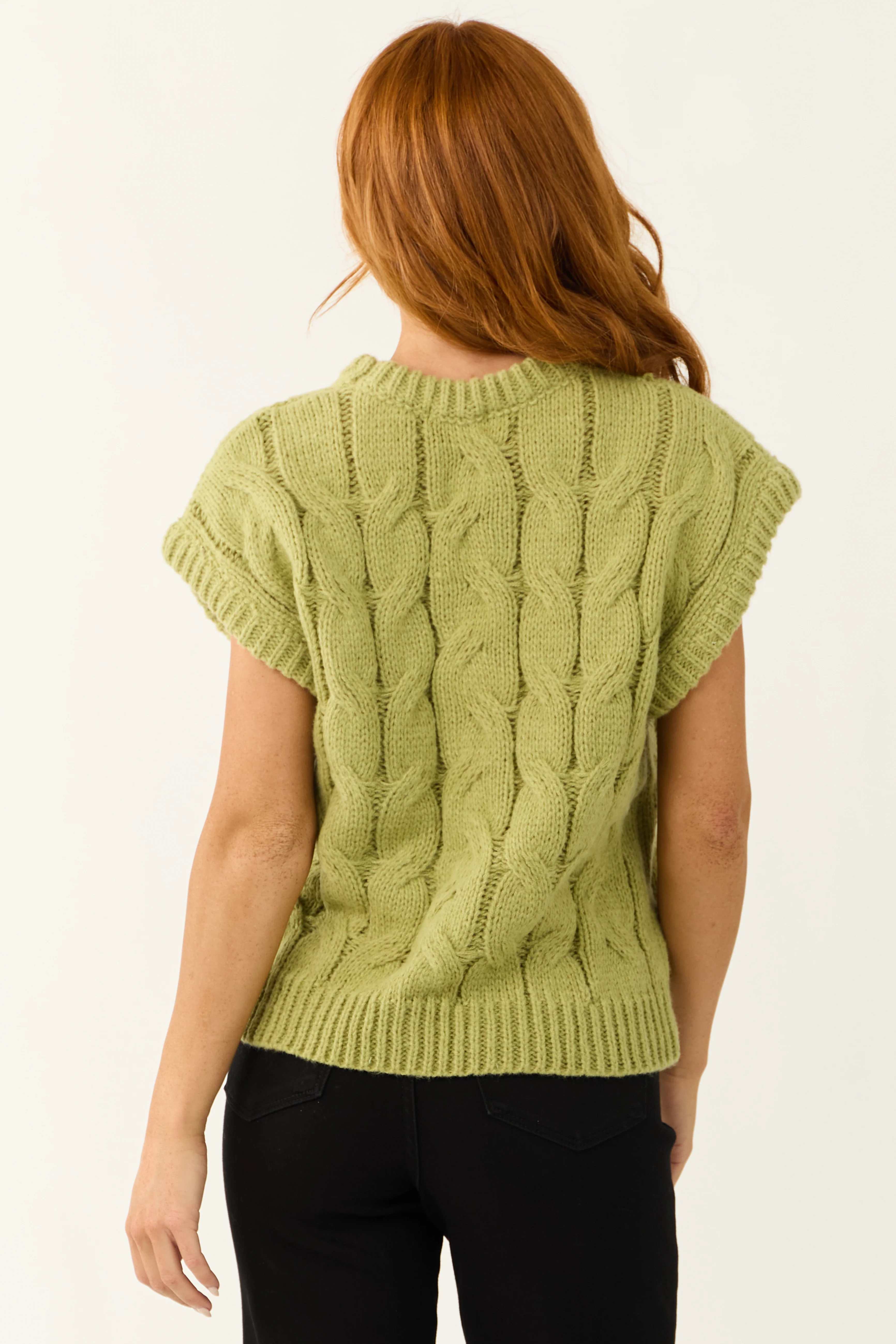 Pistachio Cable Knit Sweater Vest