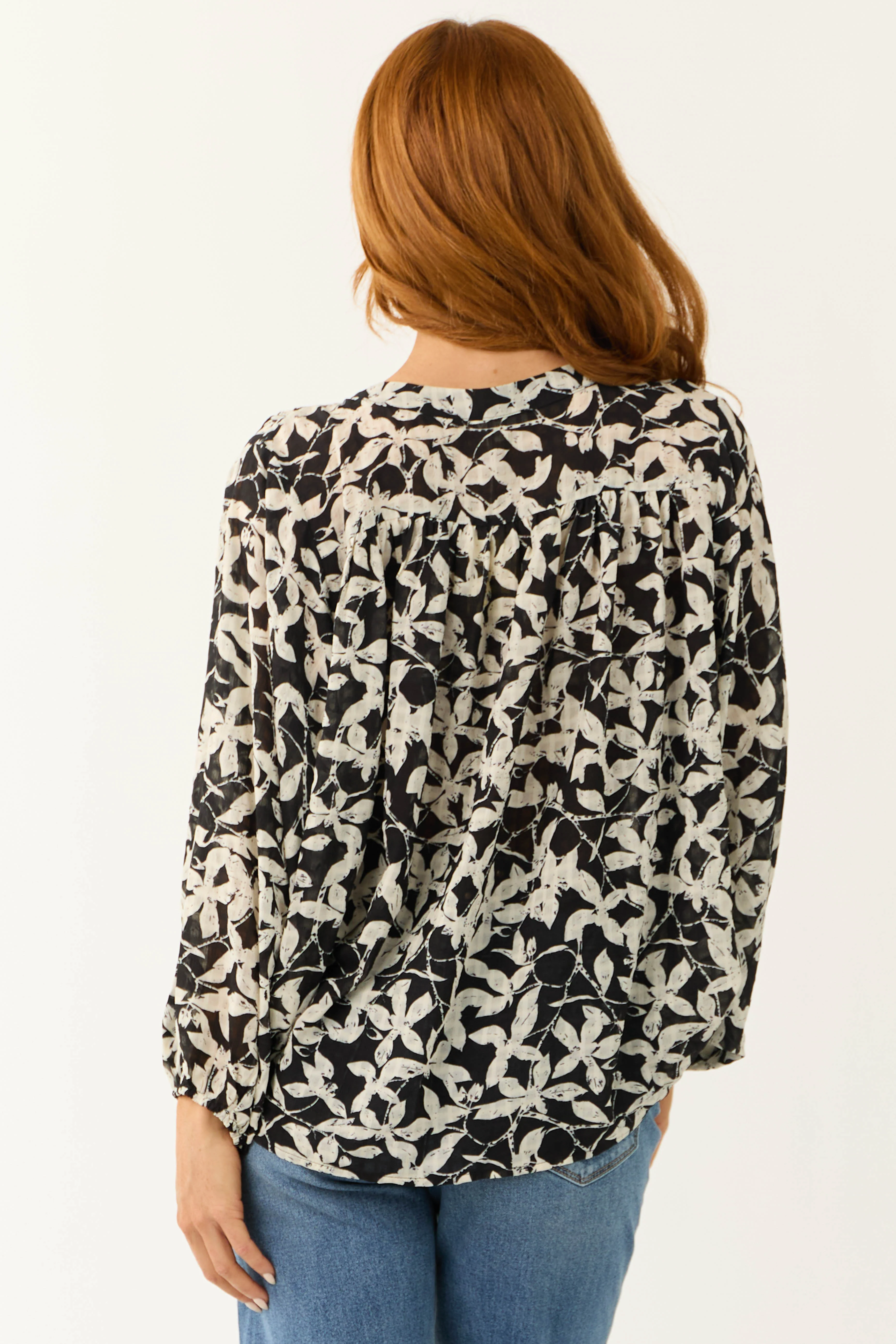 Black and Coconut Floral Print Buttoned Top