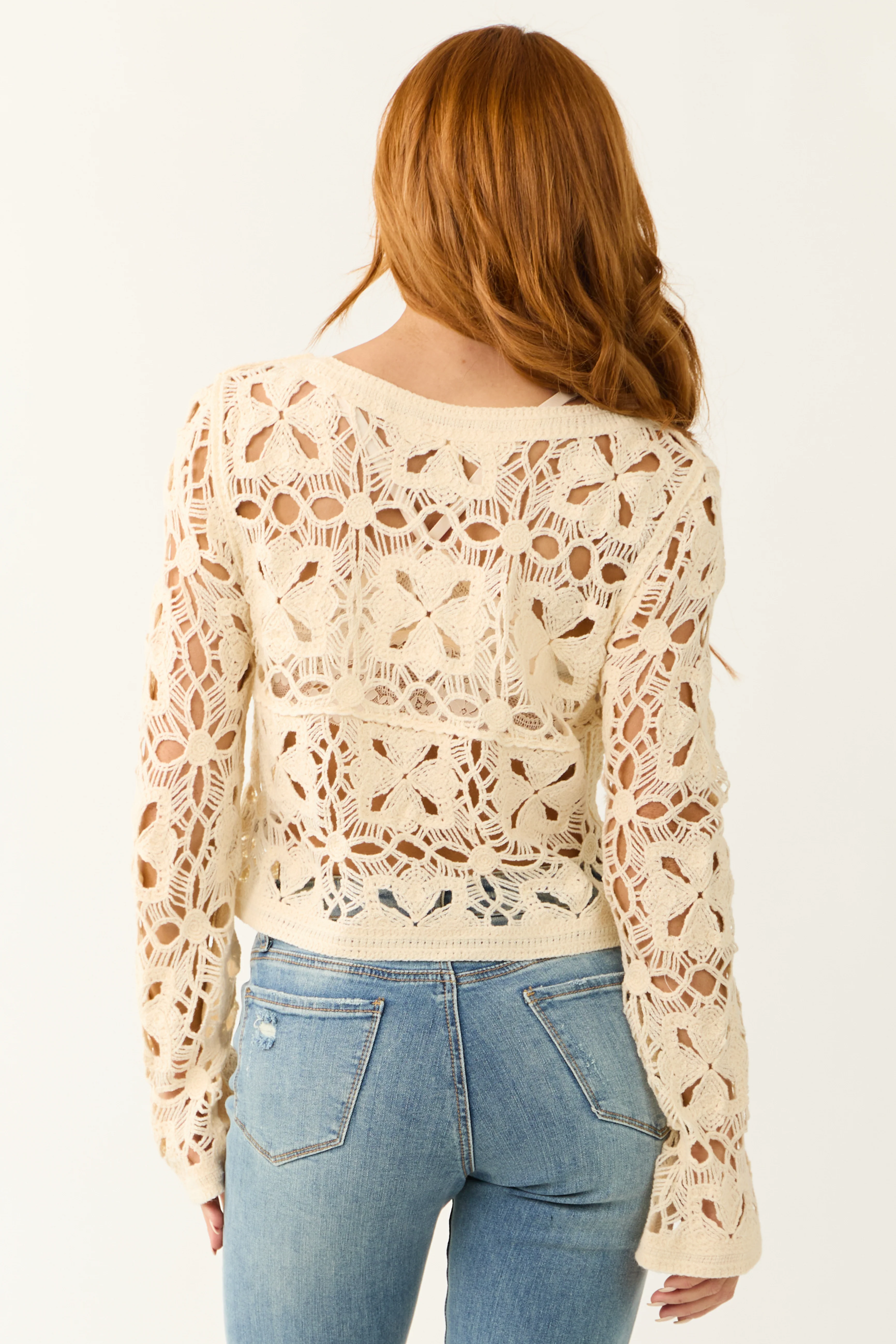 Vanilla Open Crochet Abstract Floral Sweater Knit