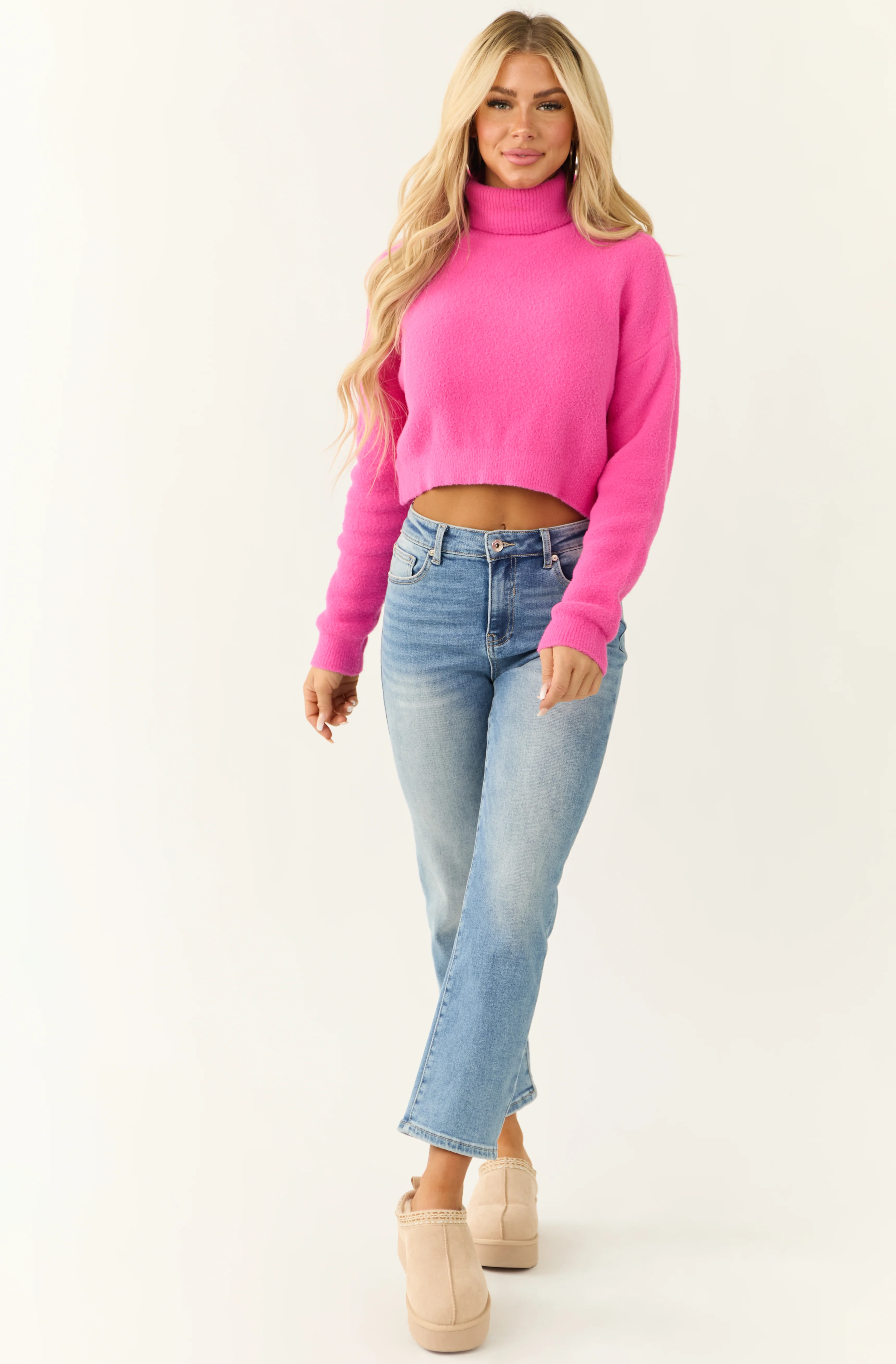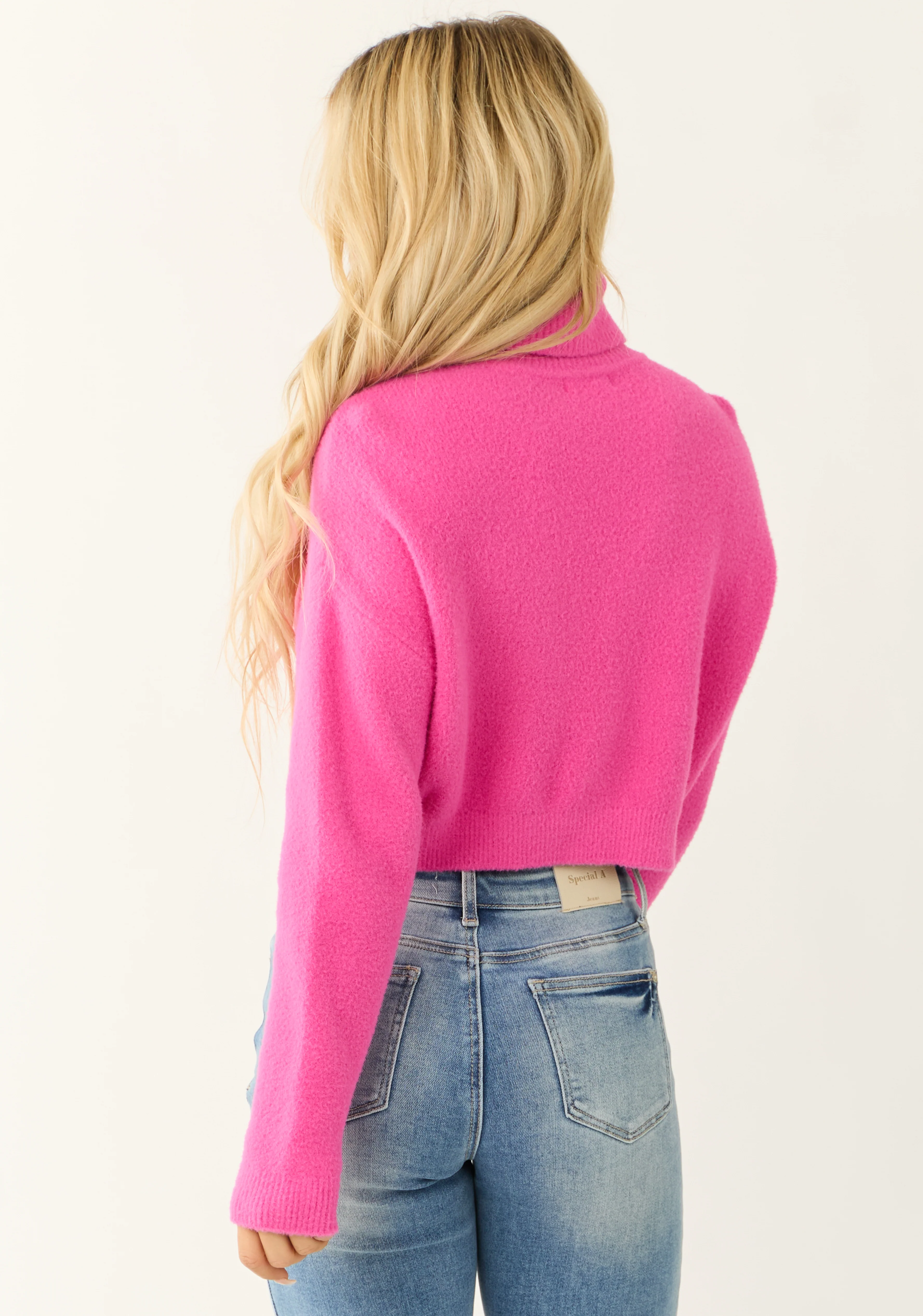 Fuchsia Cropped Turtleneck Fuzzy Sweater