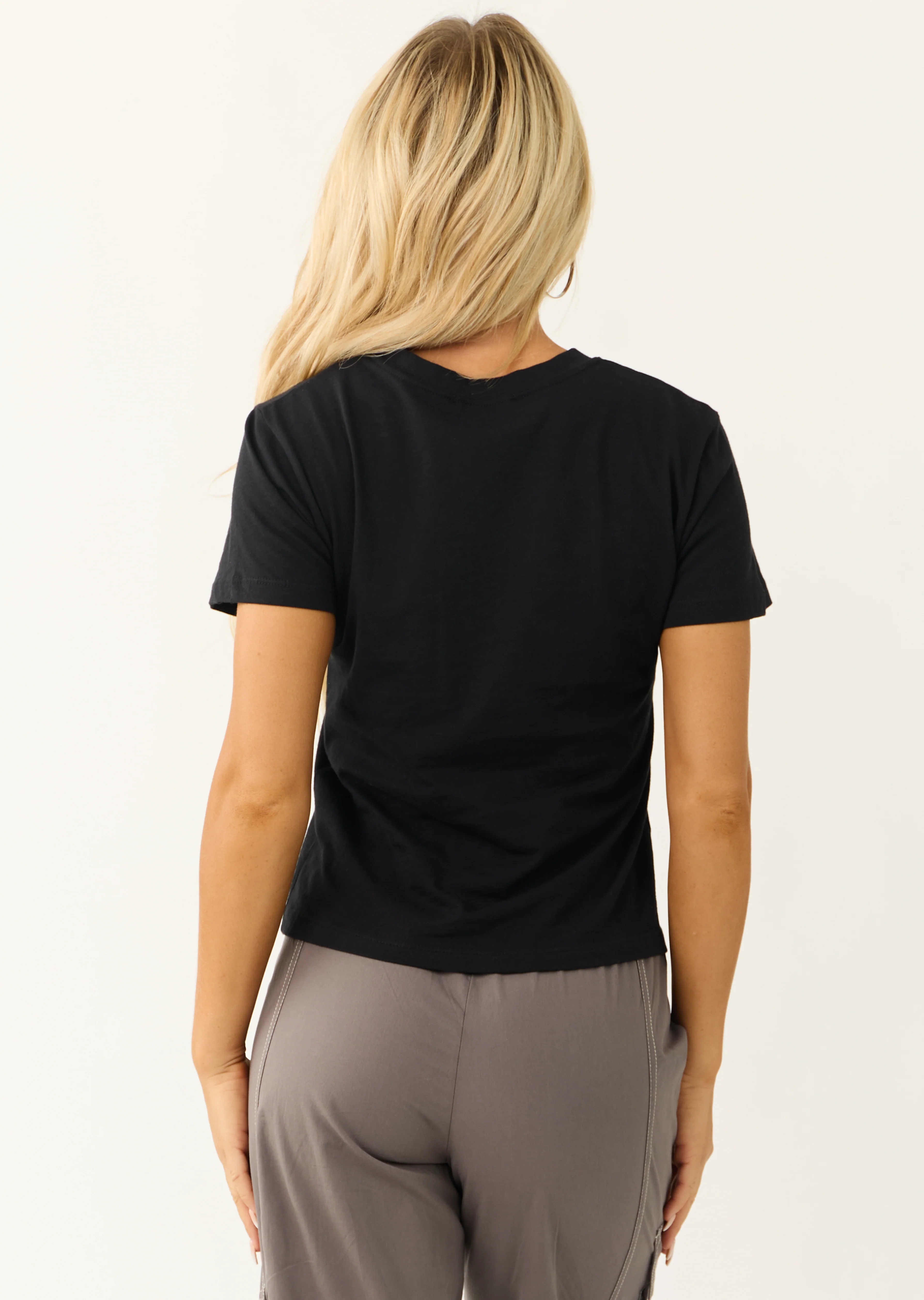 Black V Neck Short Sleeve Ribbed Knit Bodysuit