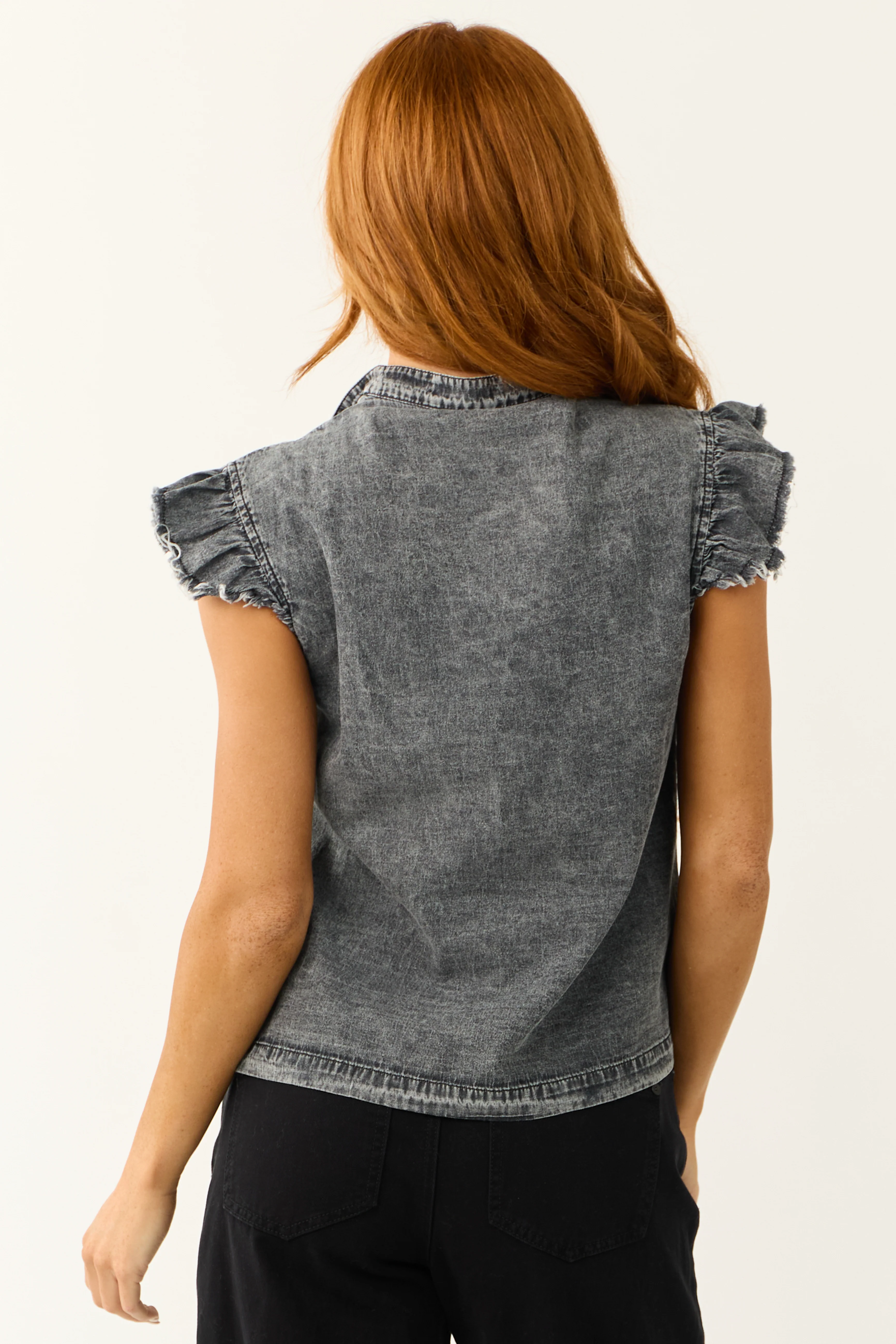 Stormy Grey Short Ruffle Sleeve Babydoll Top