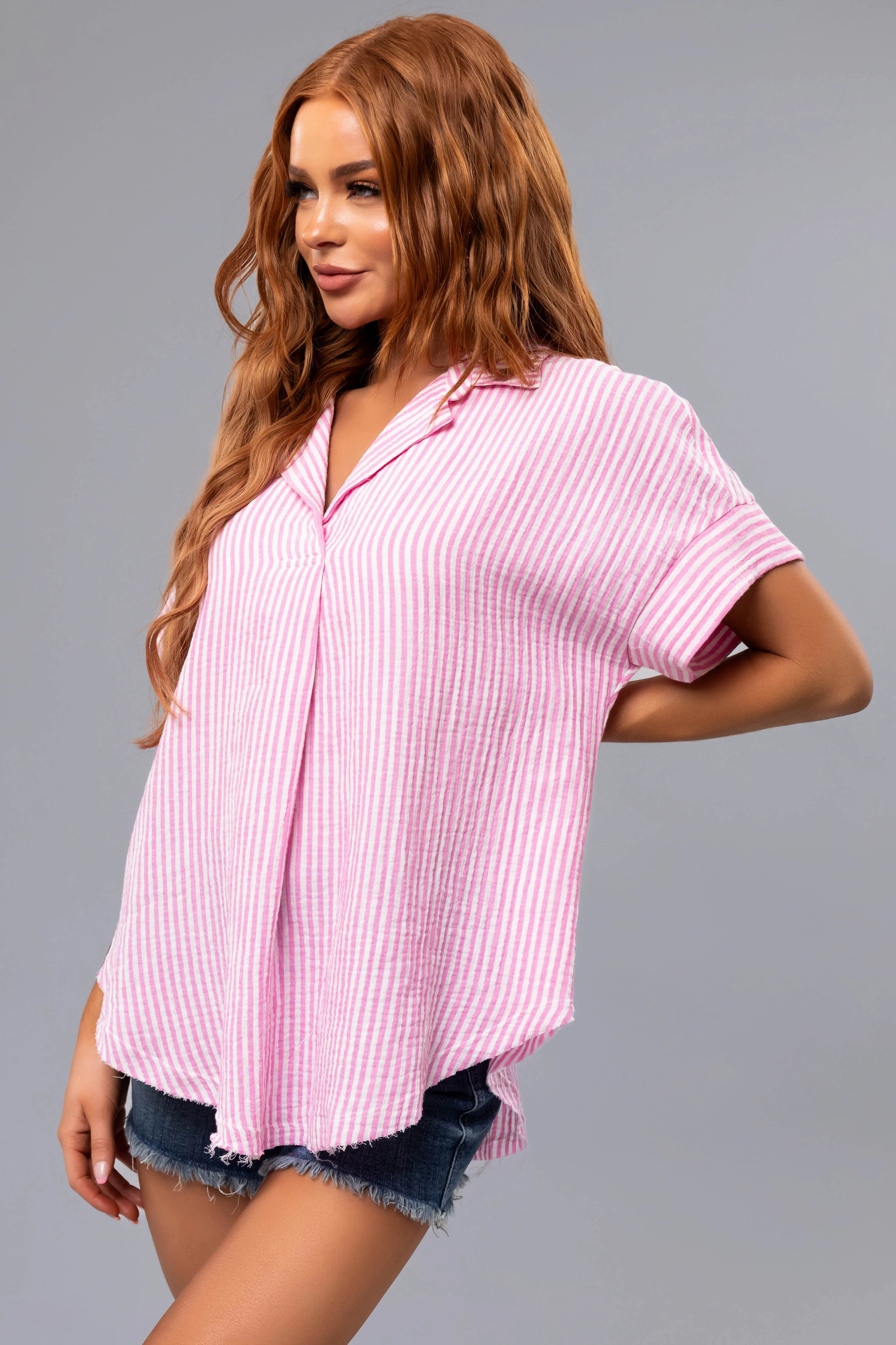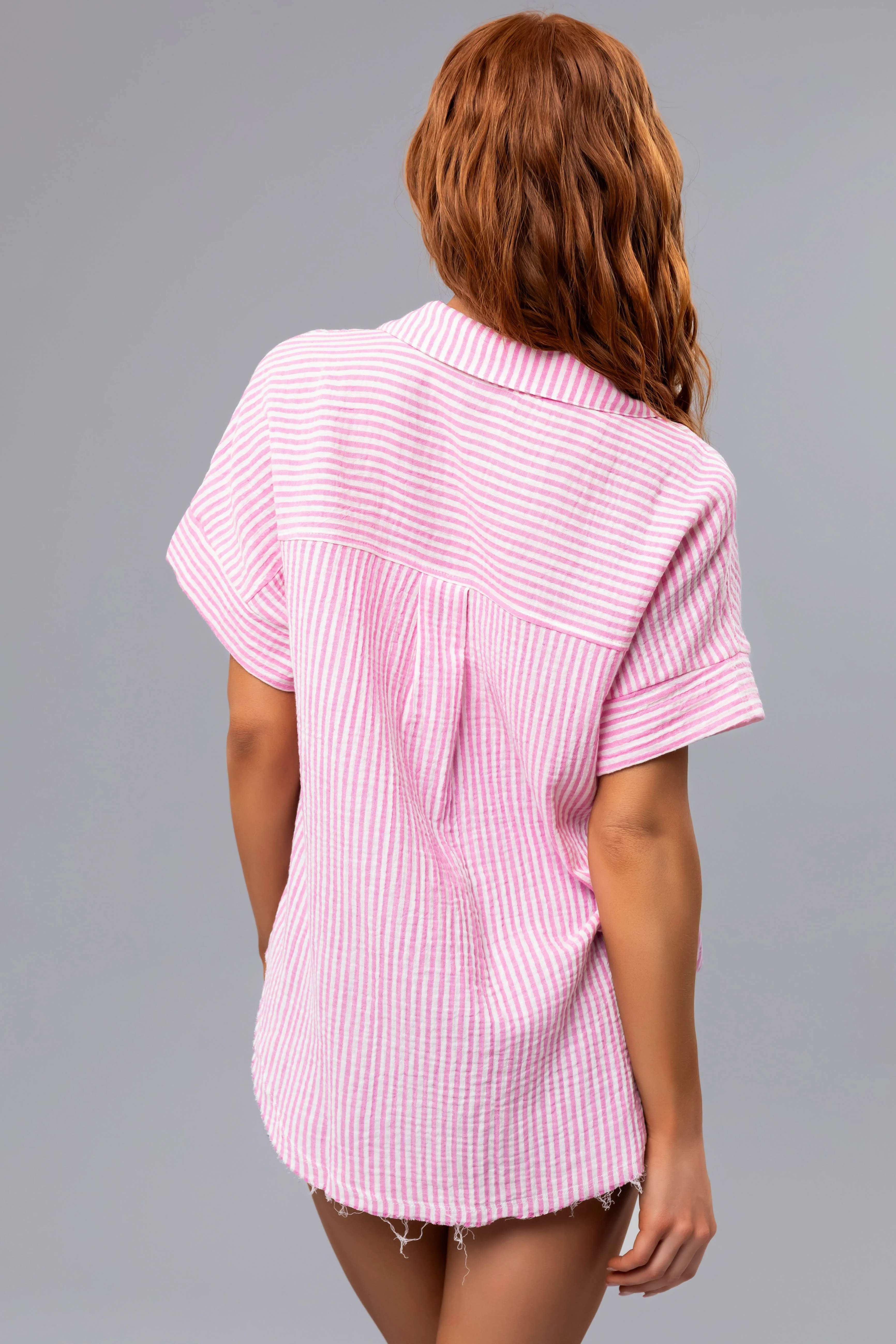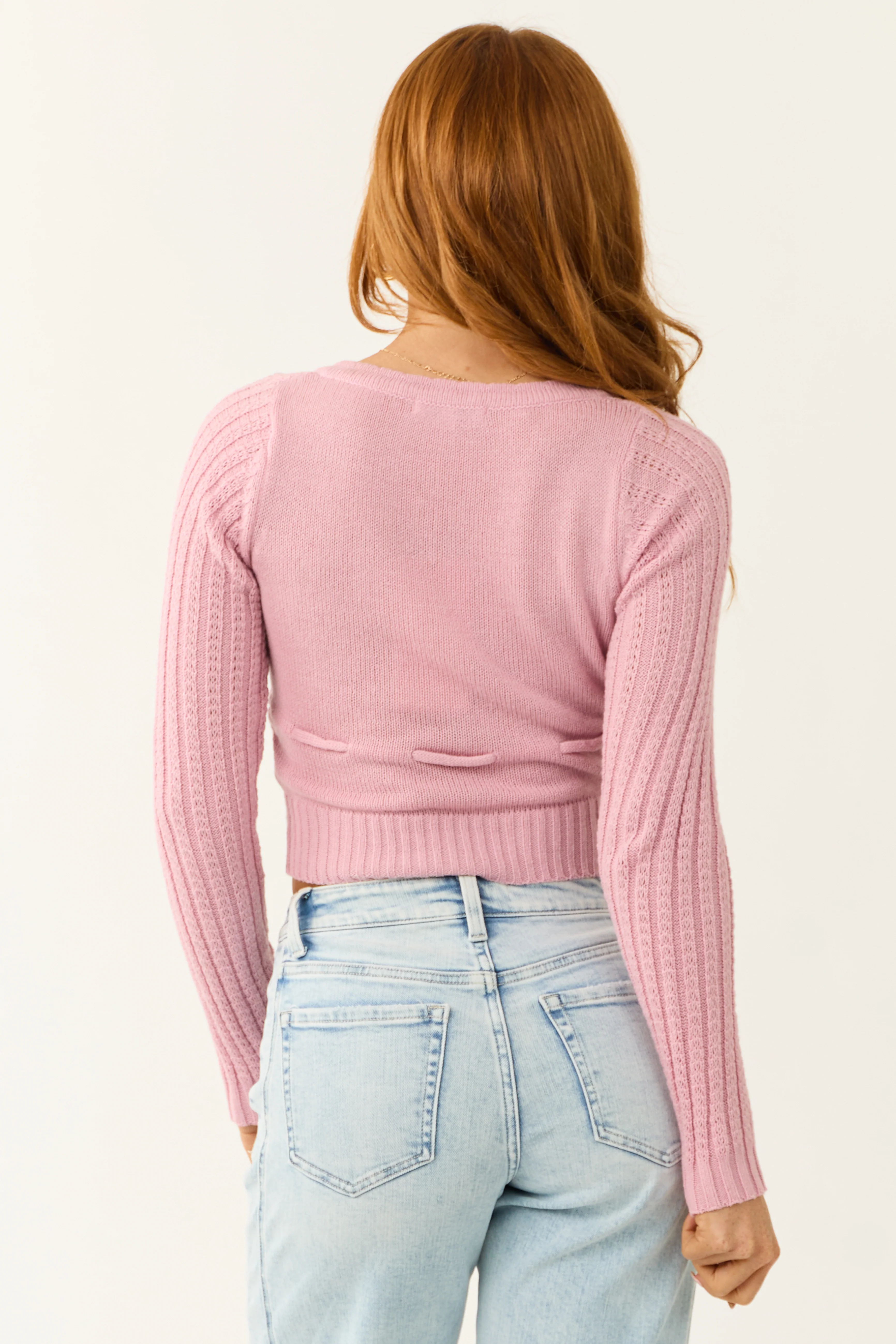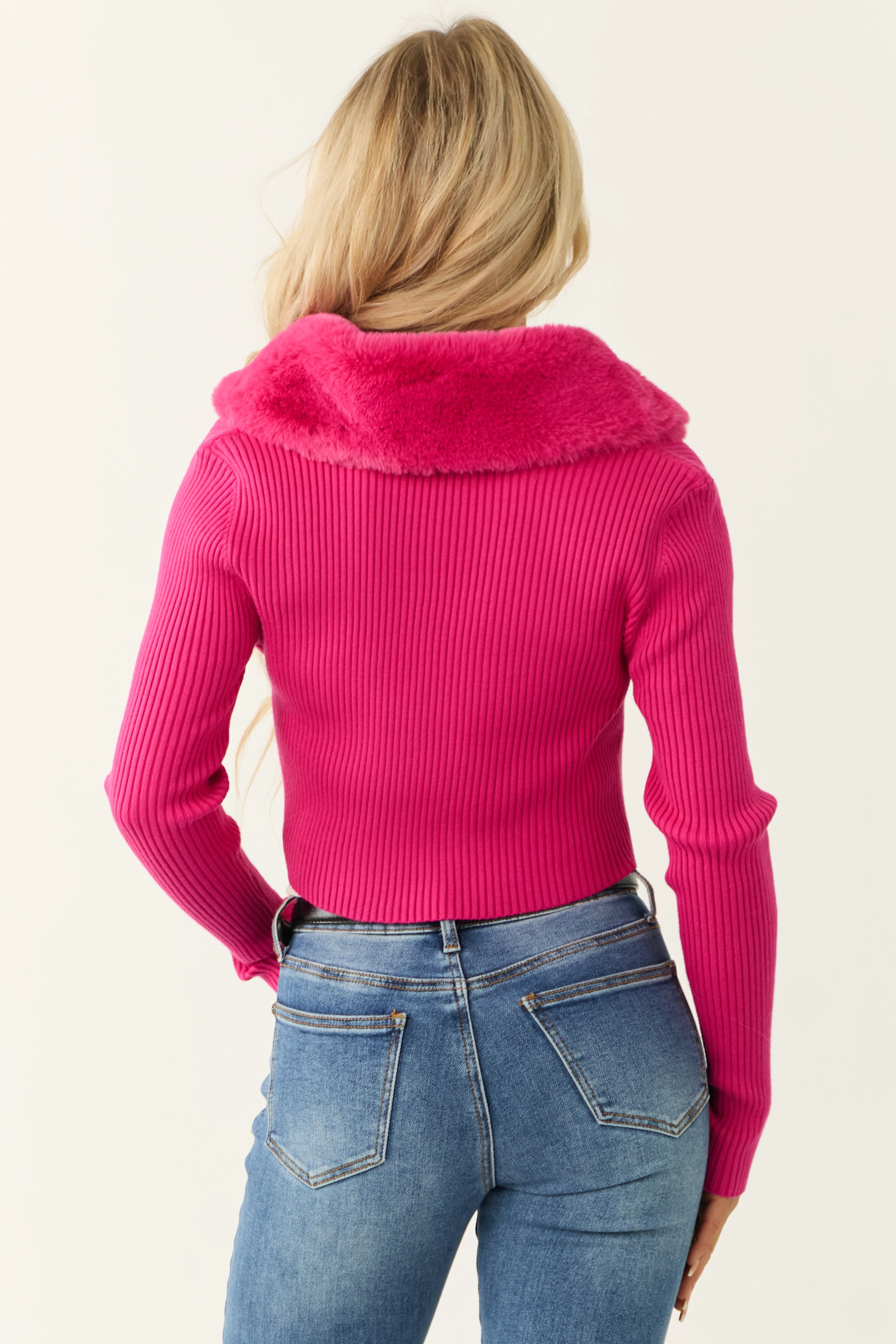 Hot Pink Faux Fur Collar Knit Sweater Cardigan