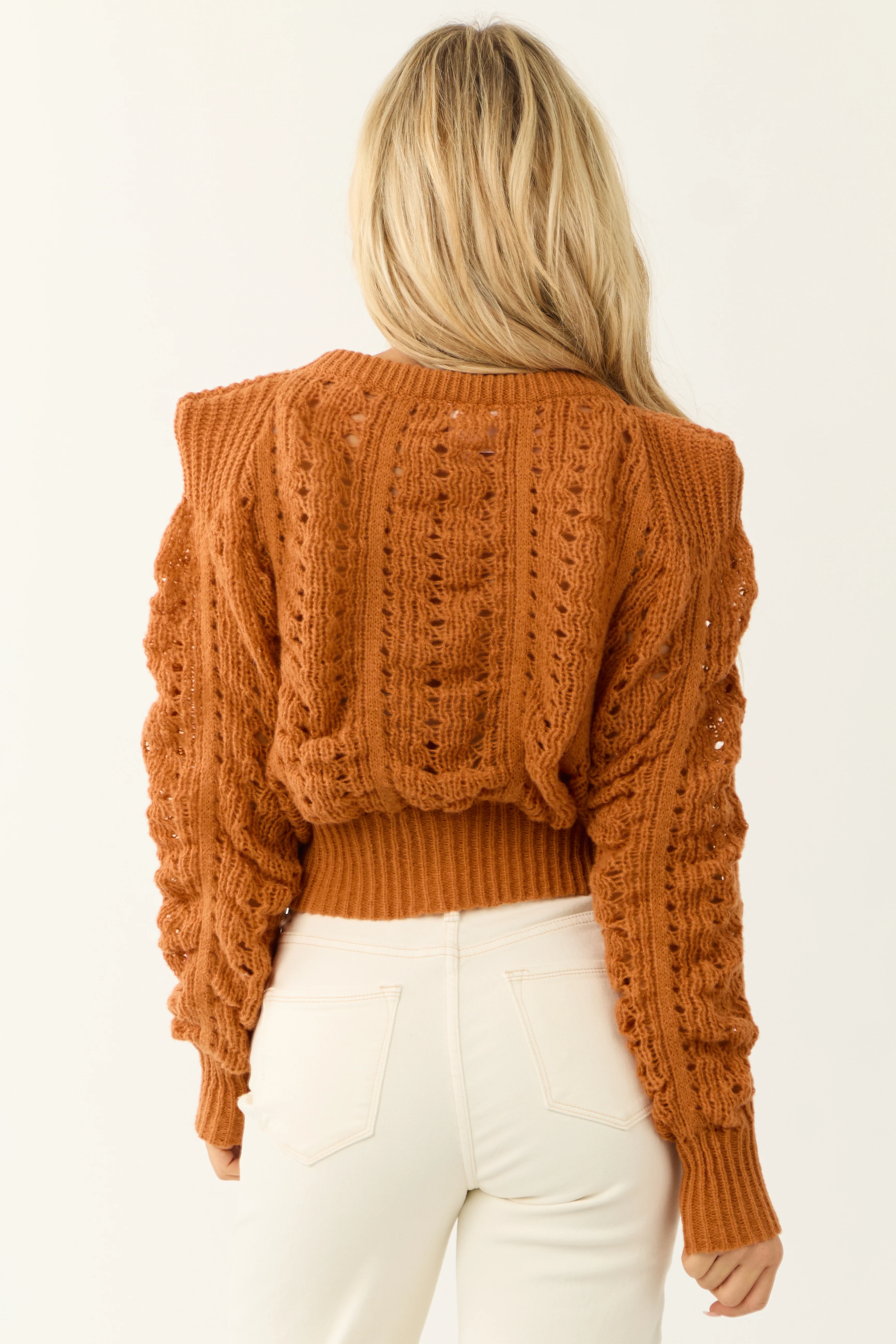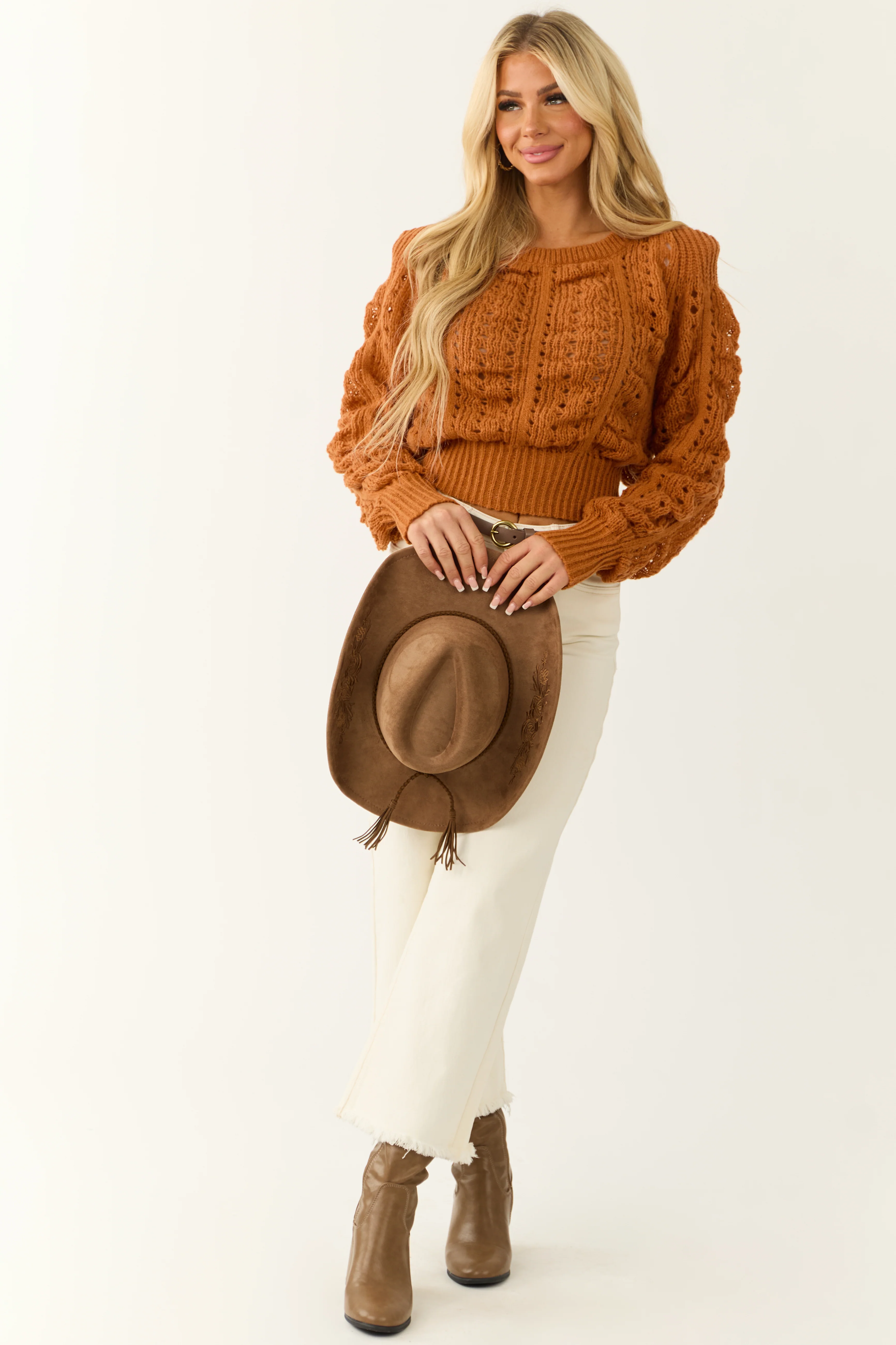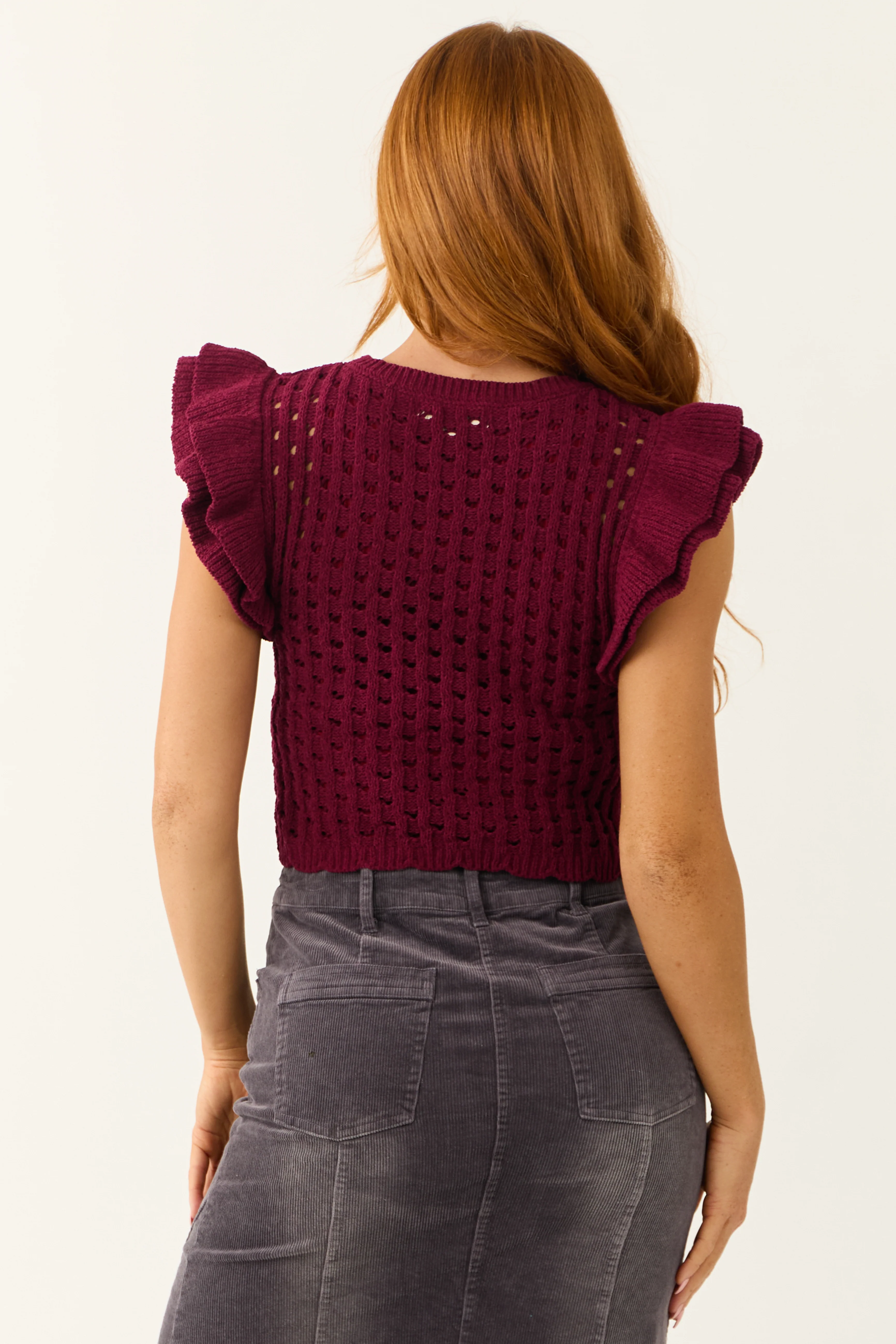 Wine Open Sweater Knit Ruffle Sleeve Top