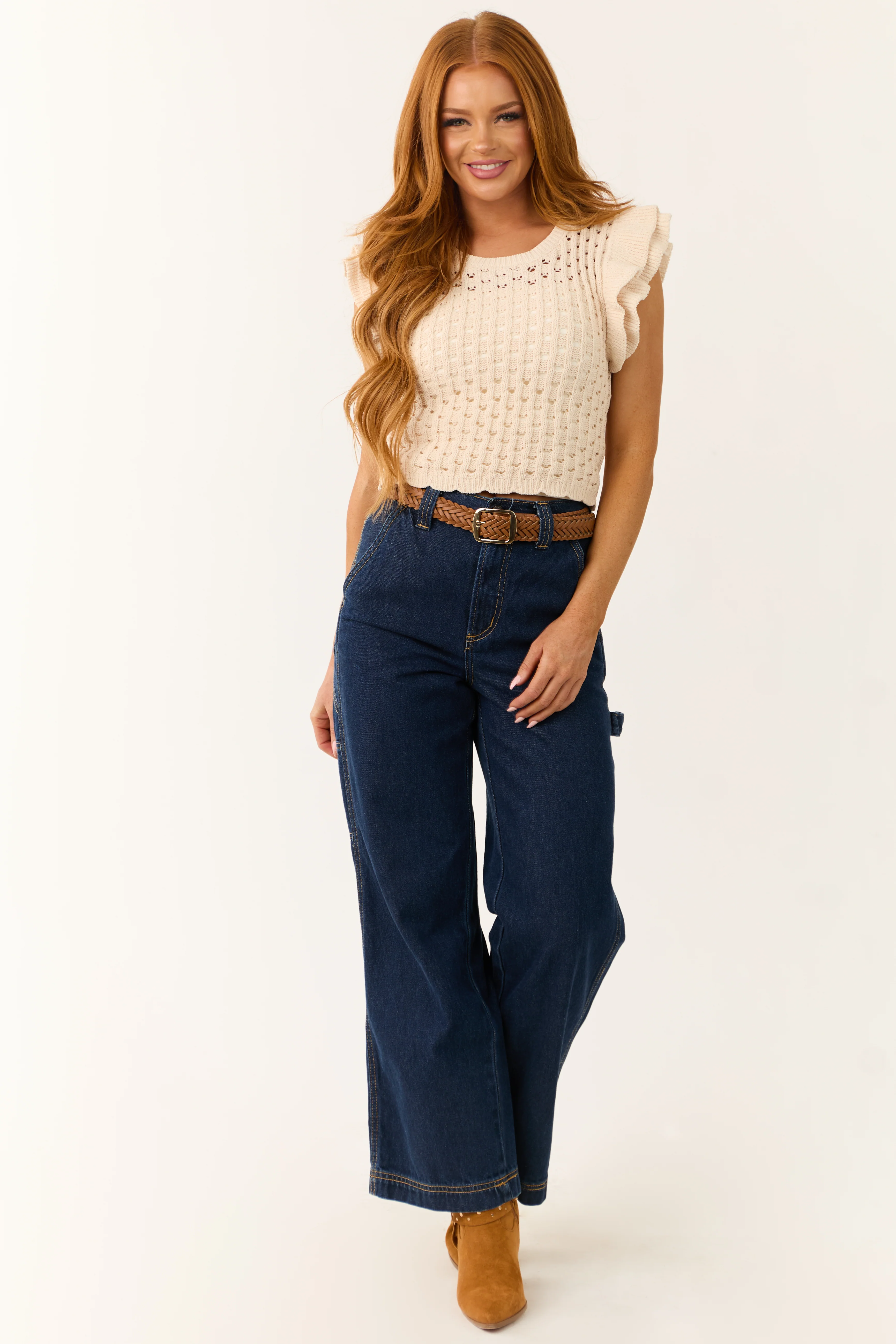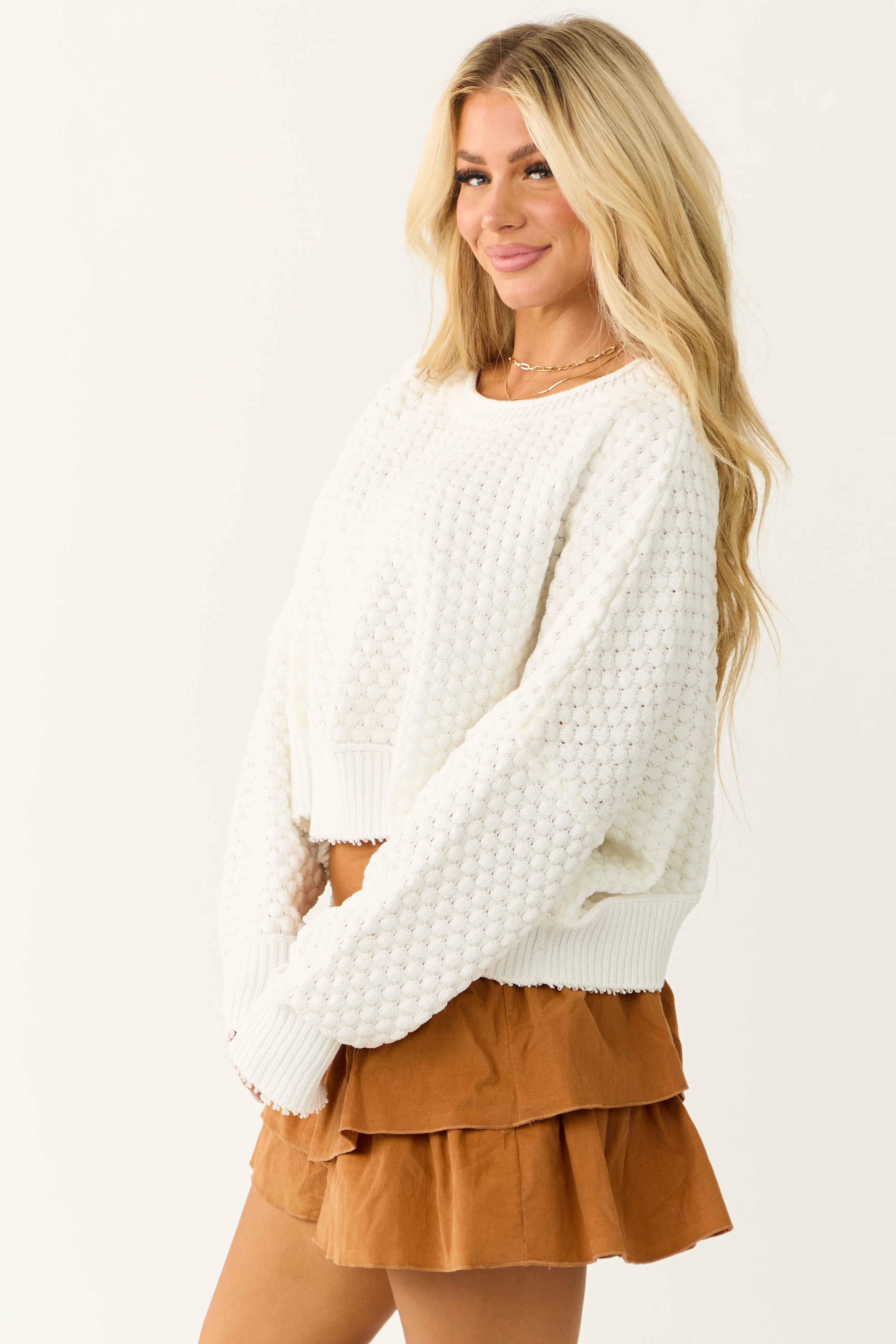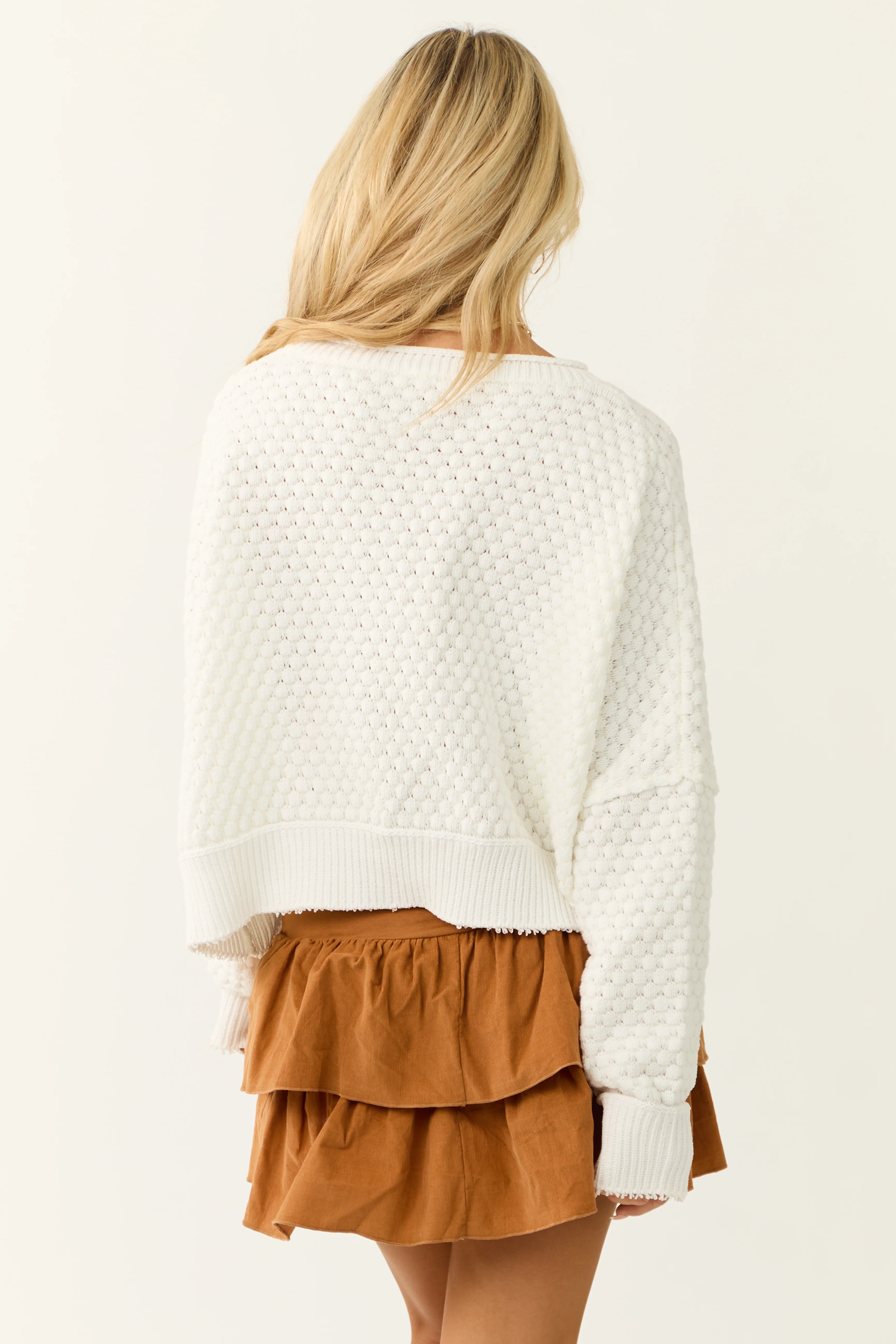 Cream Open Sweater Knit Ruffle Sleeve Top
