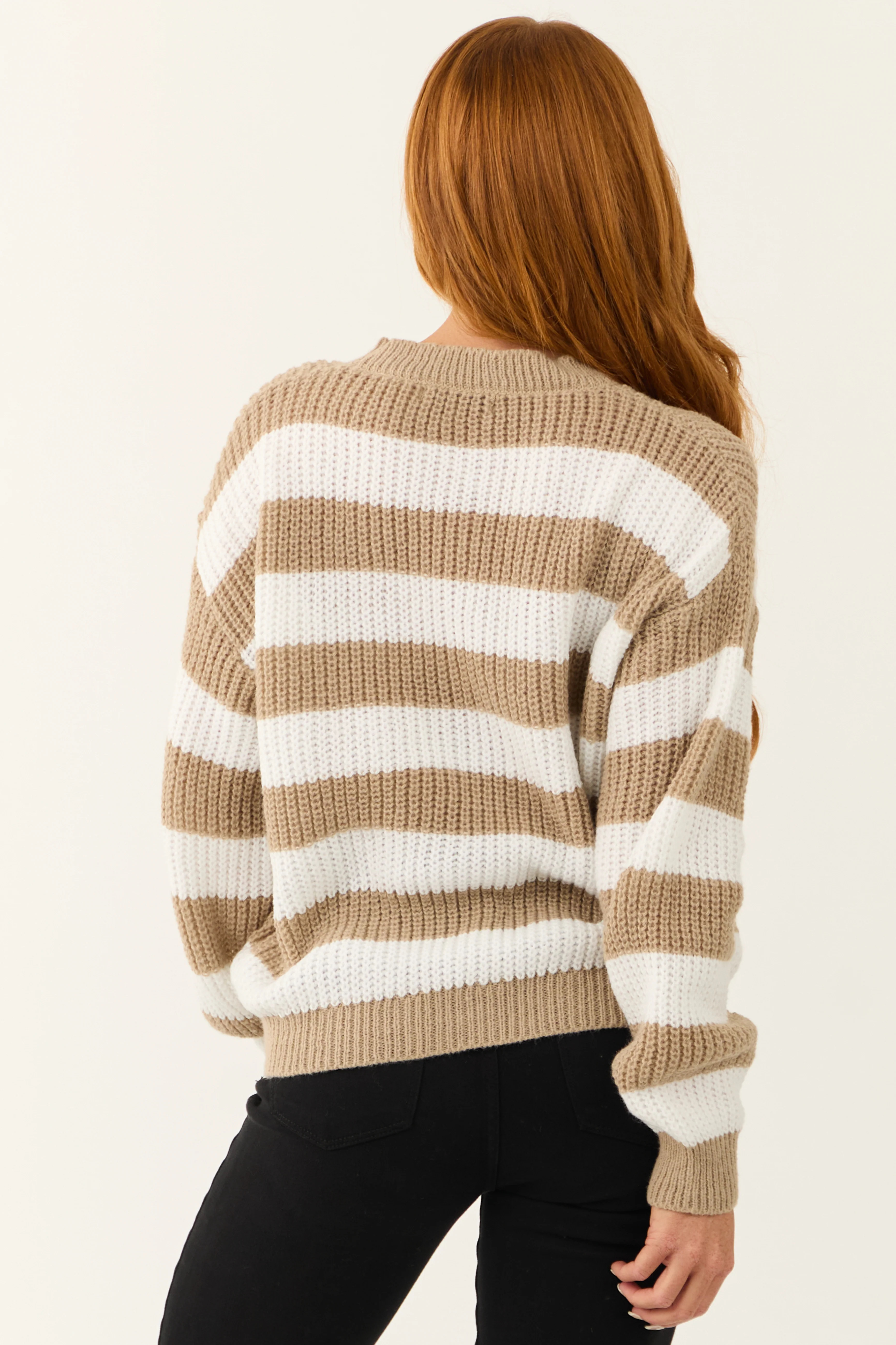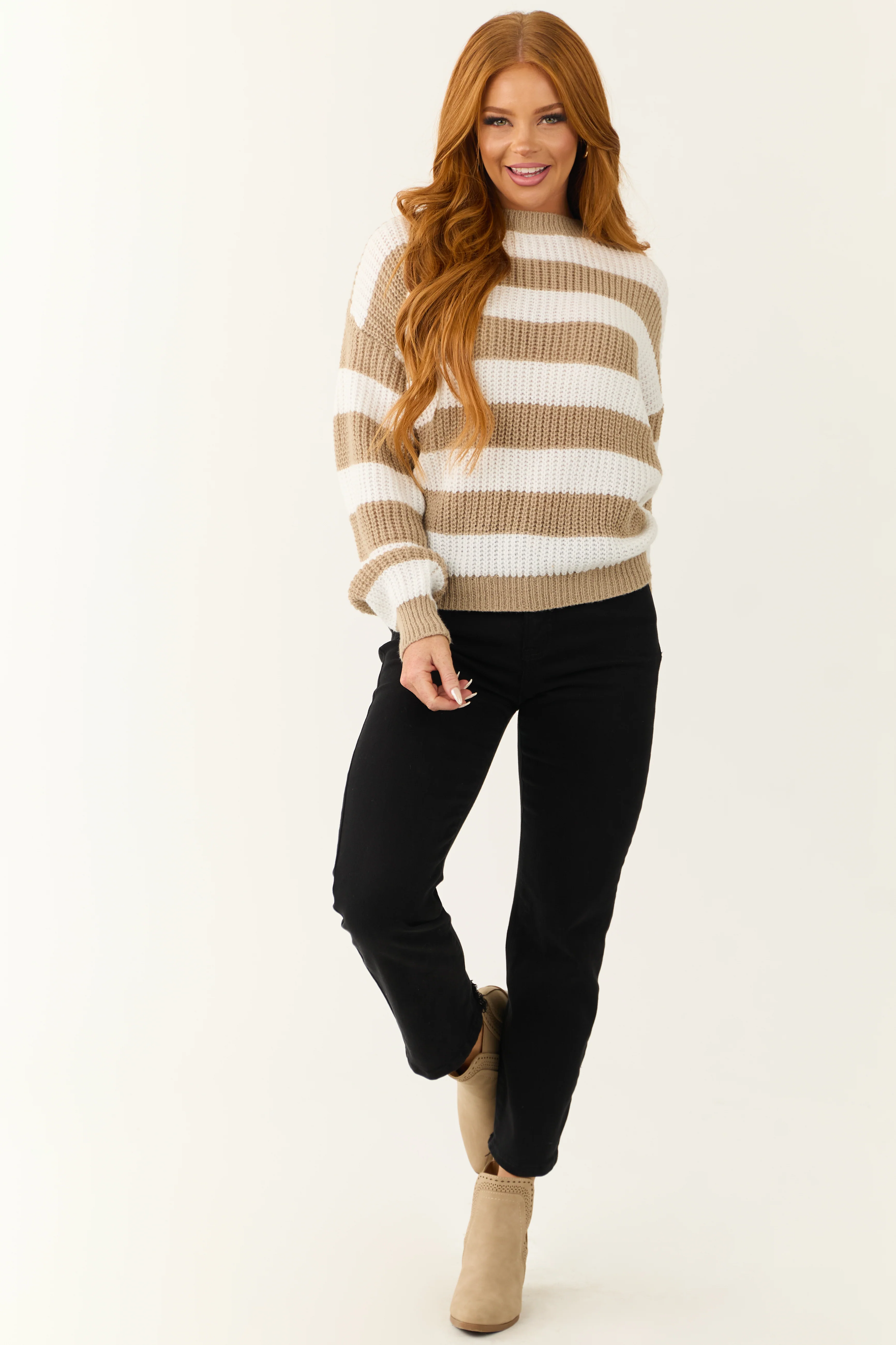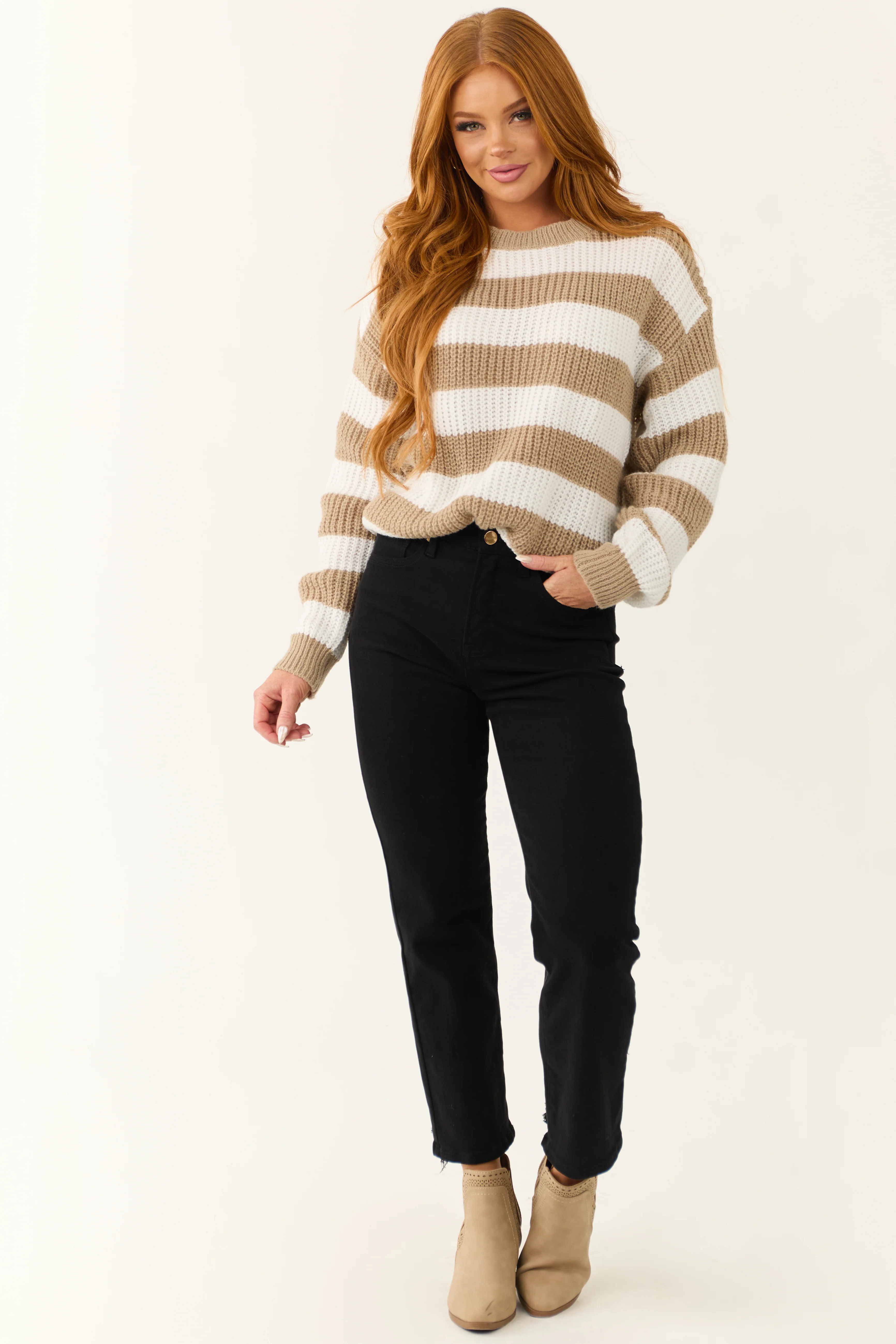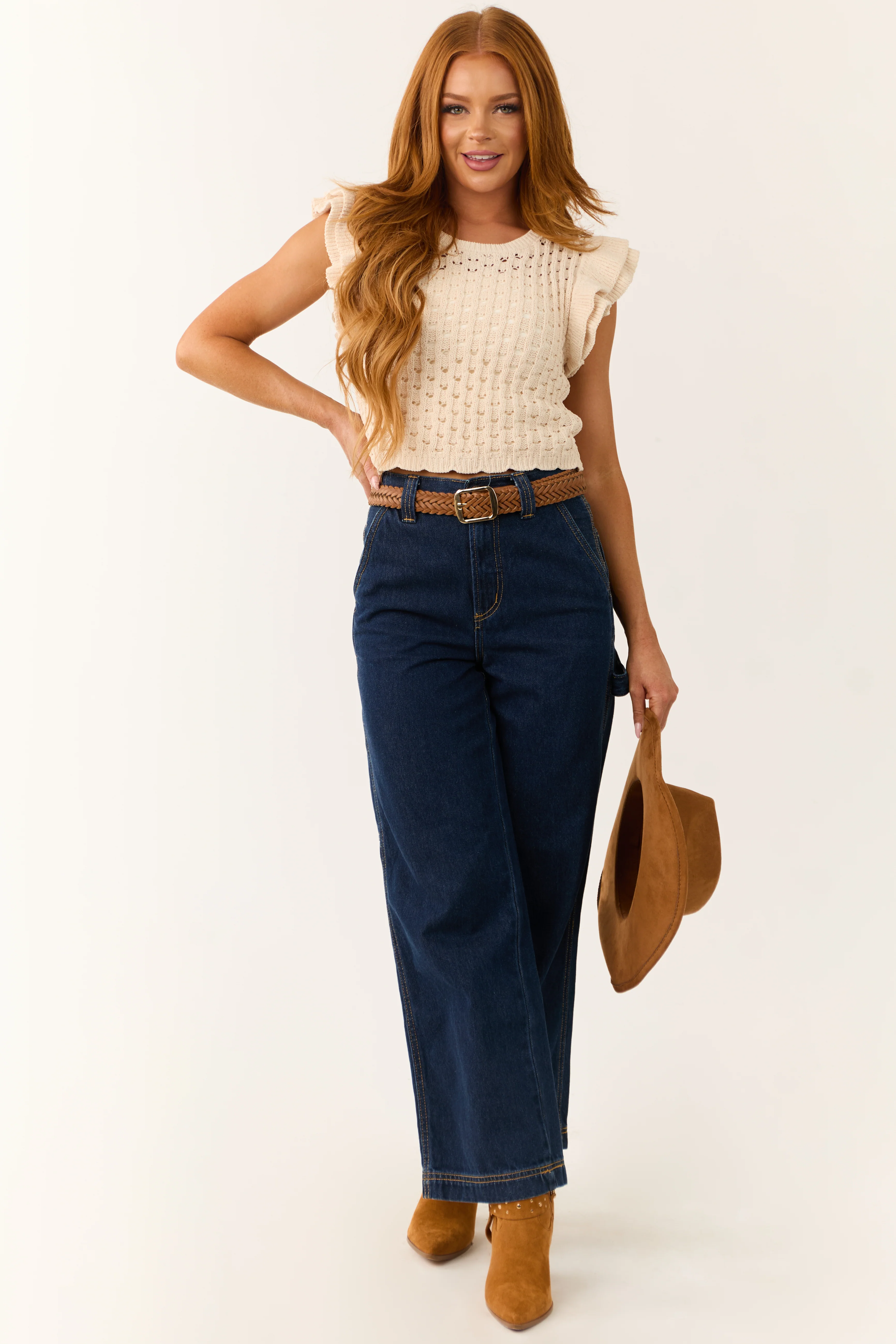 Cream Open Sweater Knit Ruffle Sleeve Top