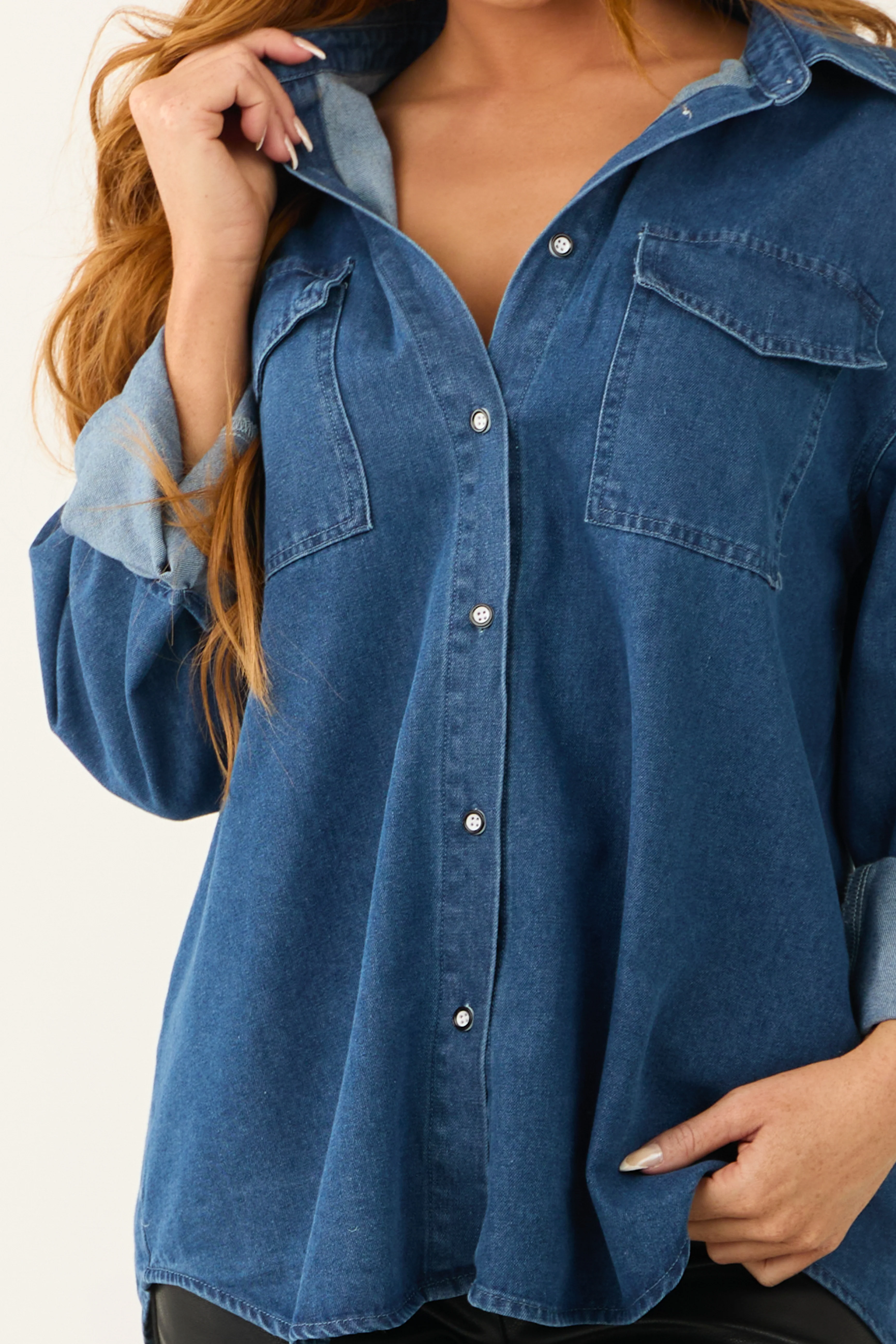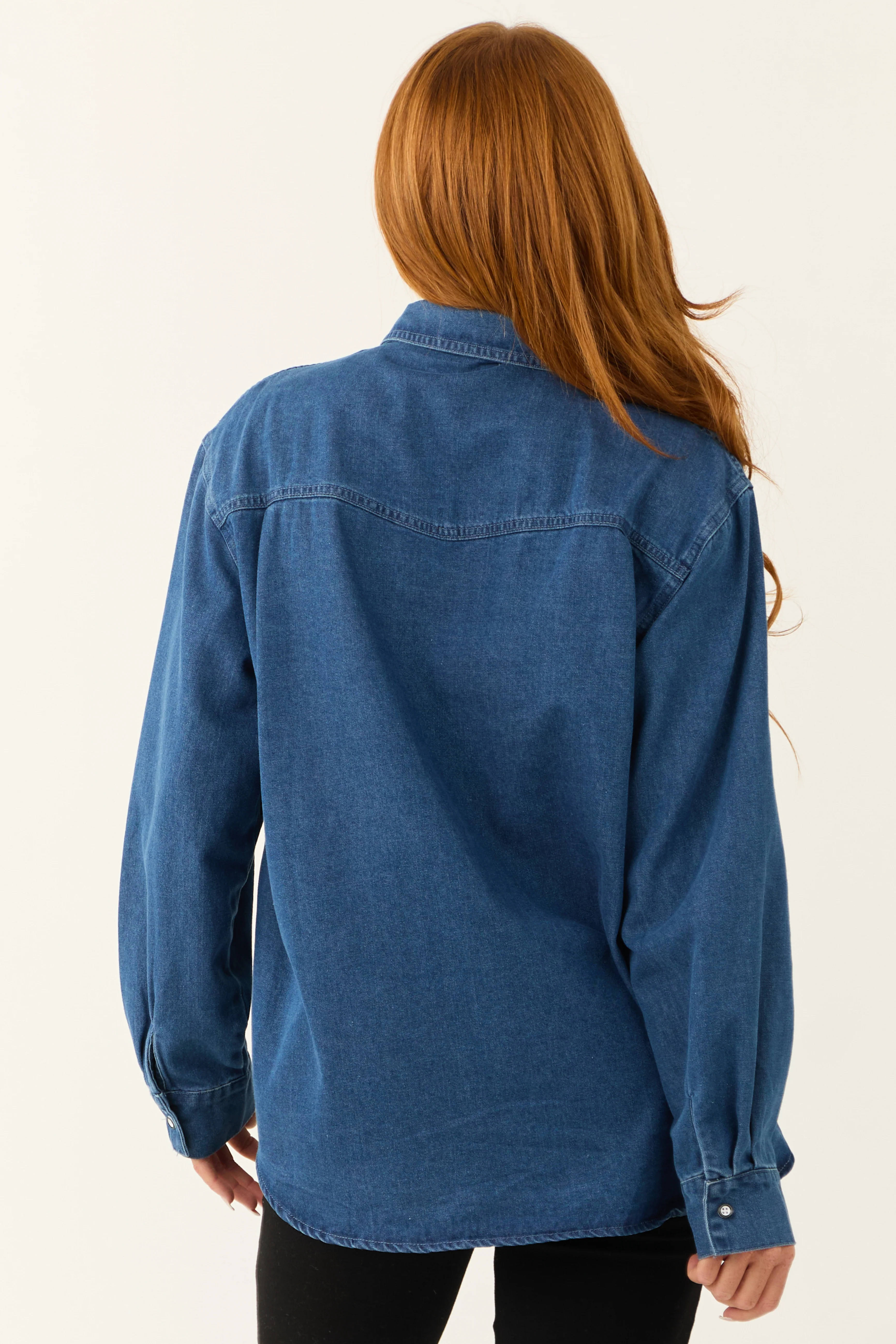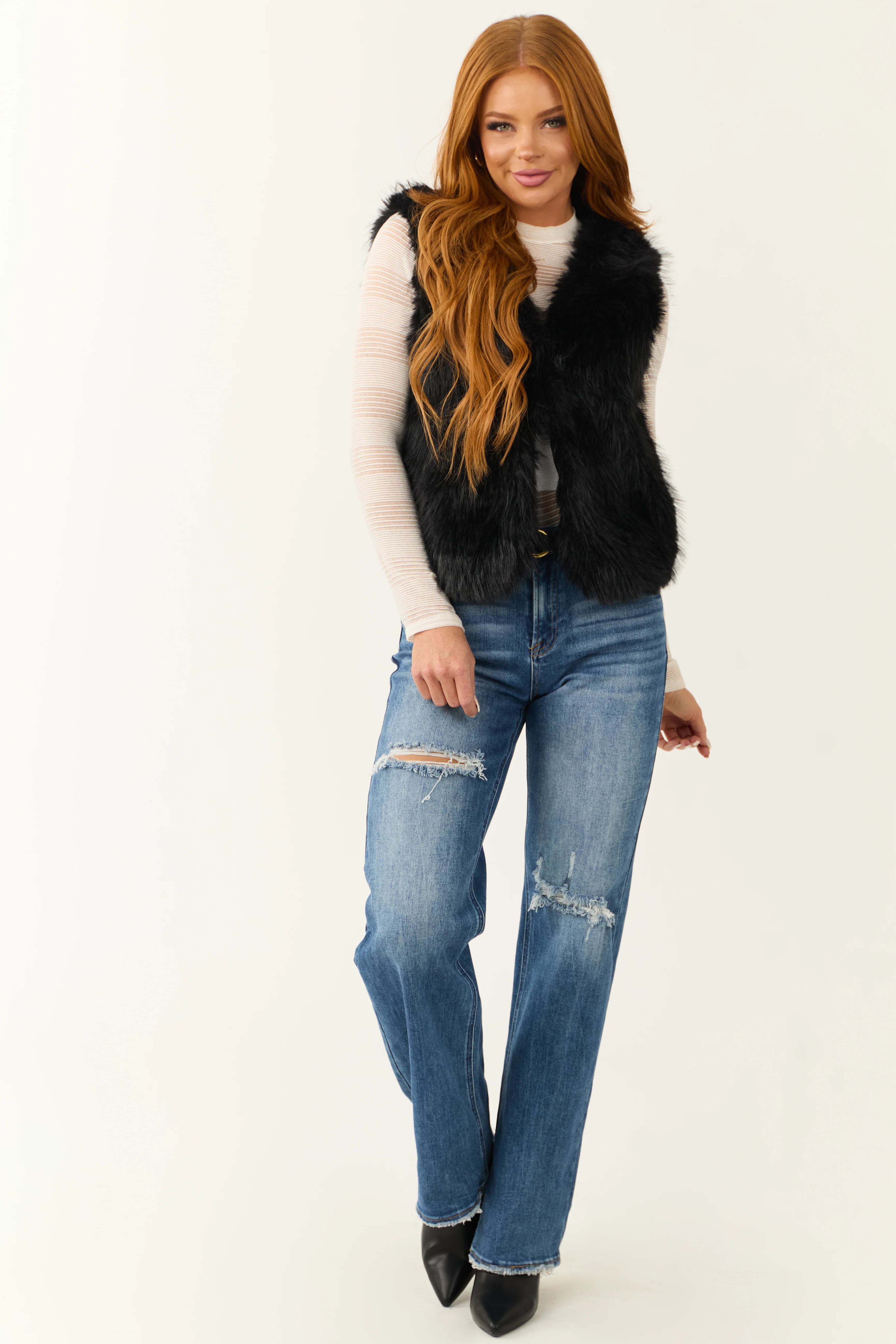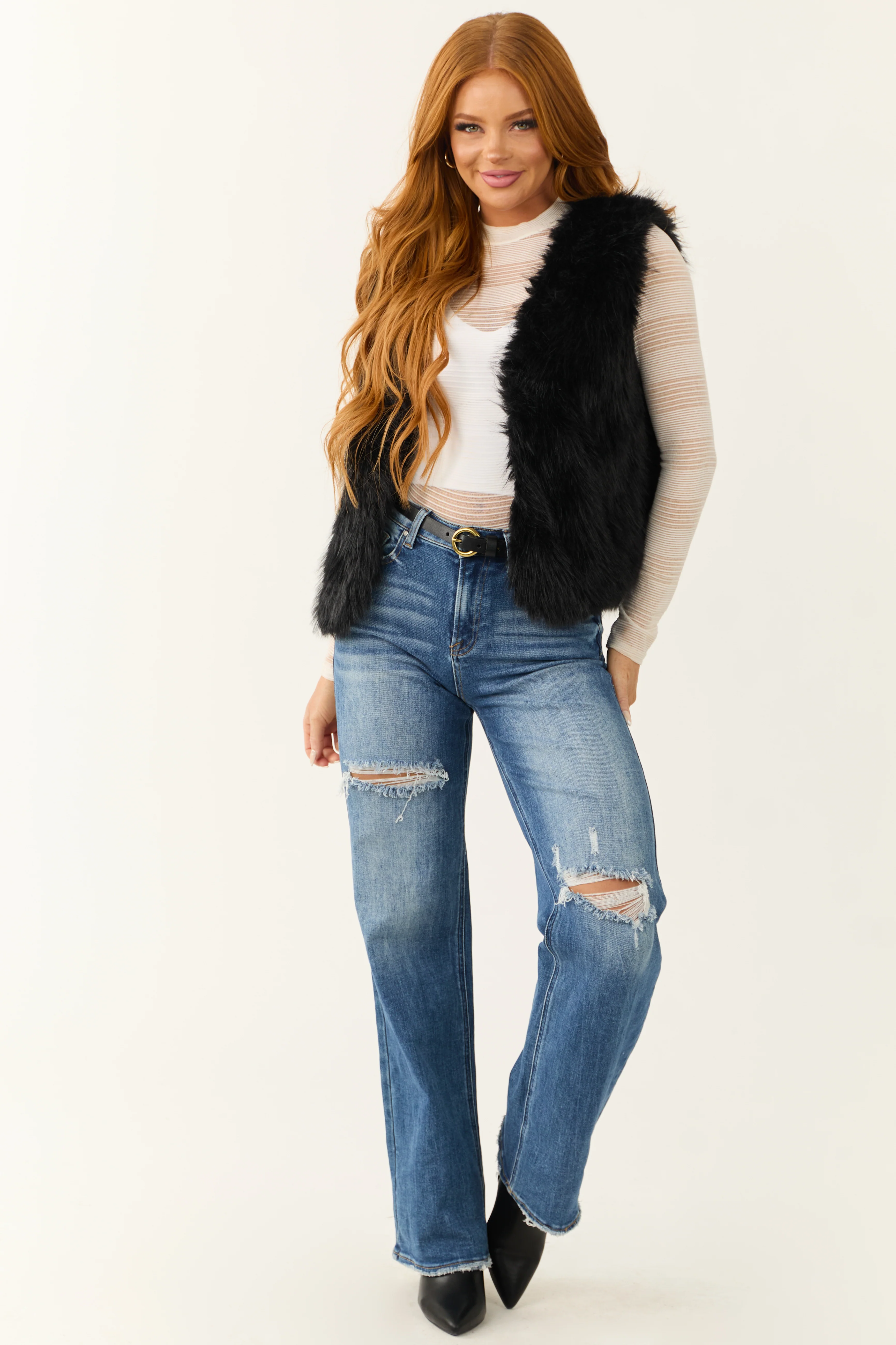 Light Wash Denim Ruffle Sleeve Rhinestone Vest