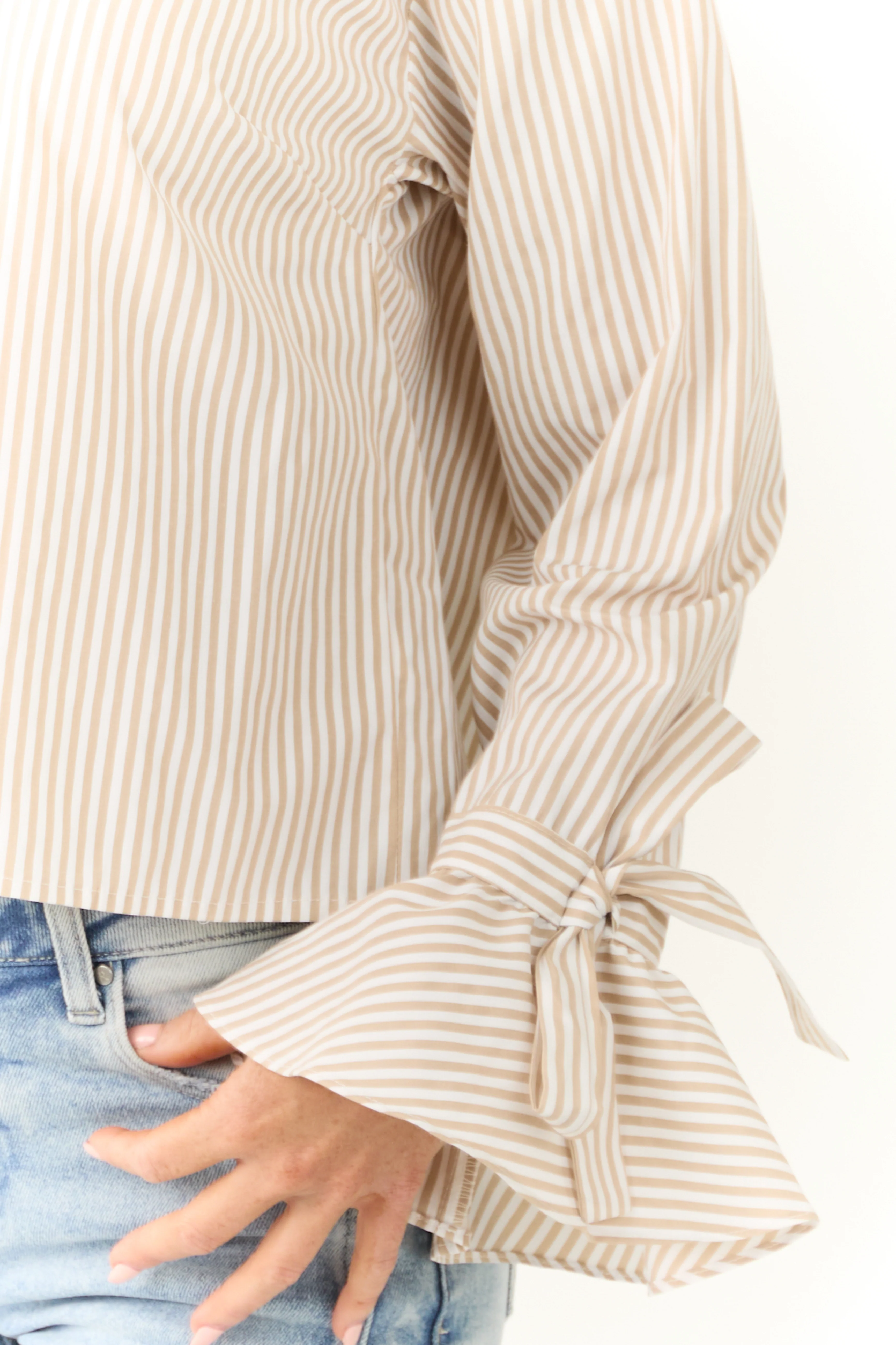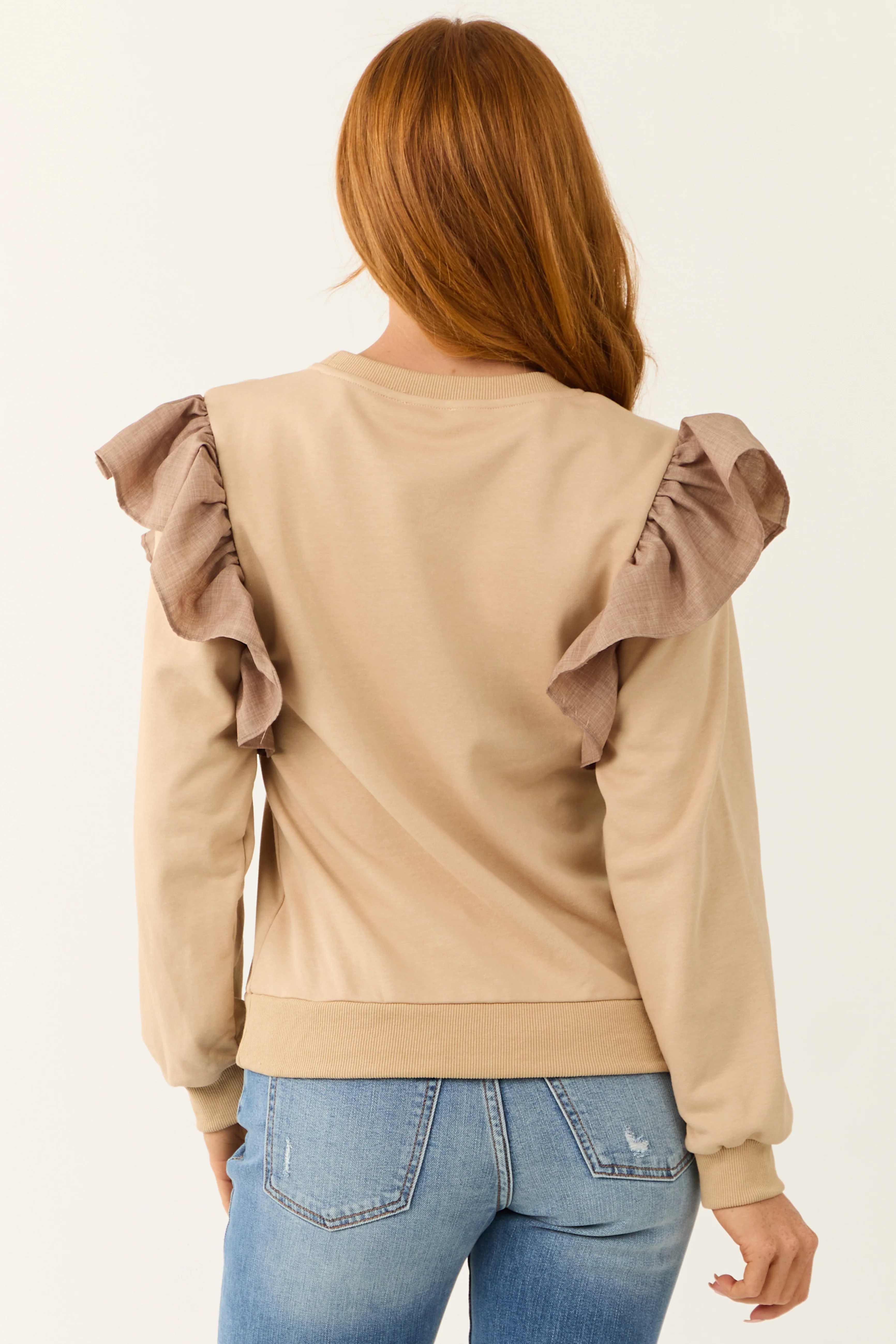 Oatmeal Ruffle Shoulder Detail Long Sleeve Top