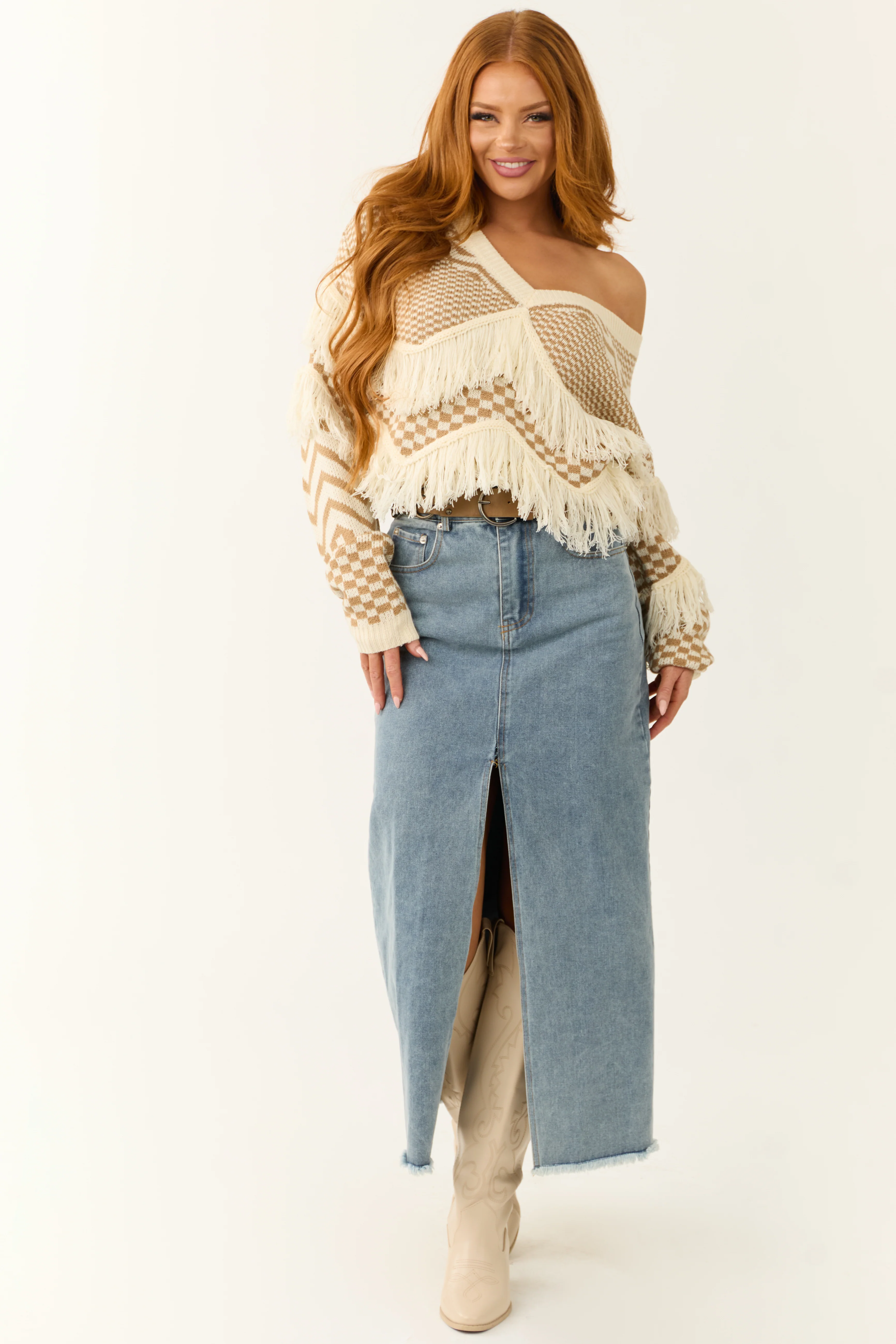 Off White Semi Cropped Long Sleeve Oversized Sweater