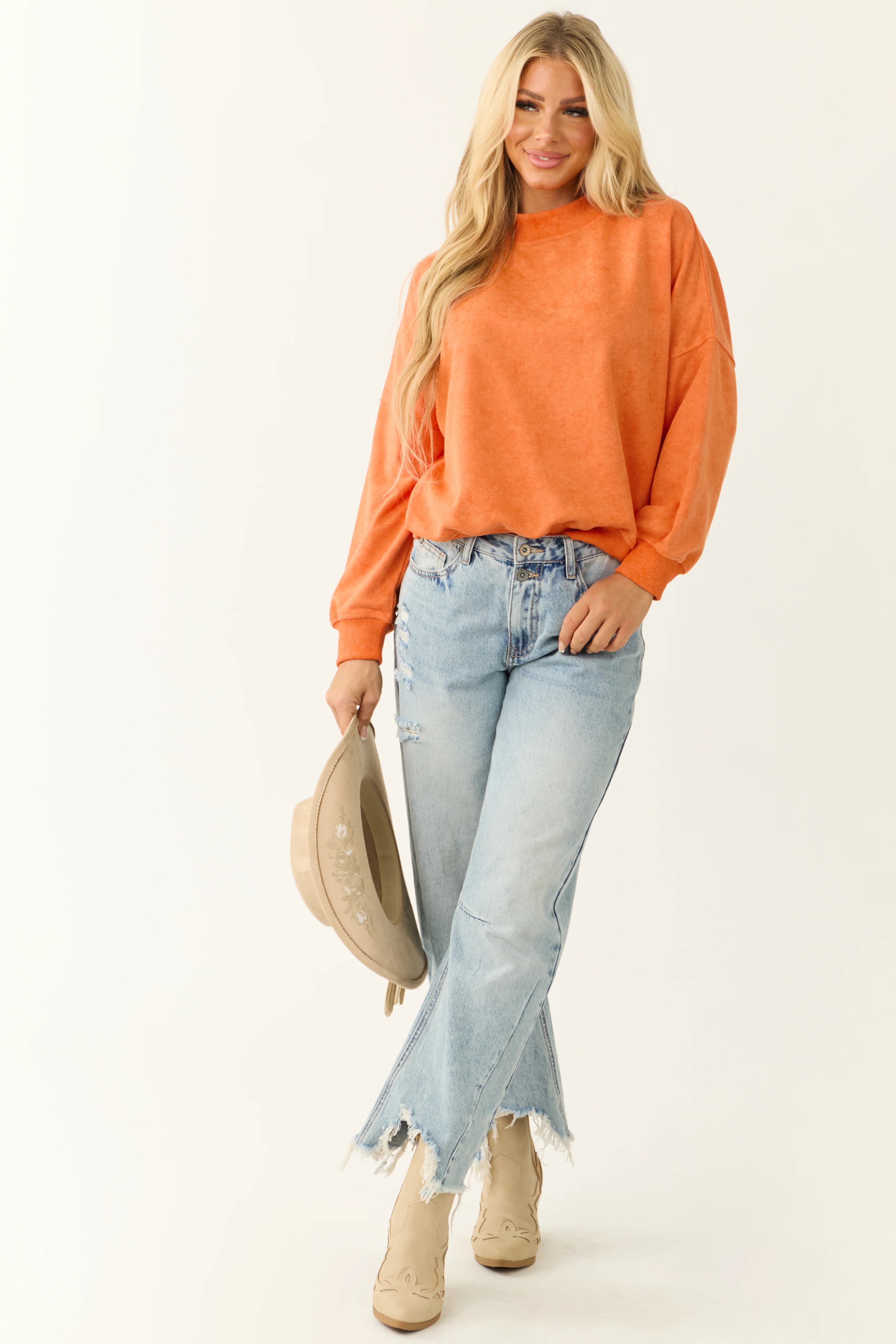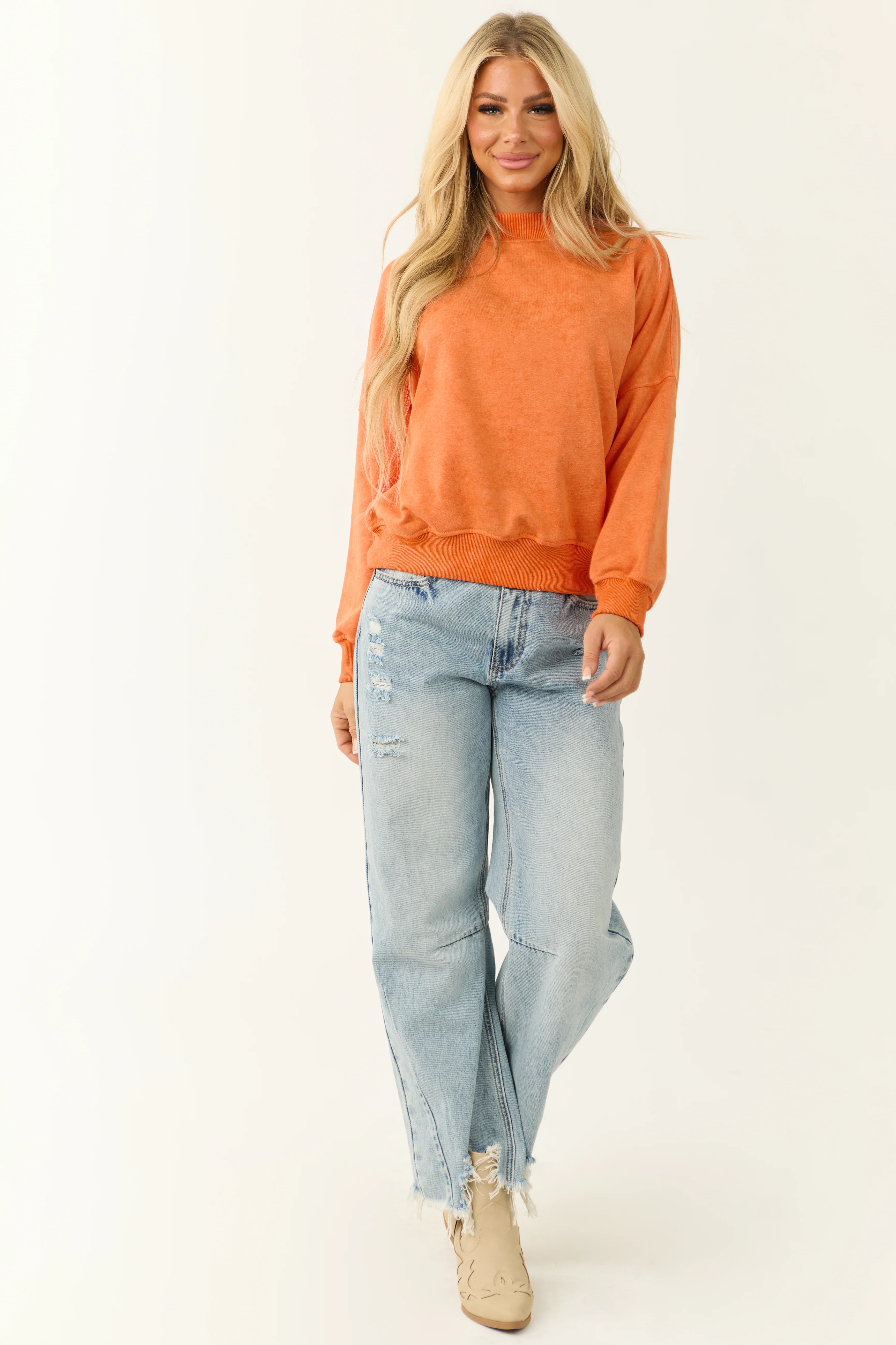 Pumpkin Washed Drop Shoulder Crew Neck Sweatshirt