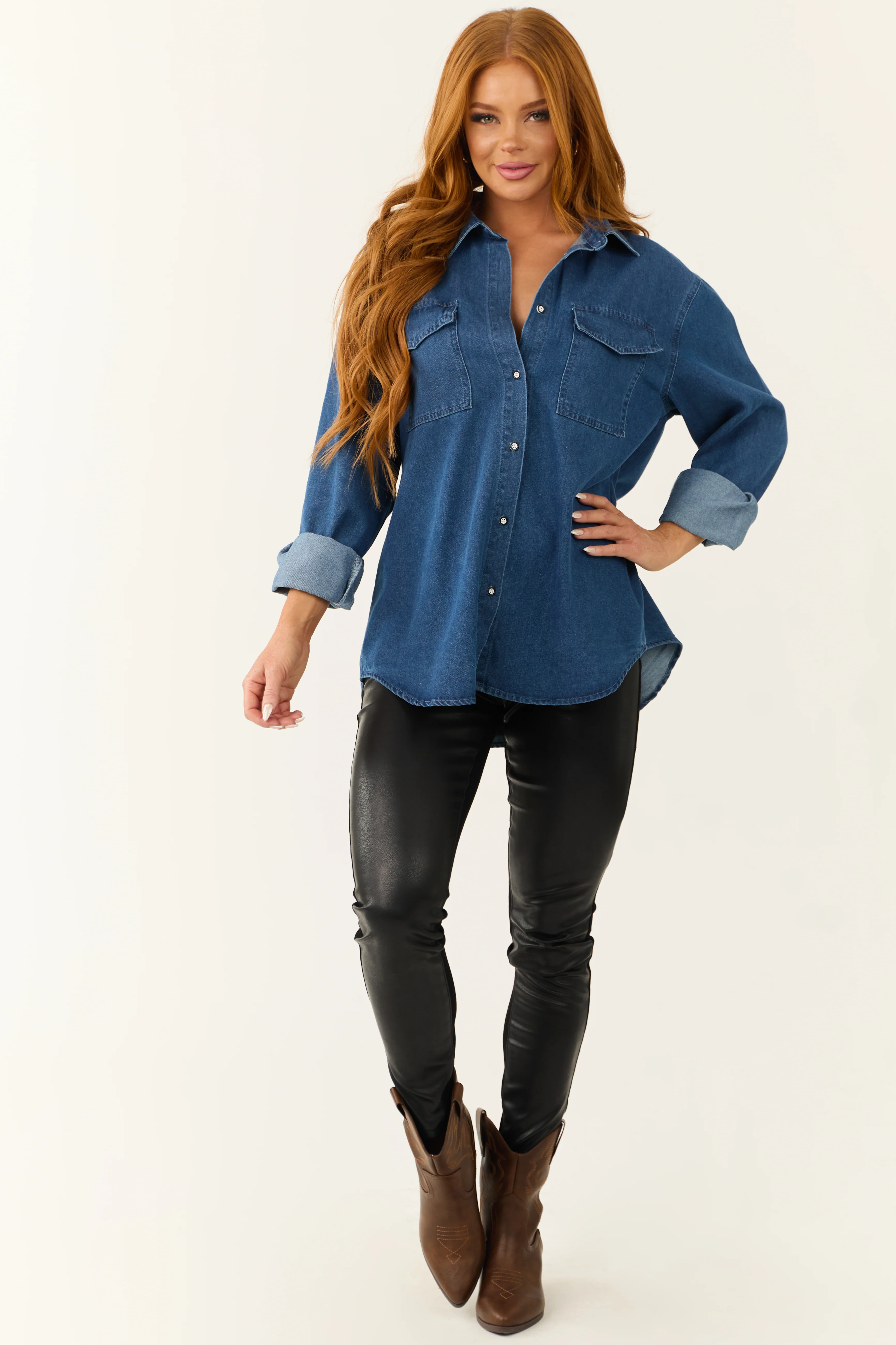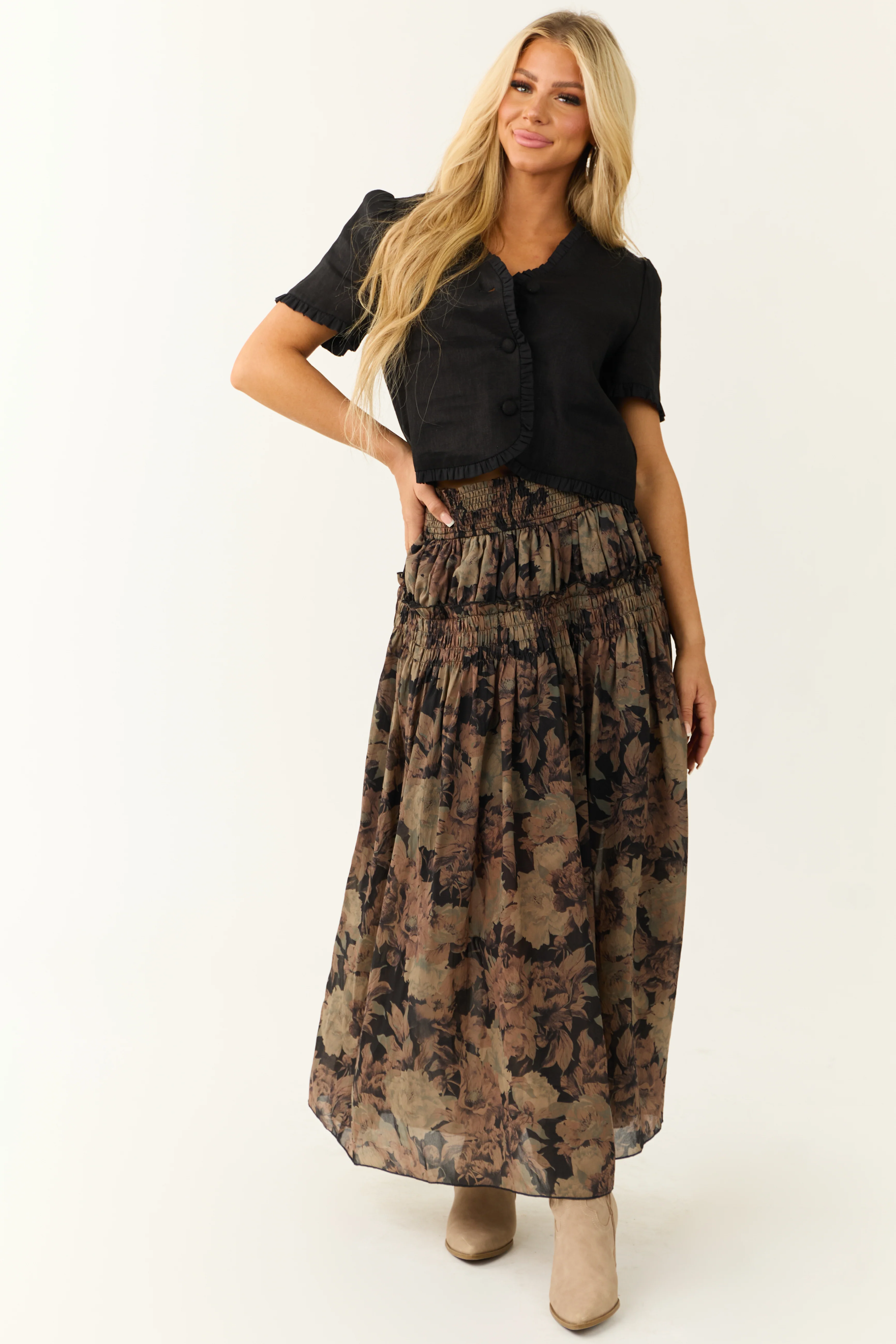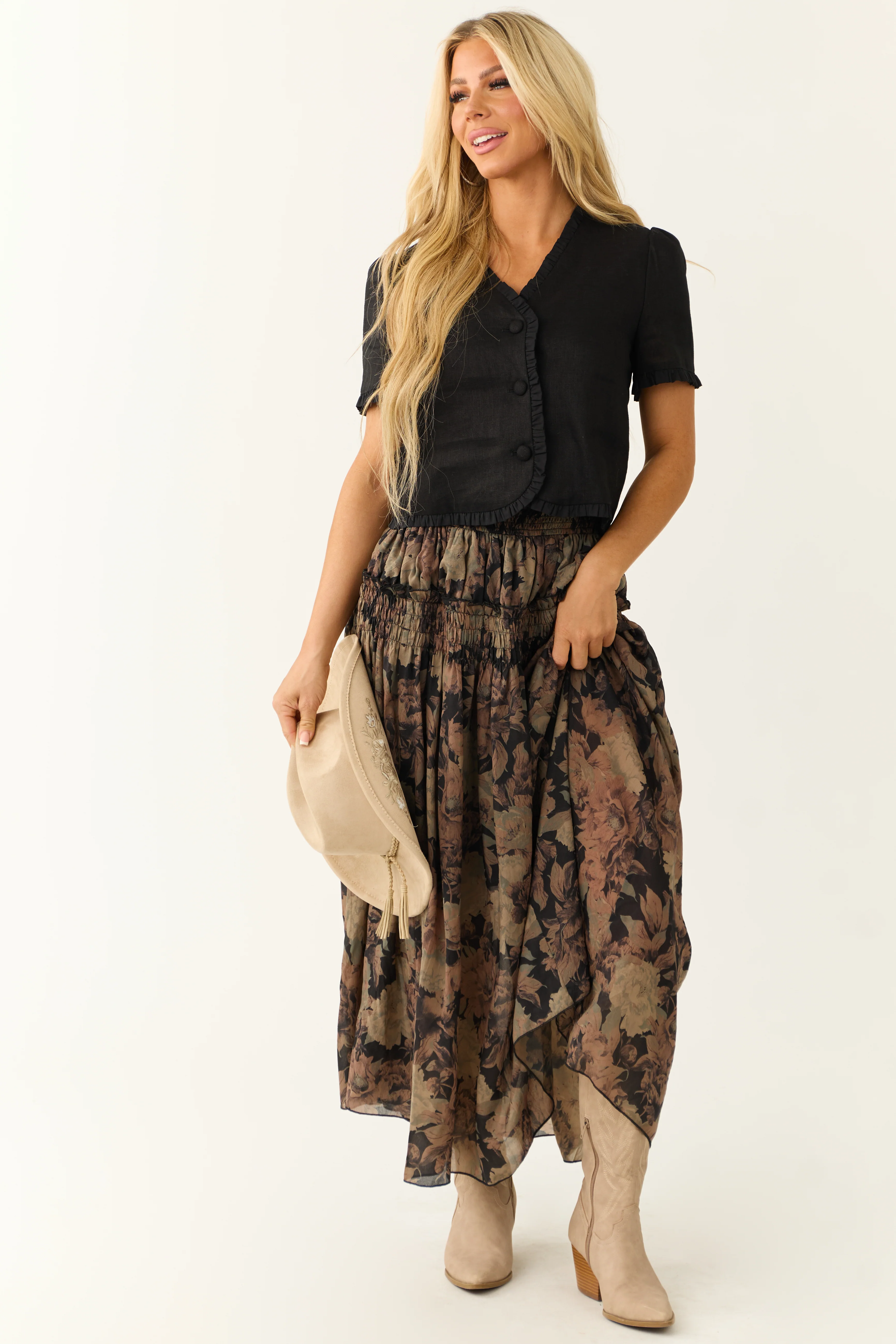 Navy Button Down Ruffle Hem Long Sleeve Cardigan