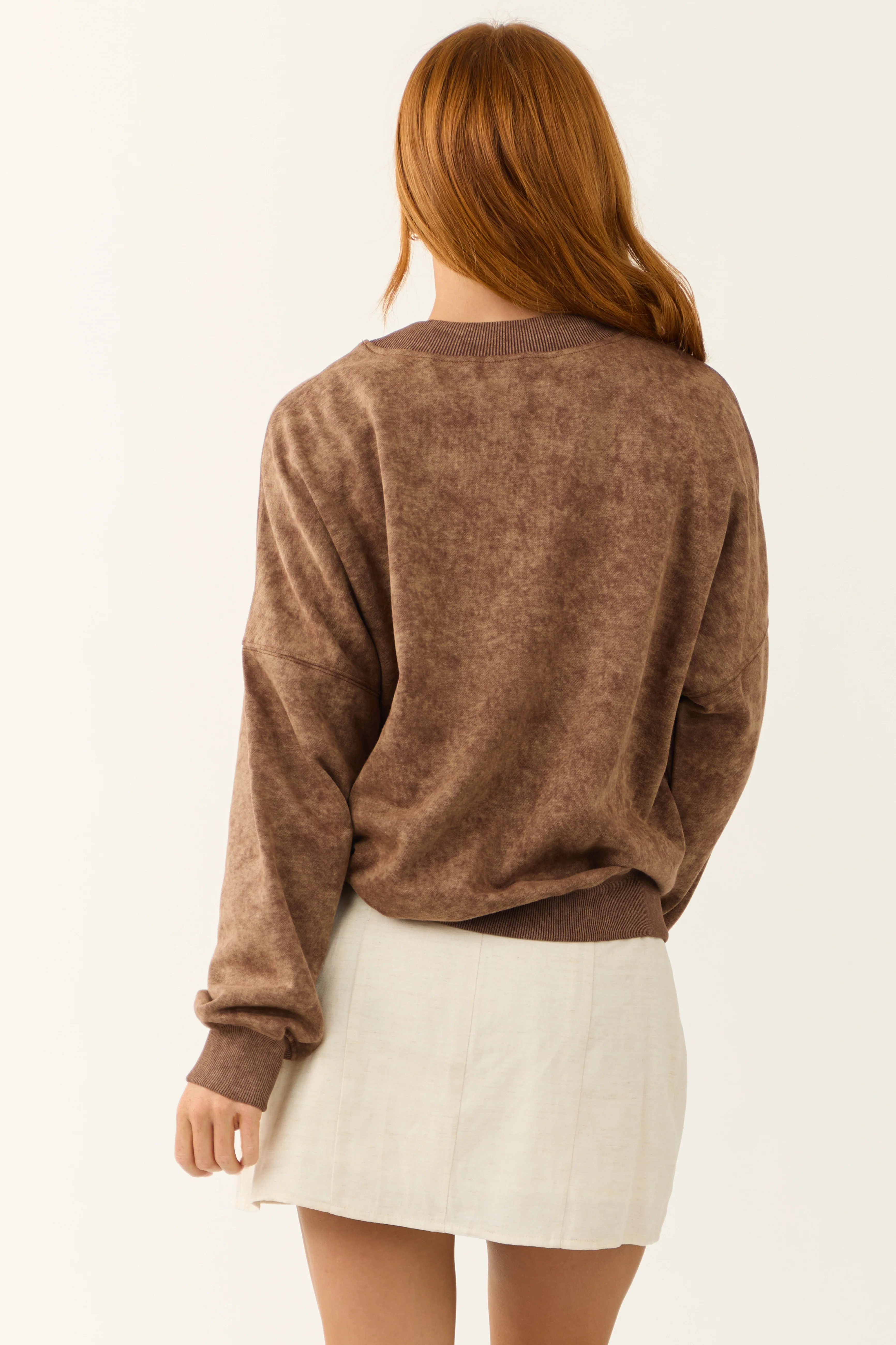 Walnut Washed Drop Shoulder Crew Neck Sweatshirt
