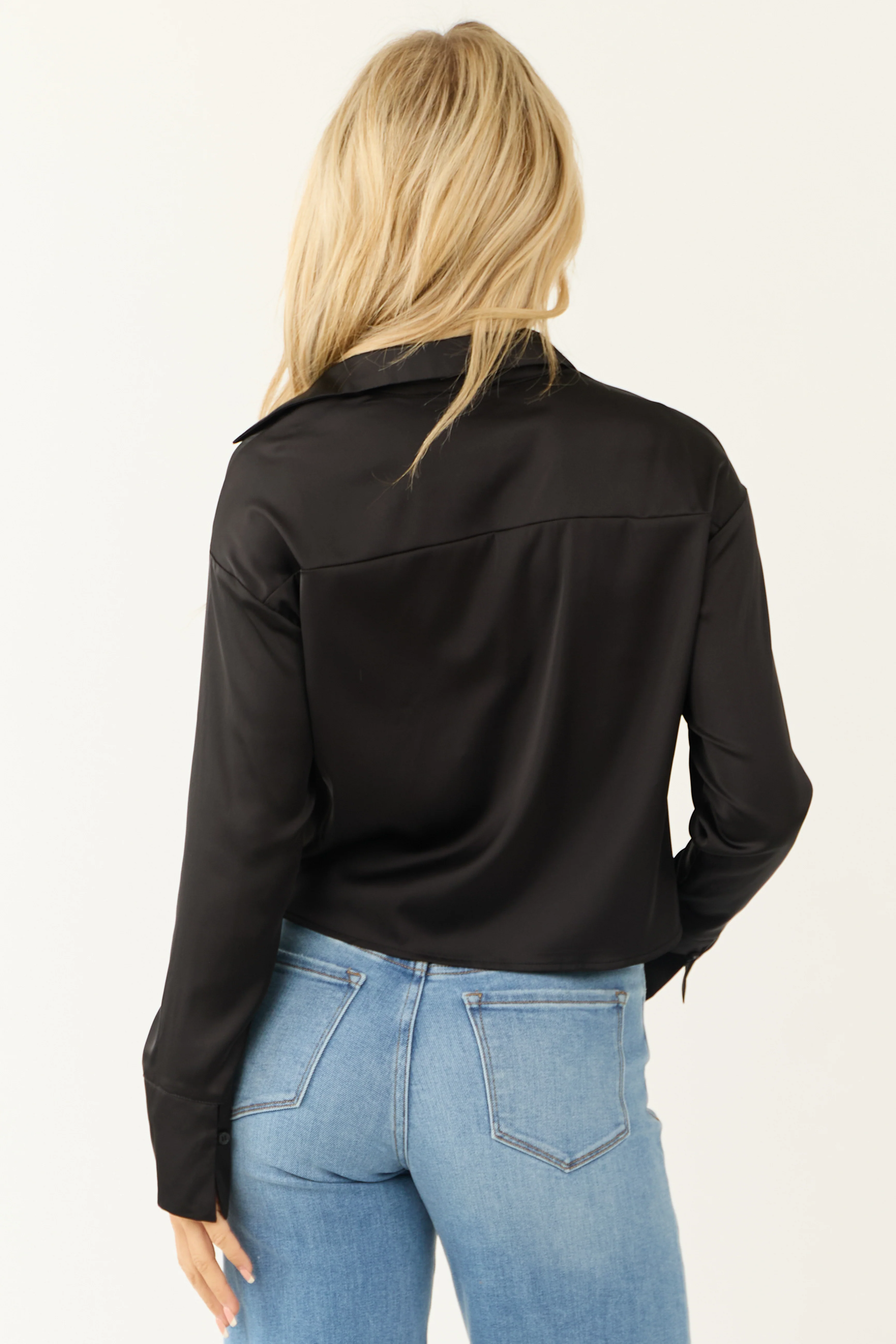 Black Rhinestone Accent Mesh Long Sleeve Top