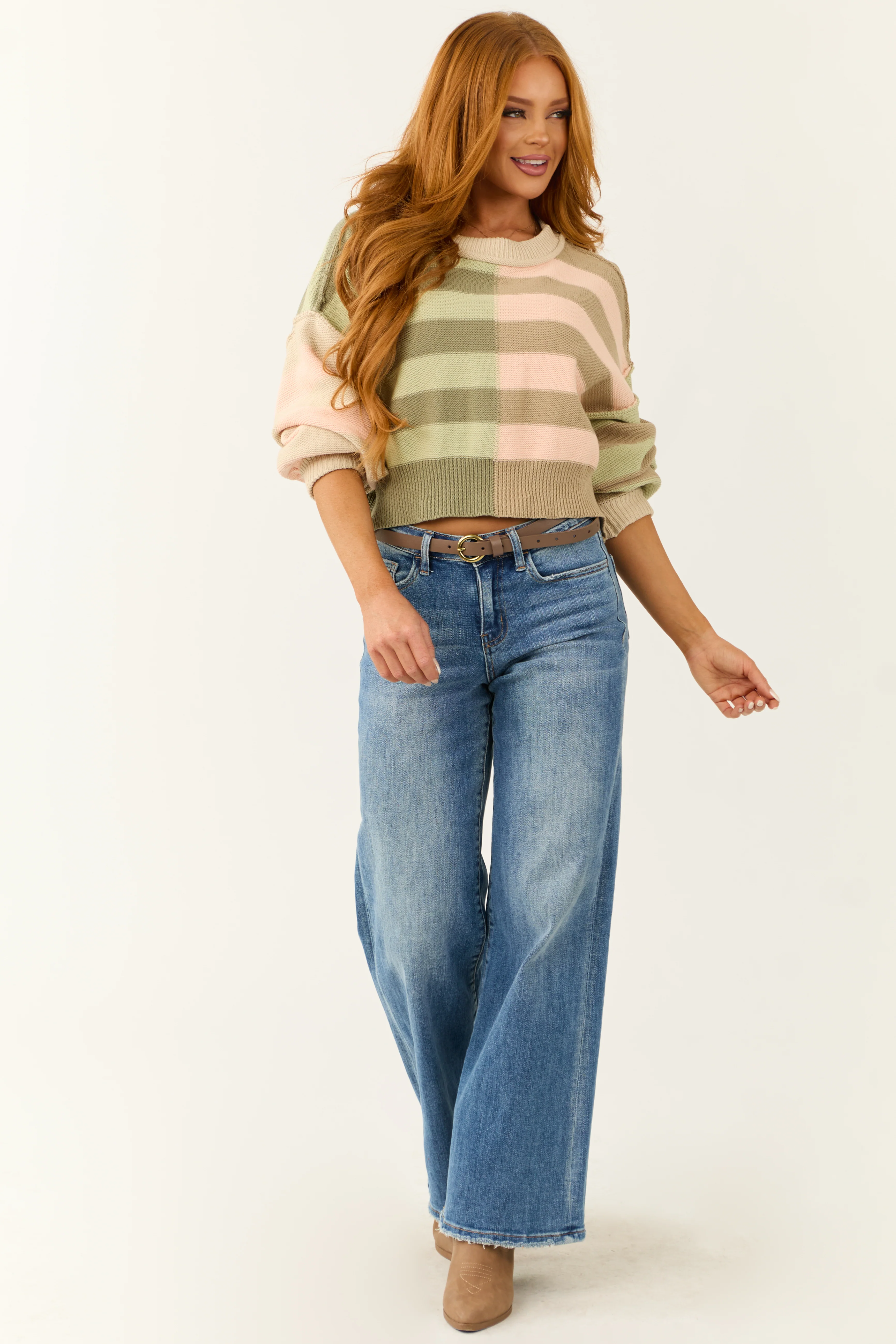 Multicolored Colorblock Stripe Cropped Sweater