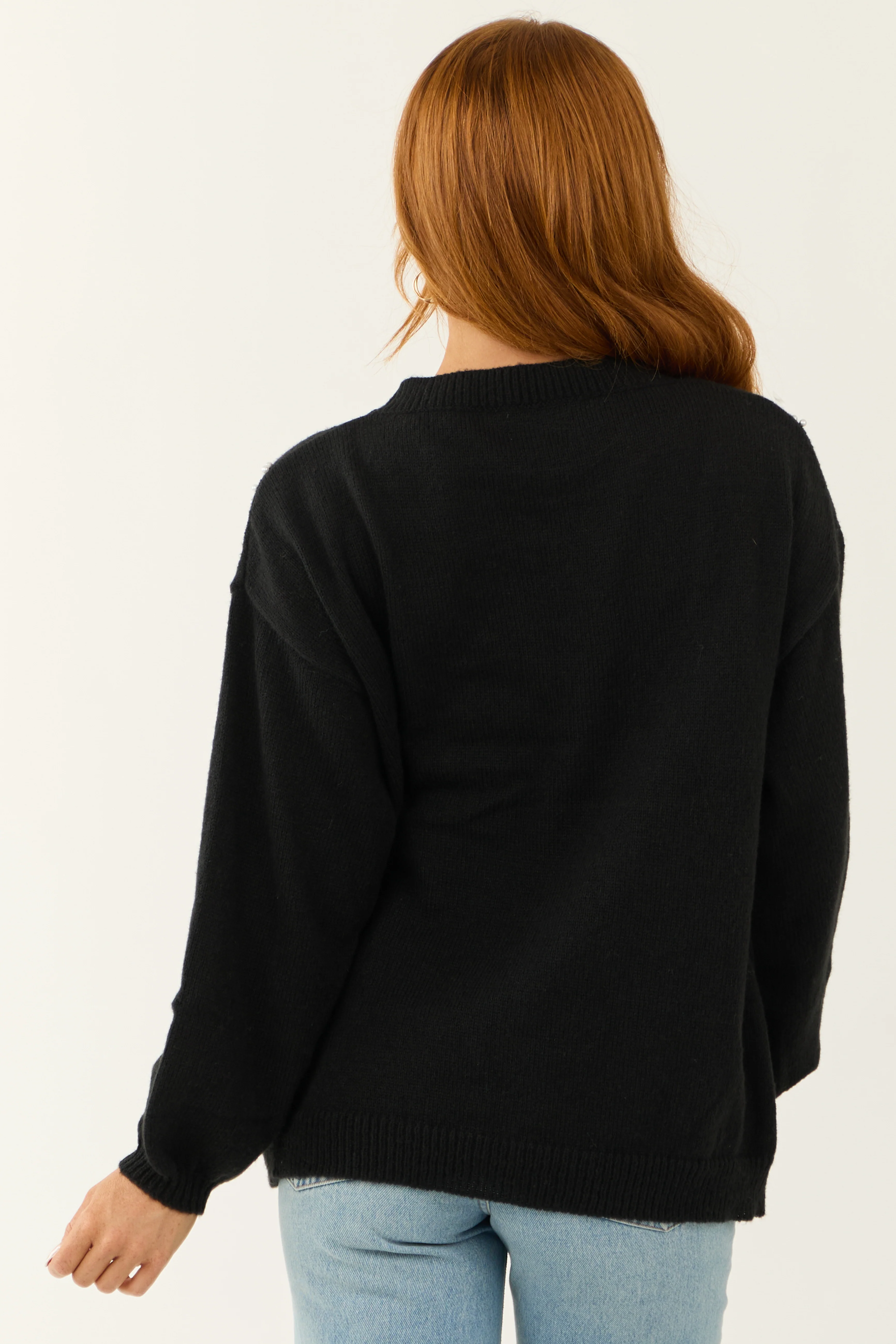 Ellie Black Diamond Pattern Pearl Beaded Sweater