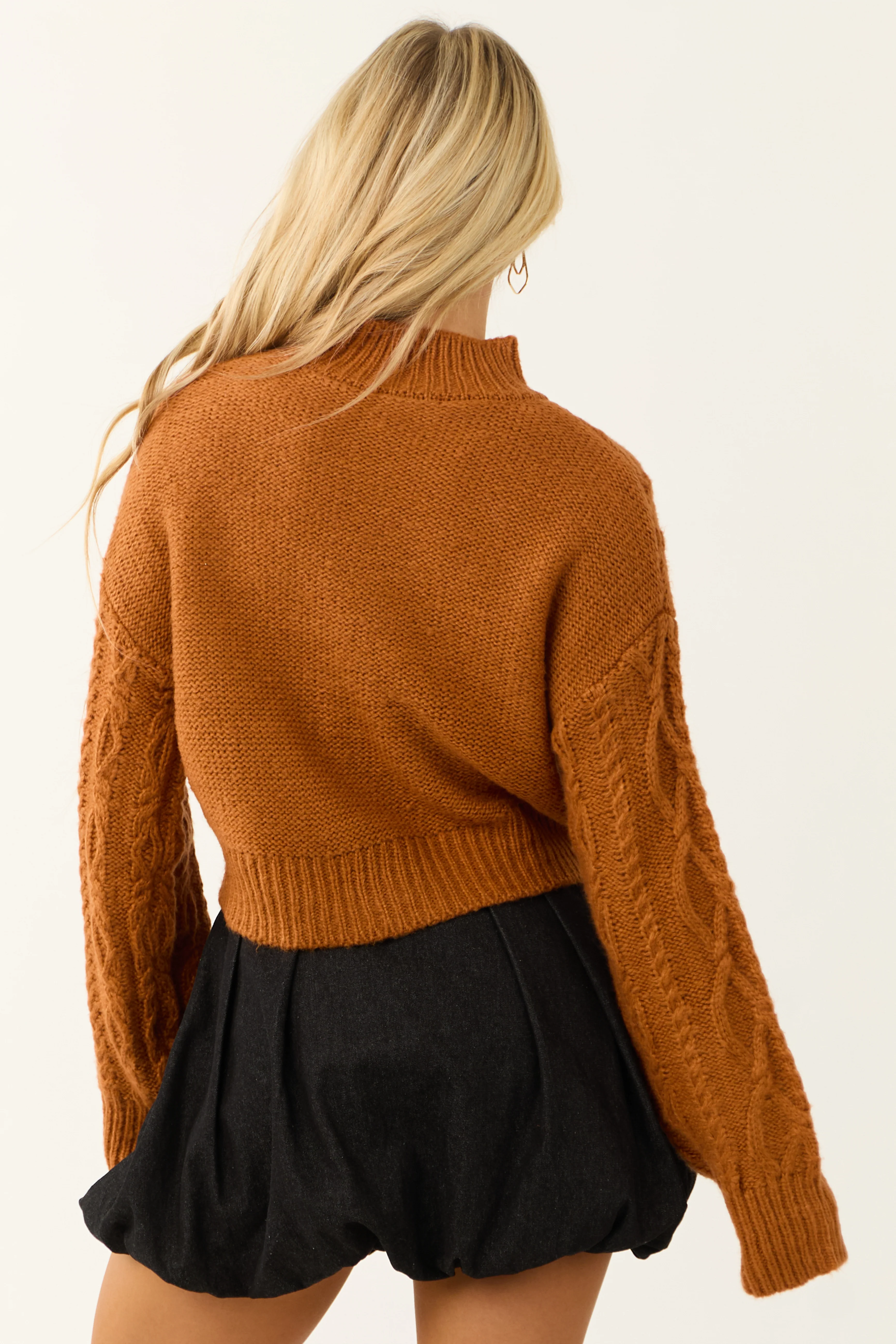 Caramel Mock Neck Cable Knit Sweater