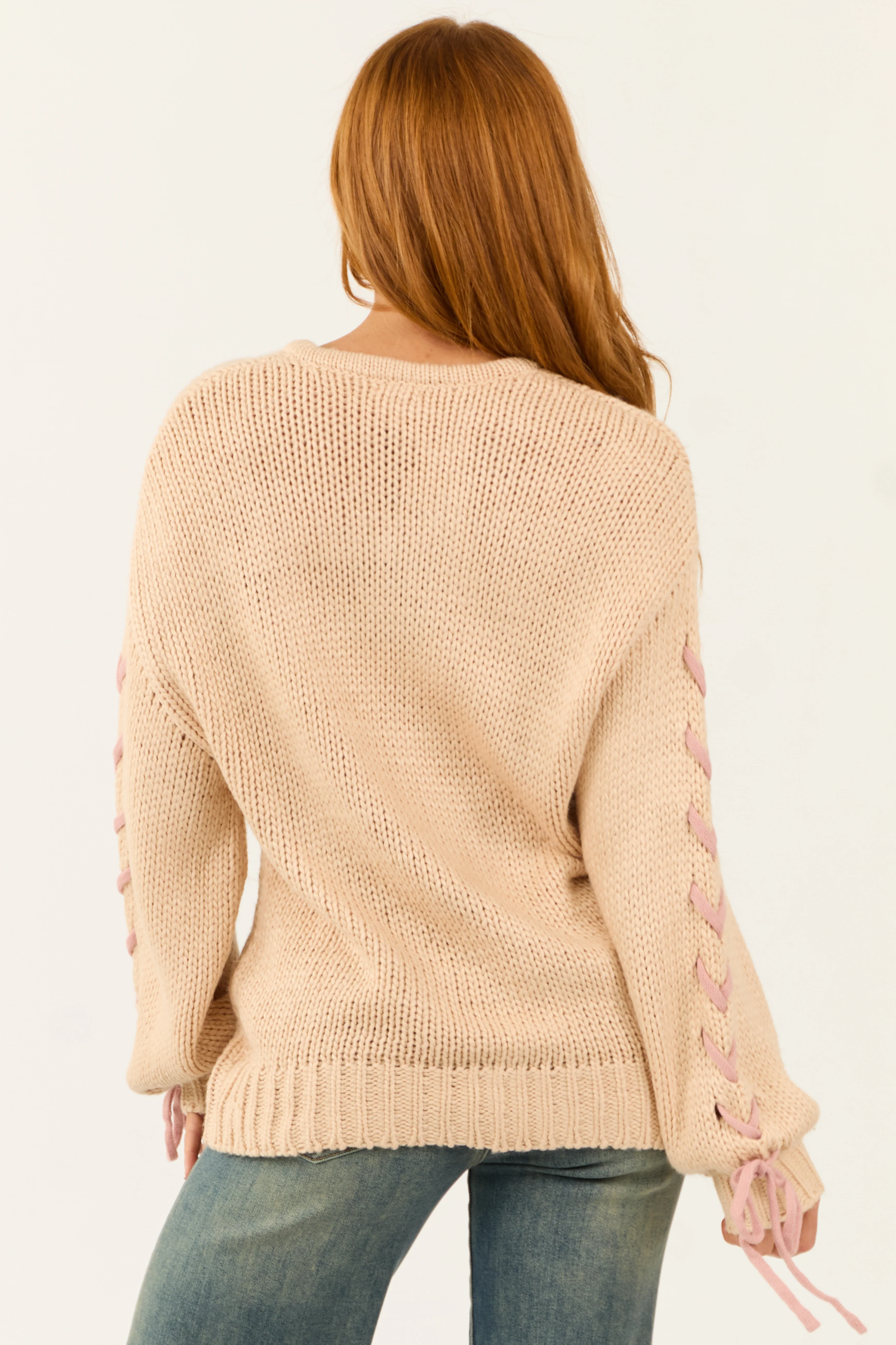 Nude Oversized Sweater with Laced Tie Sleeves
