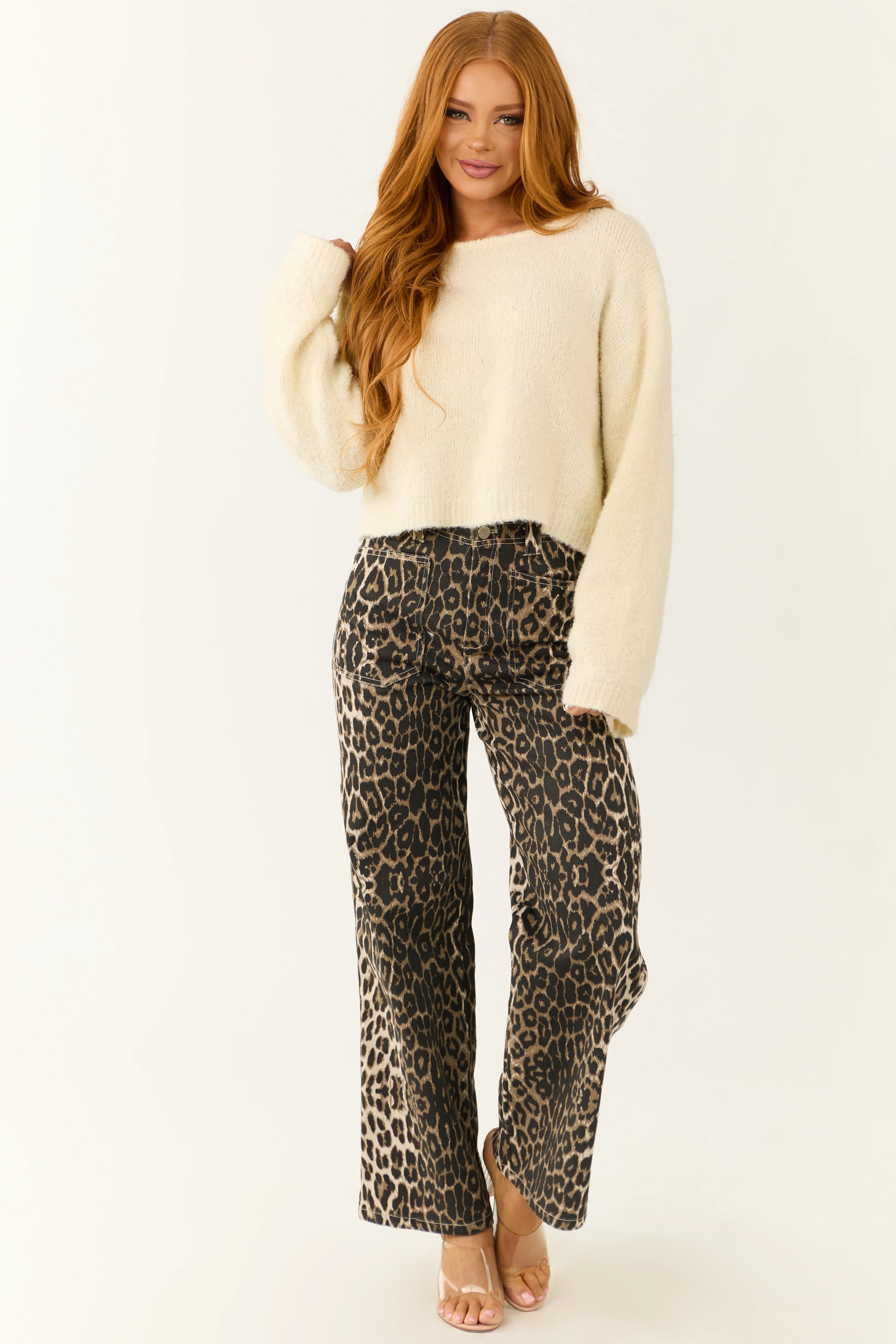 Latte Cropped Soft Cable Knit Sweater