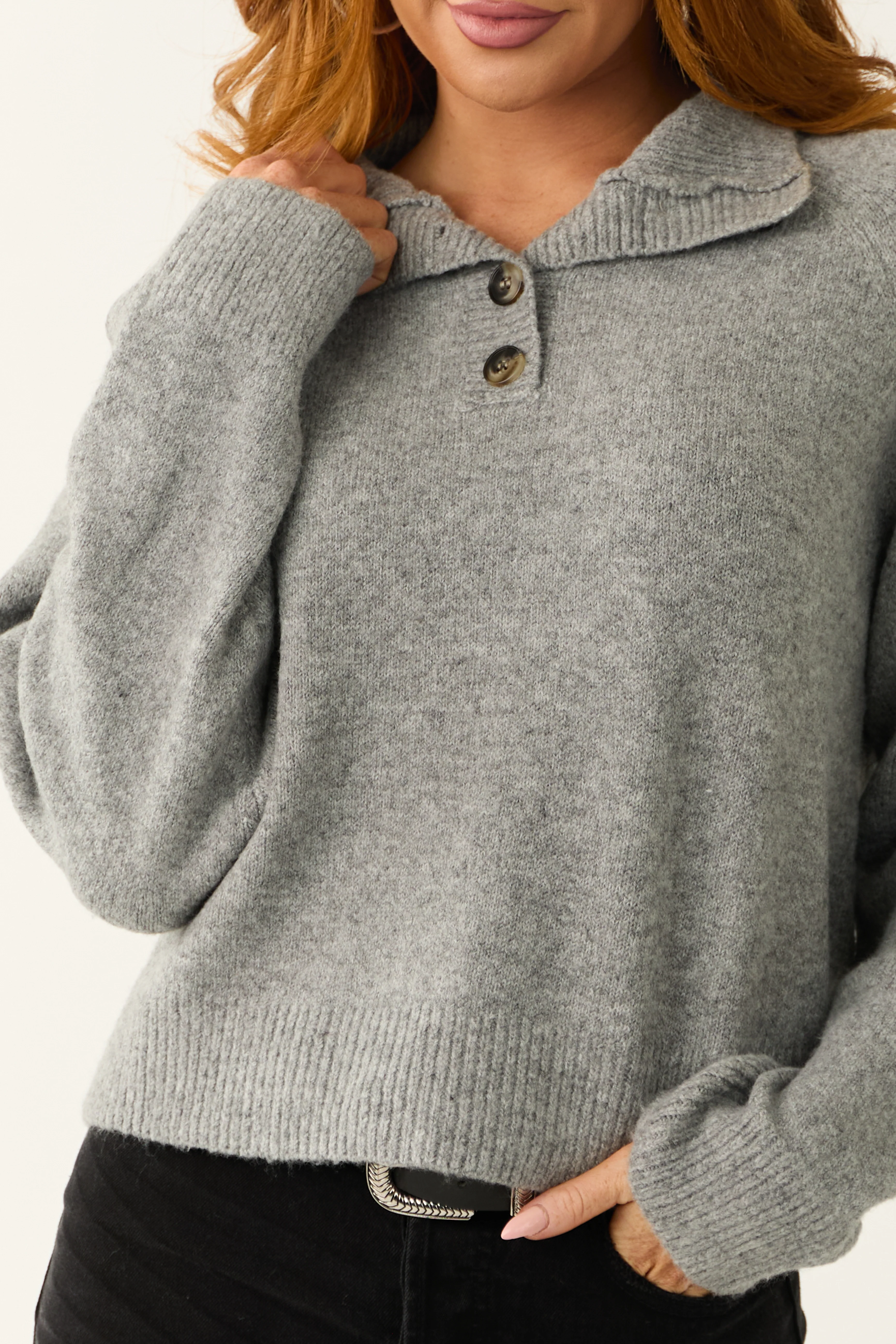 Blush Half Button Down Chunky Knit Sweater