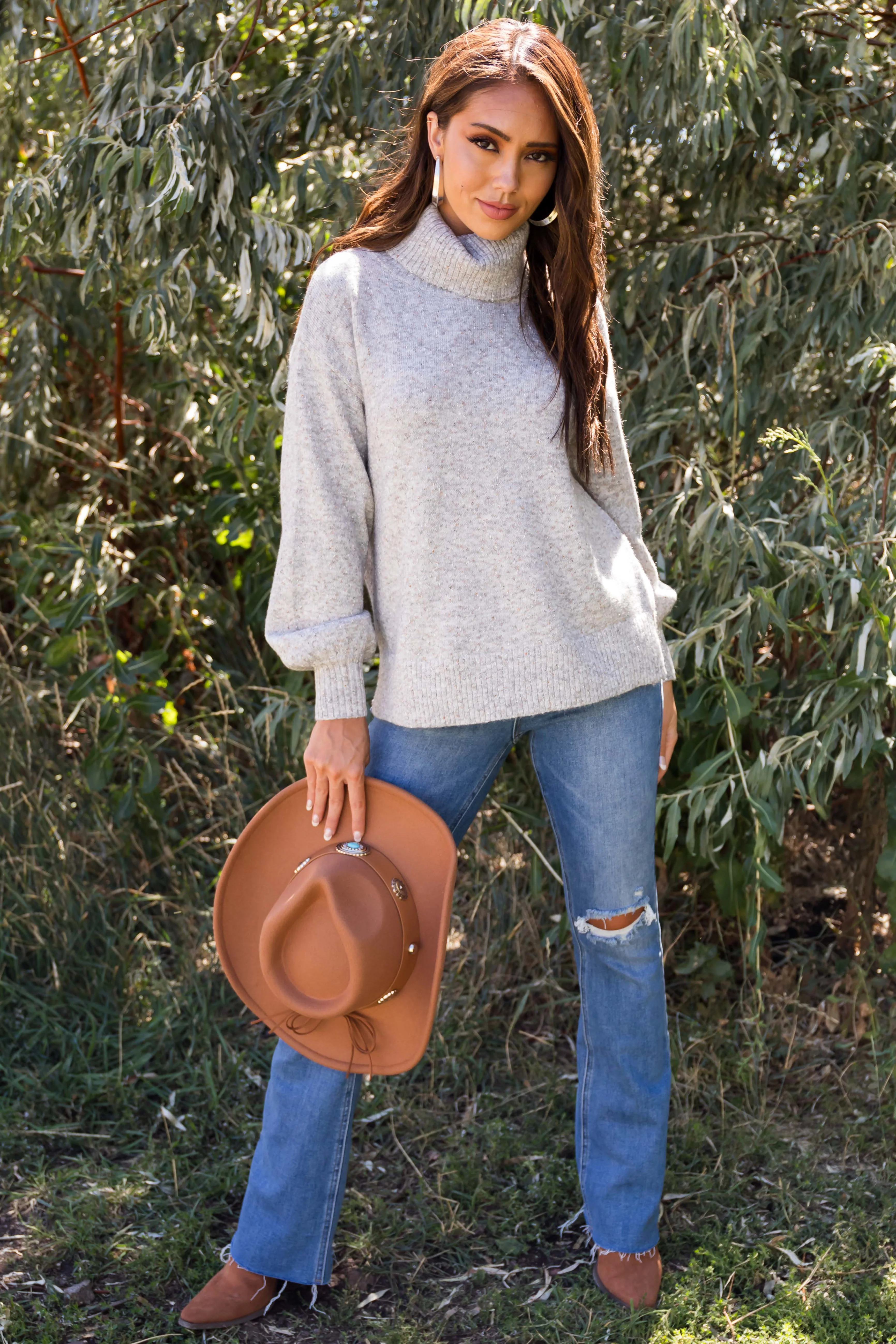 Dove Grey Balloon Sleeve Turtleneck Sweater