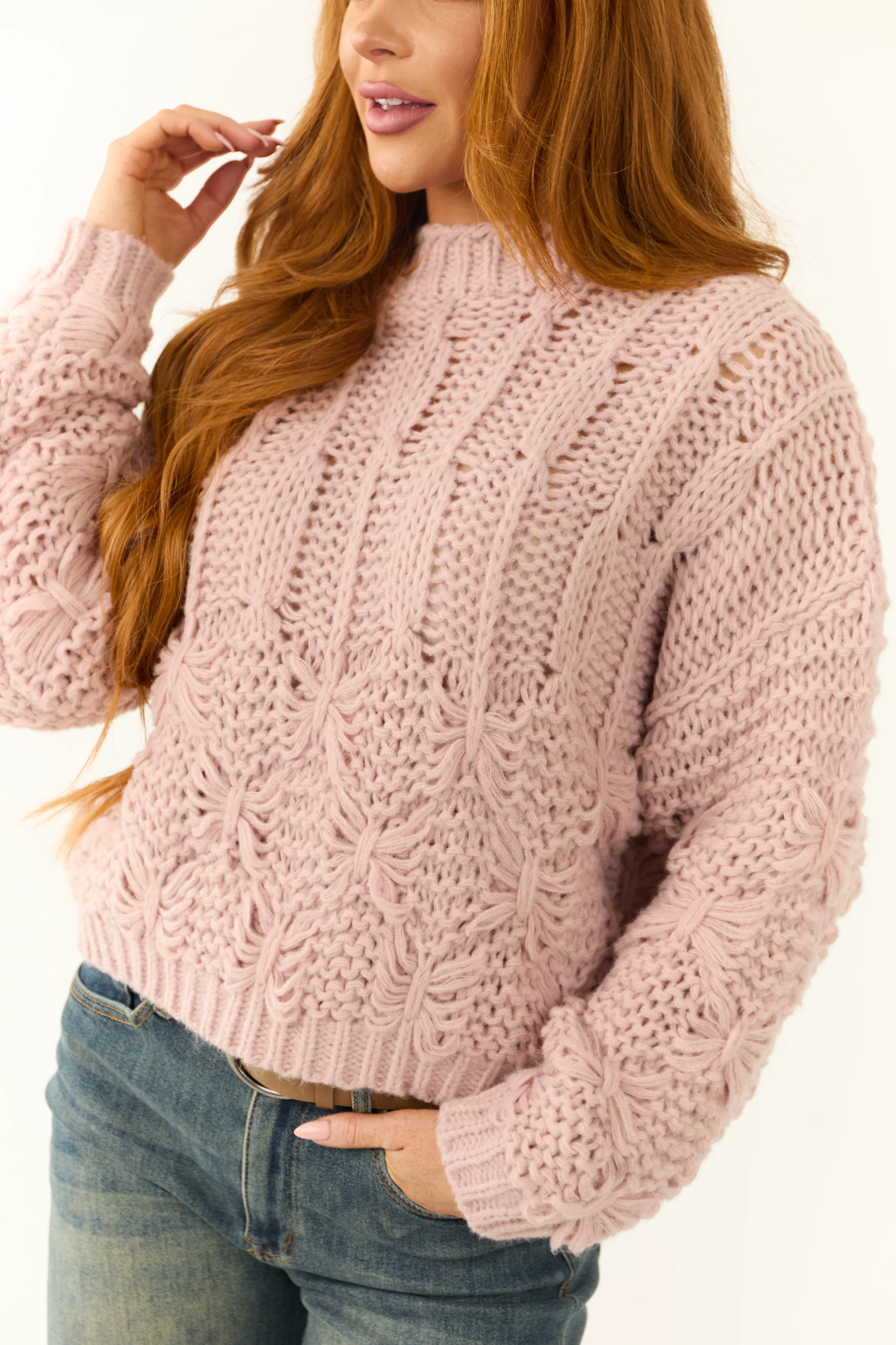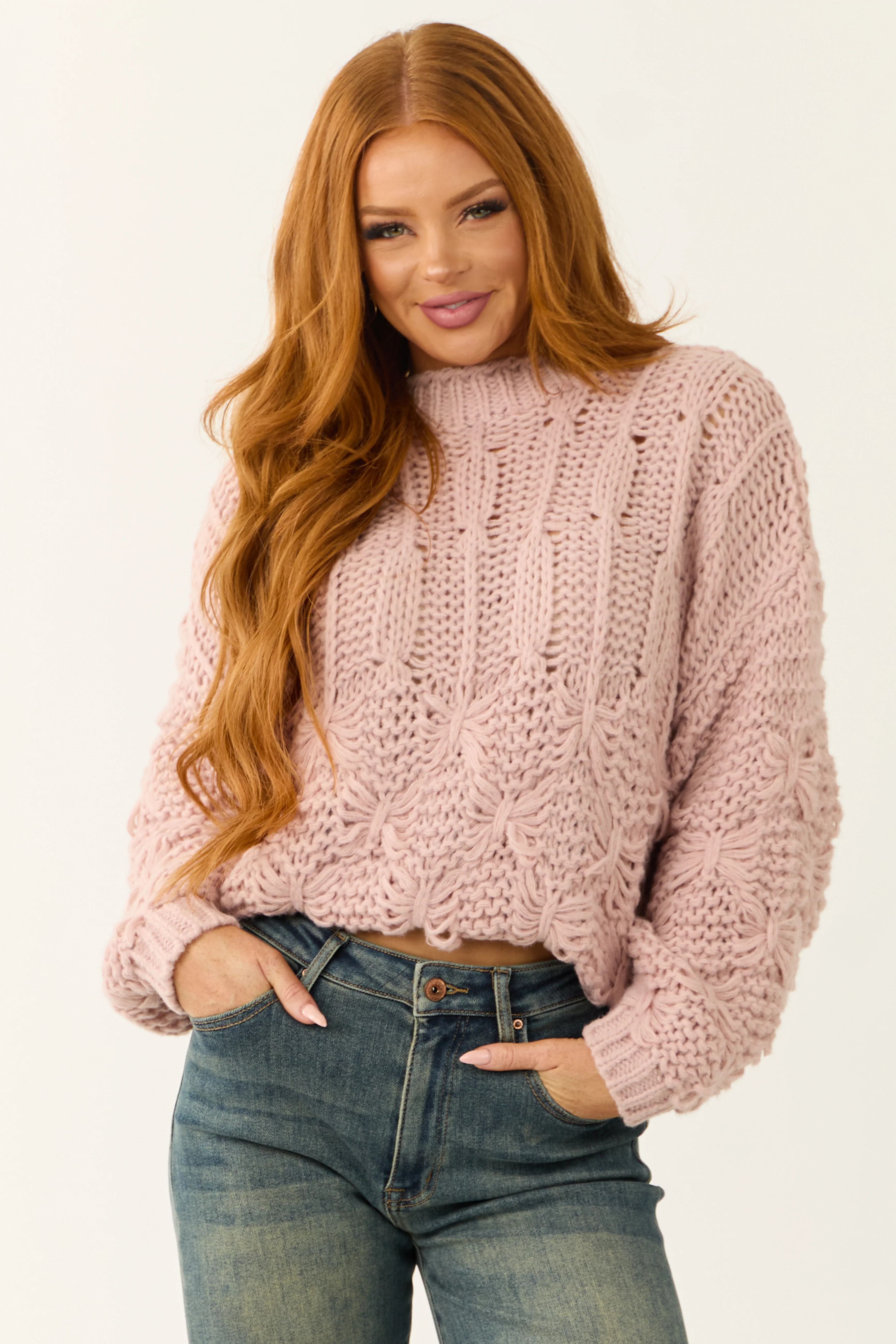 Dusty Blush Long Puff Sleeve Knit Sweater