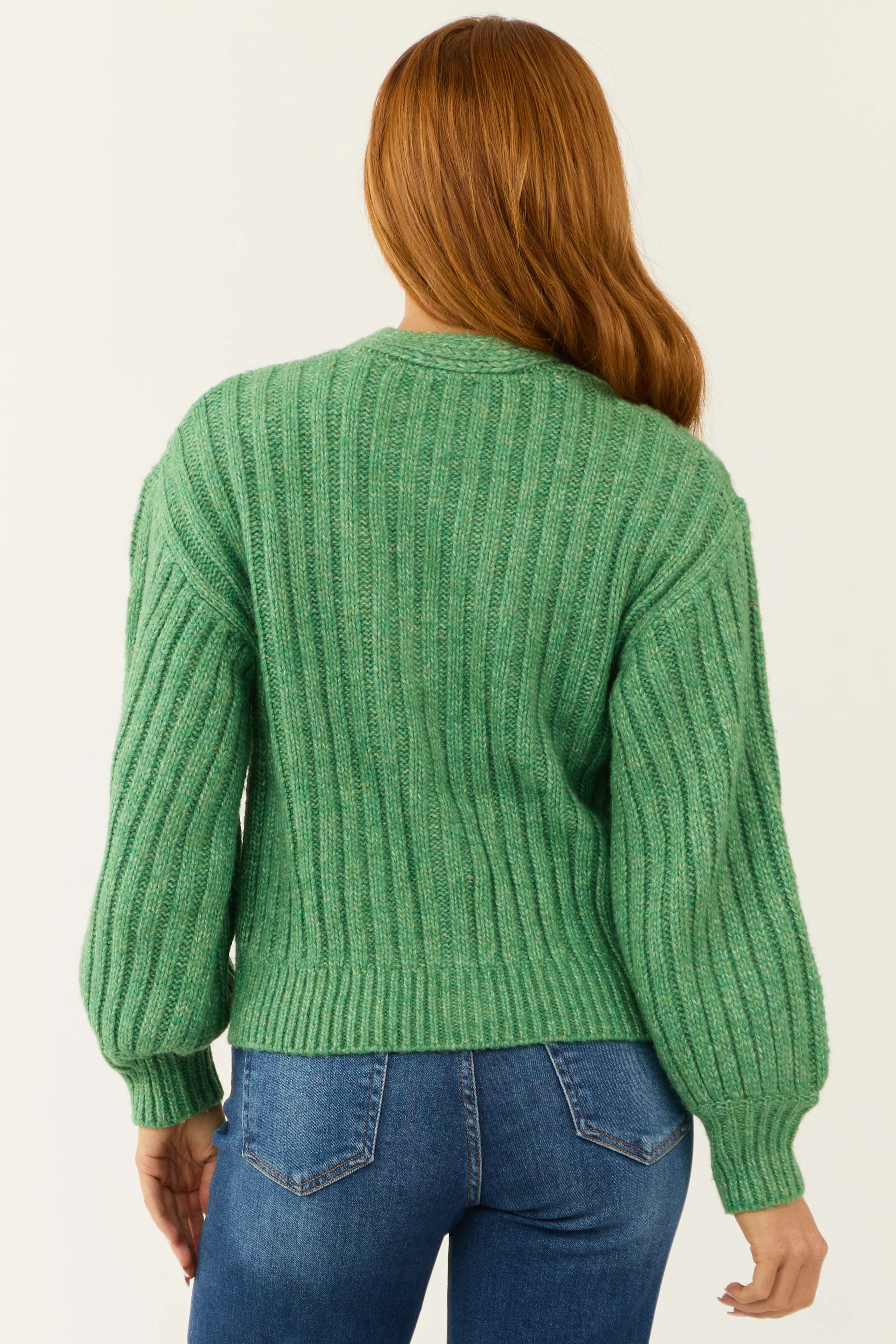Kelly Green Cable Knit Button Up Cardigan