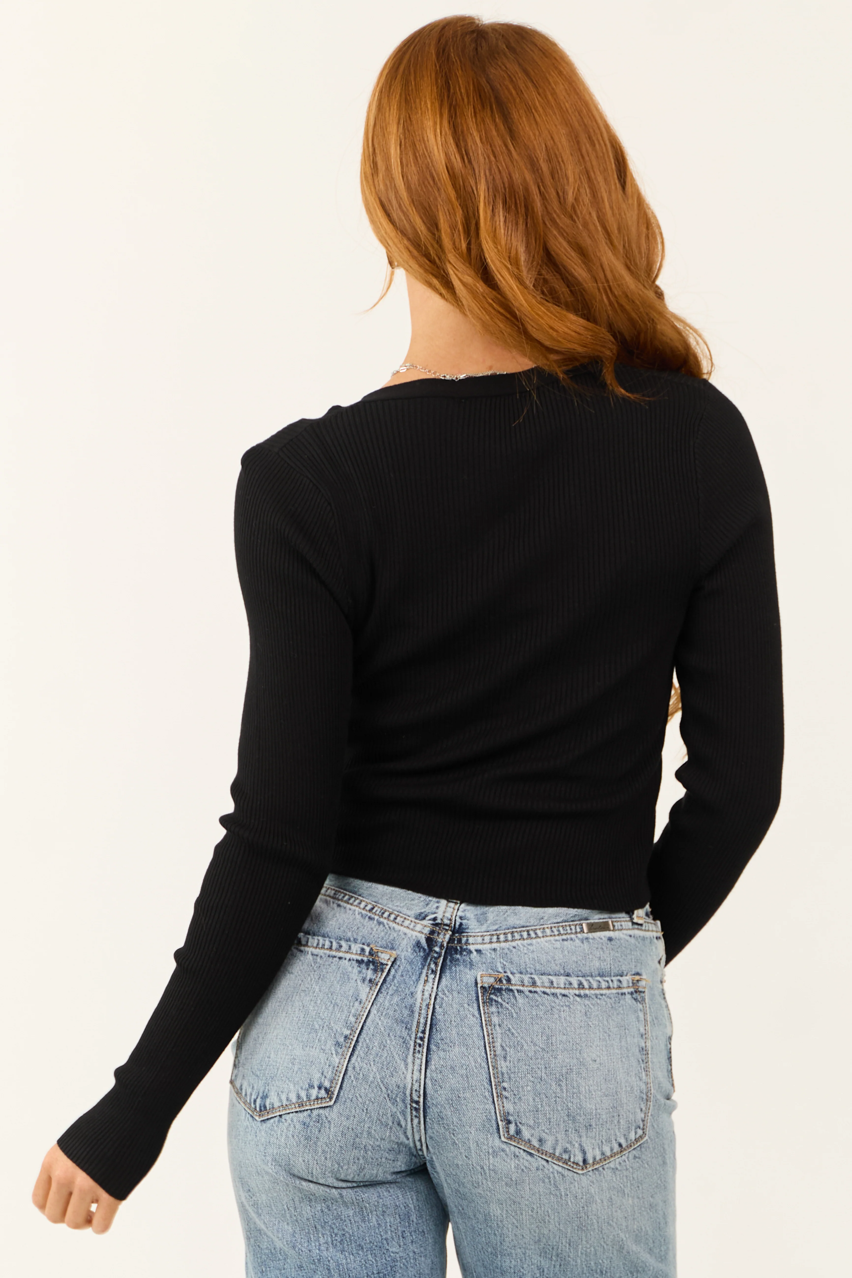 Black Stretchy Knit Fitted Button Down Top