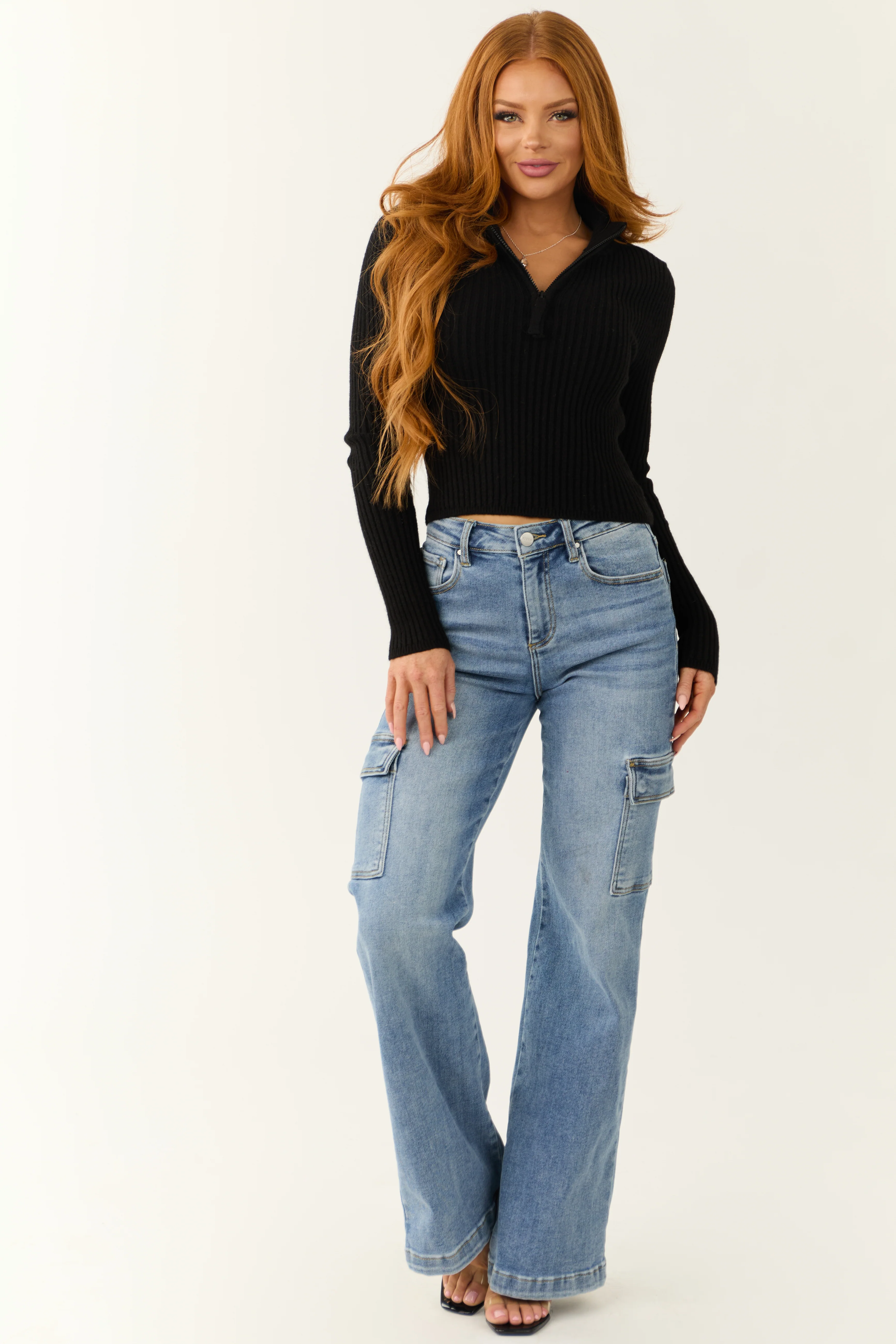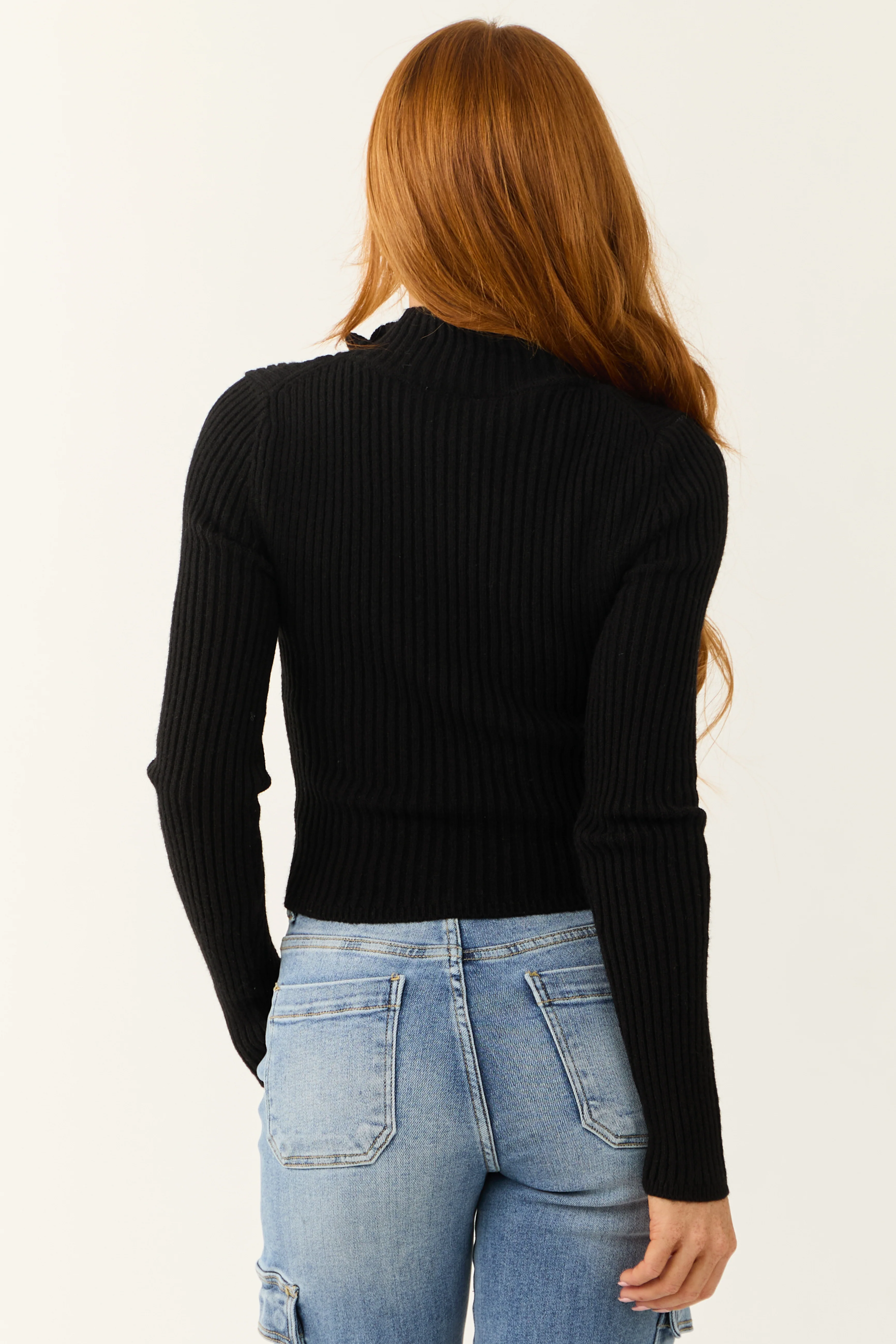 Black Ribbed Knit Half Zip Fitted Top
