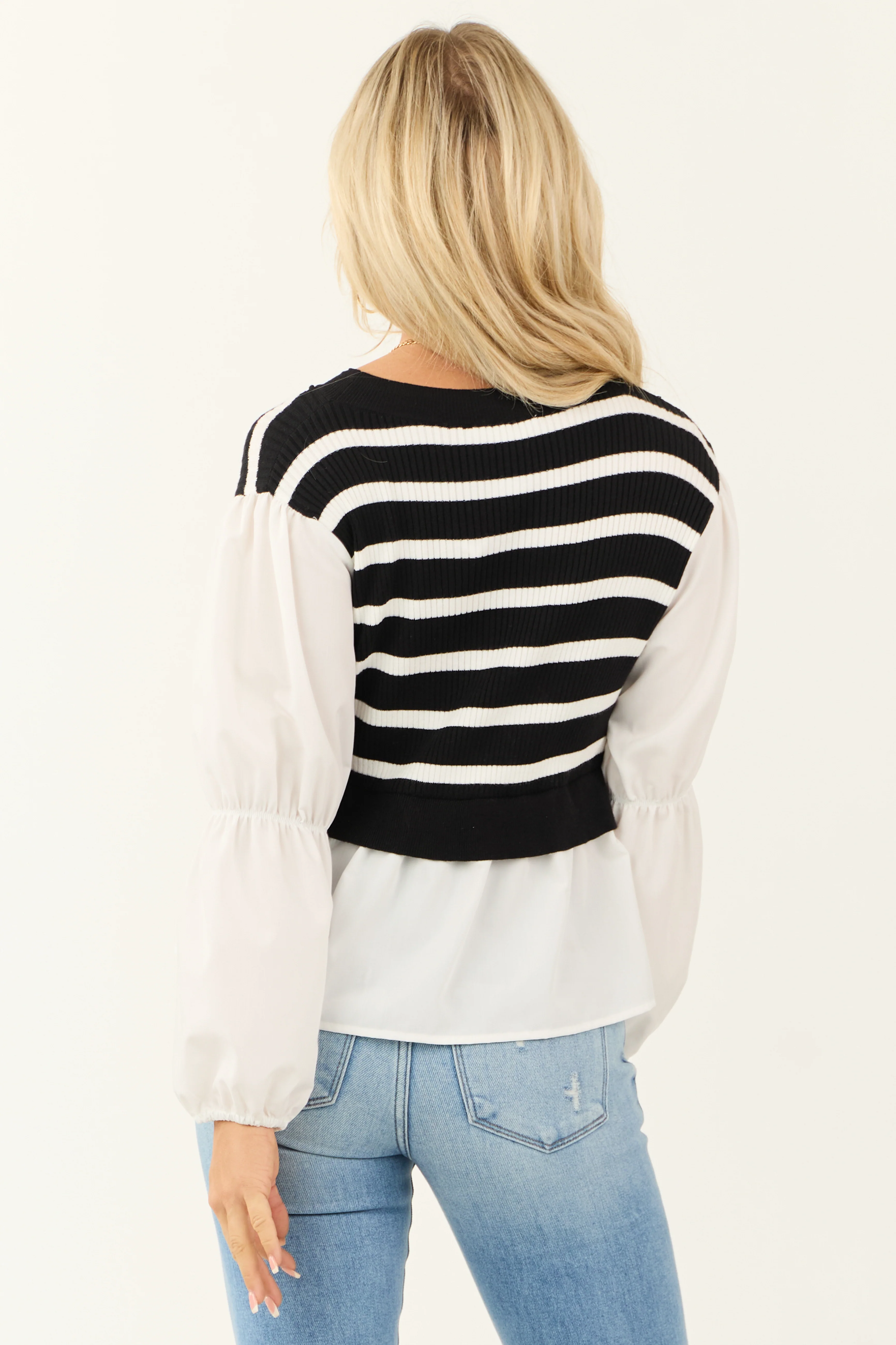 Black Striped Sweater Vest with Long Sleeve Top
