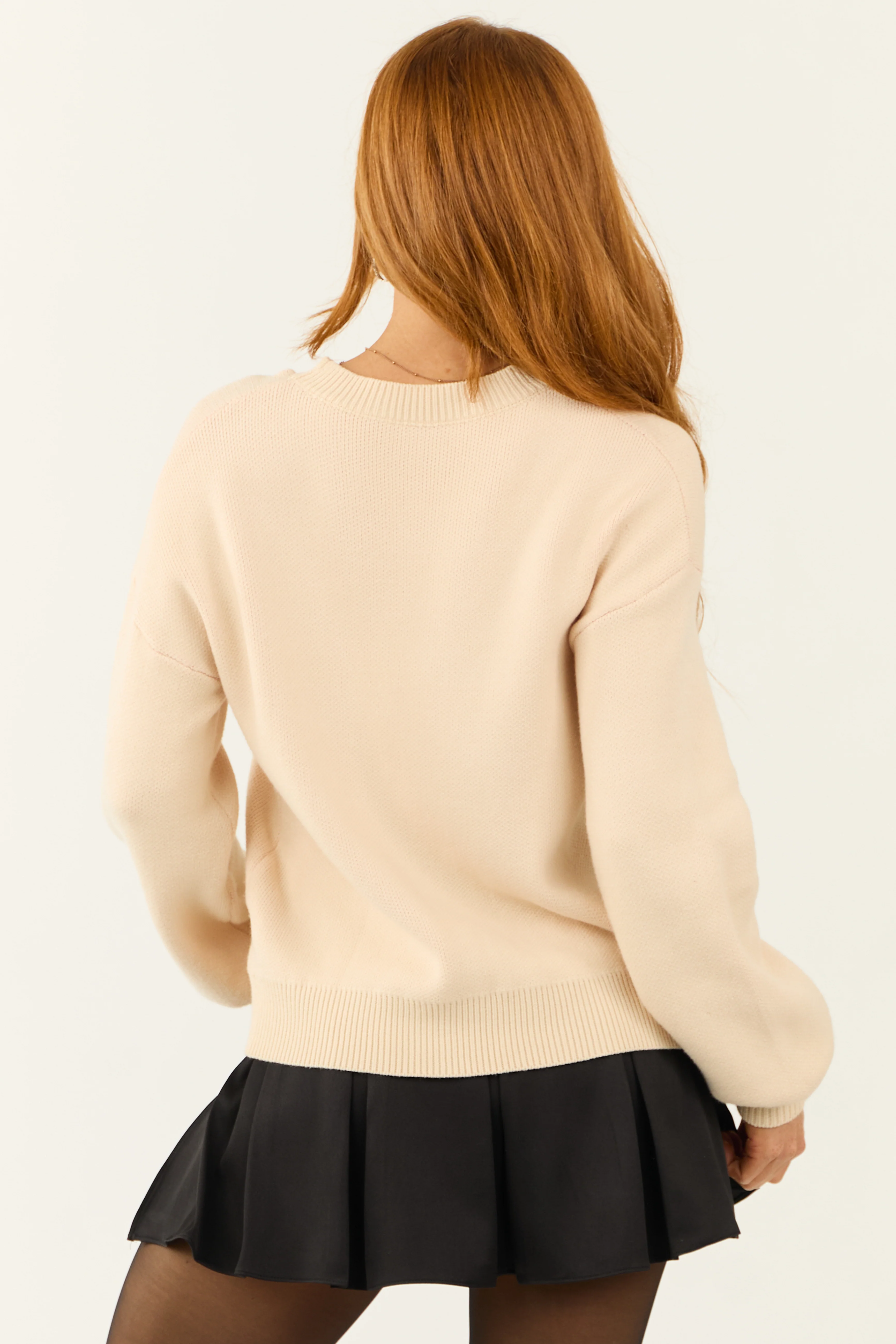 Almond Bow Graphic Puff Sleeve Sweater