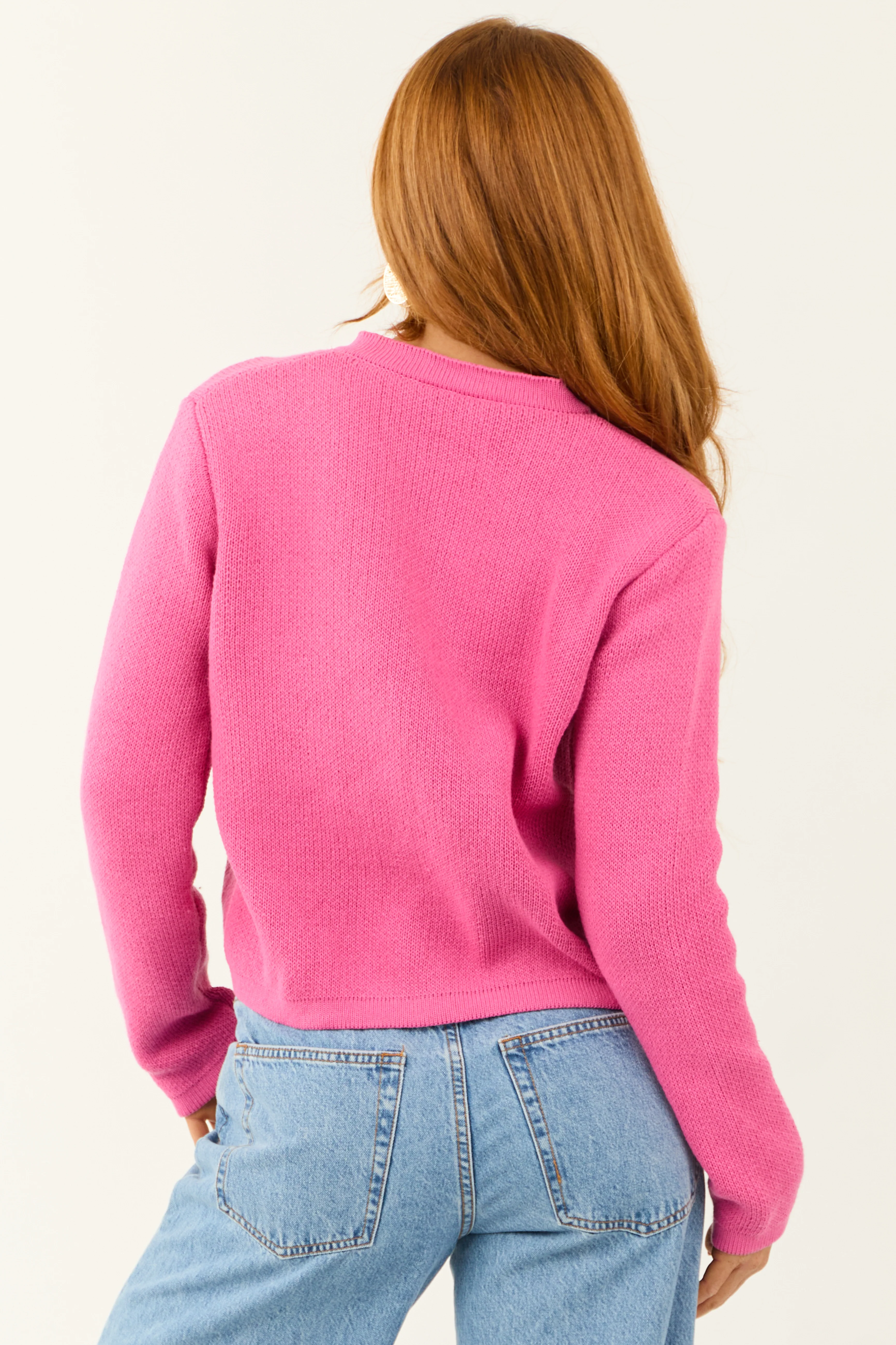 Fuchsia Button Down Long Sleeve Knit Cardigan