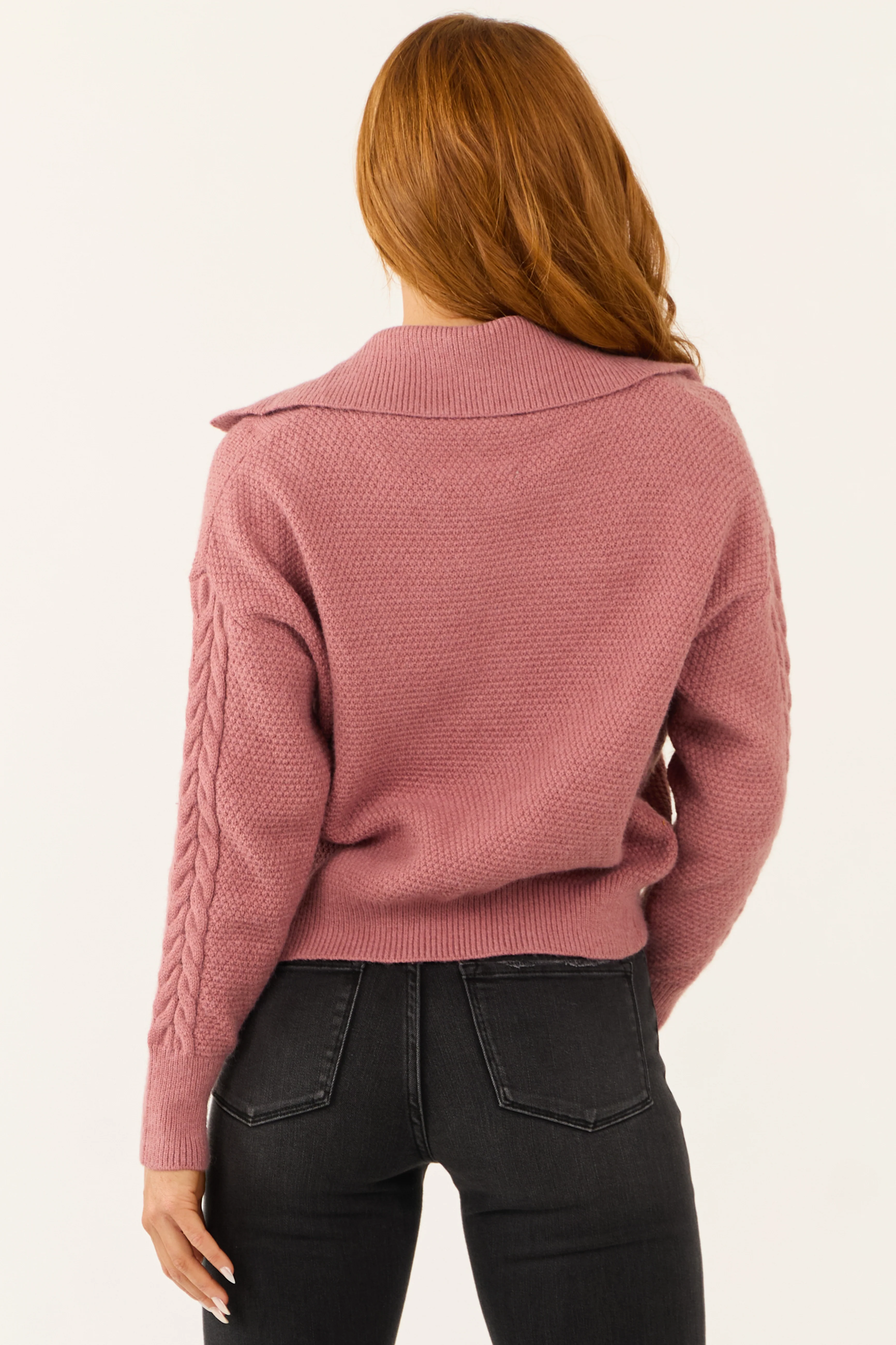Punch Cable Knit Button Up Collared Cardigan