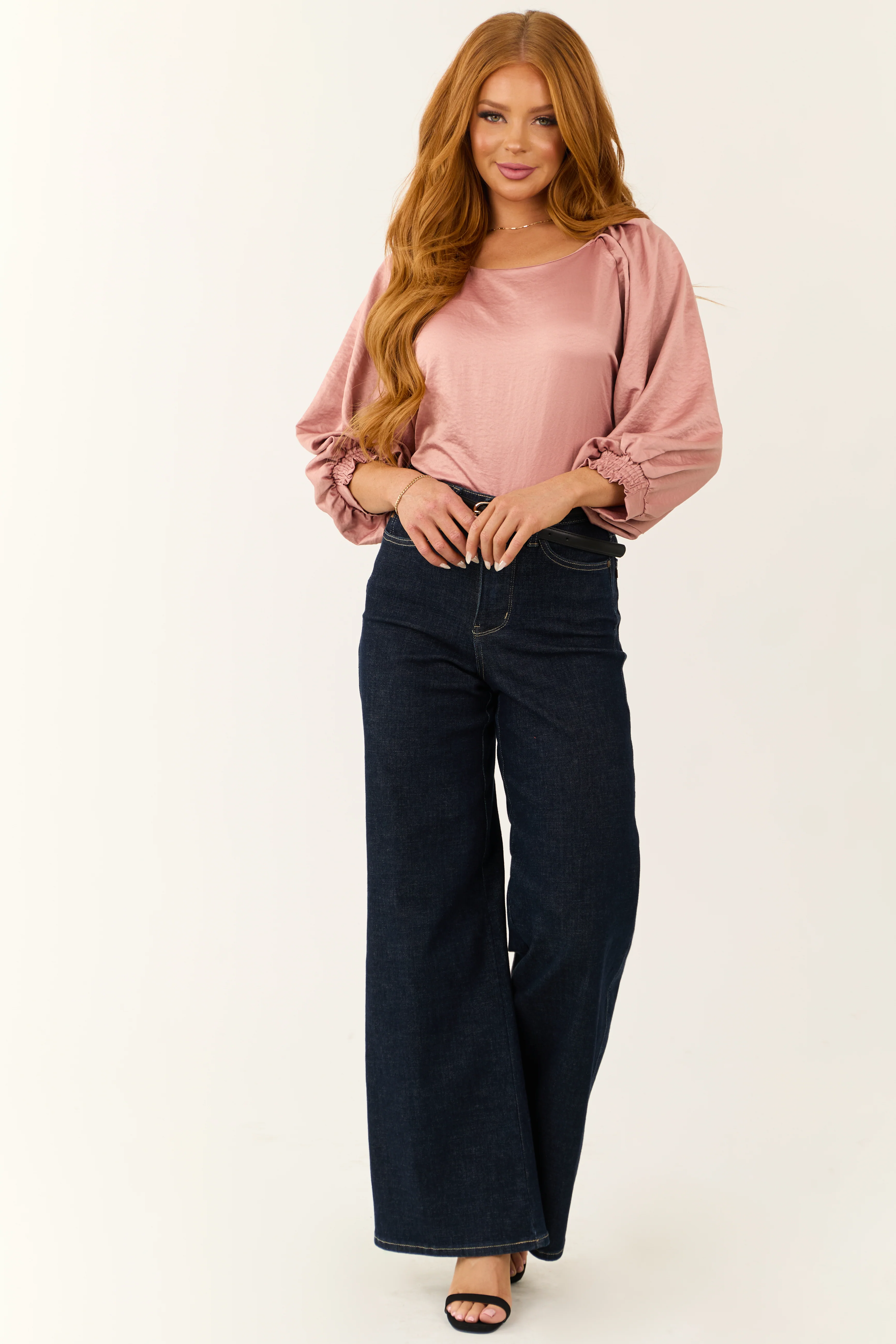 Dusty Blush Ruched Shoulder Long Sleeve Top