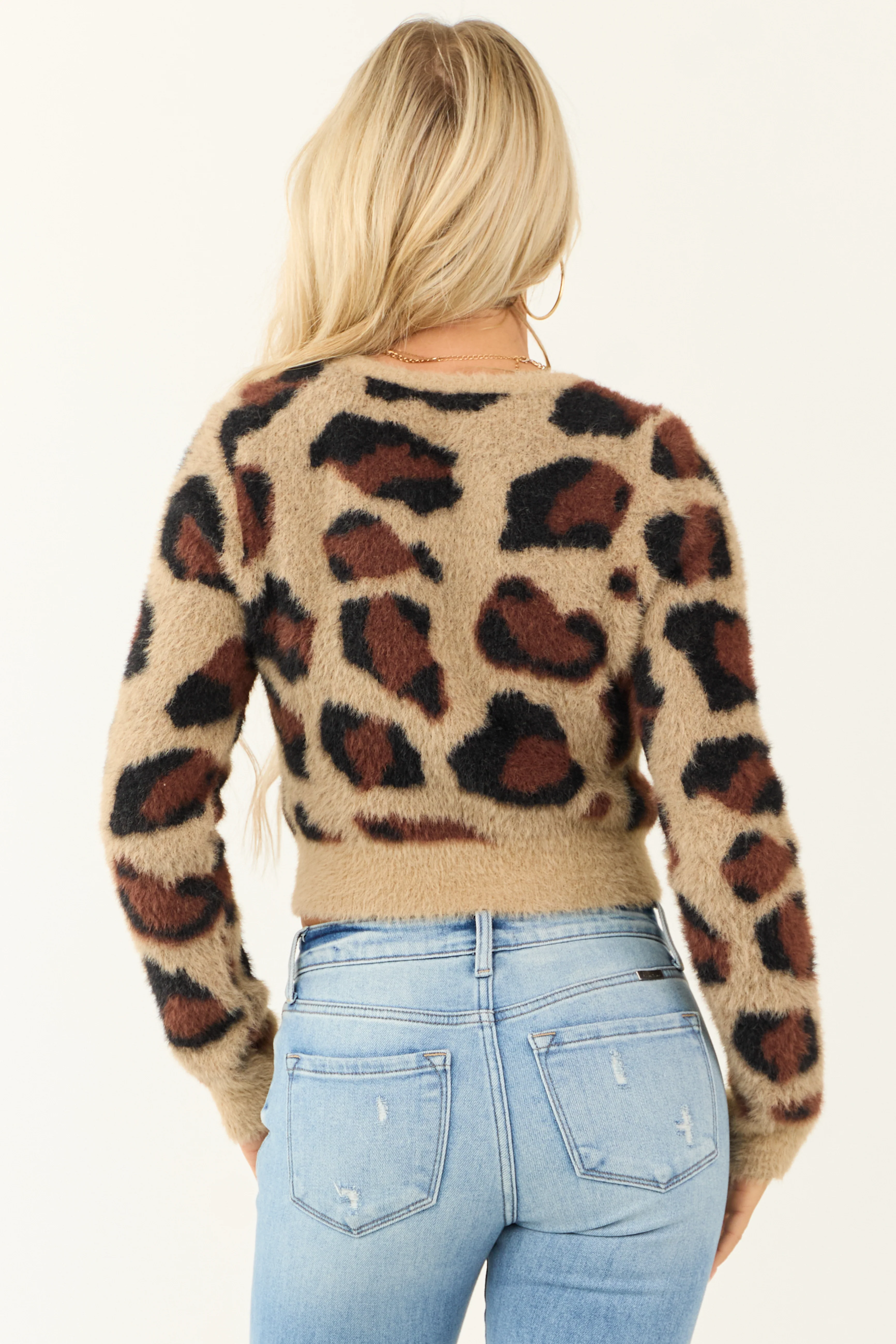 Oatmeal Faux Fur Leopard Print Cardigan