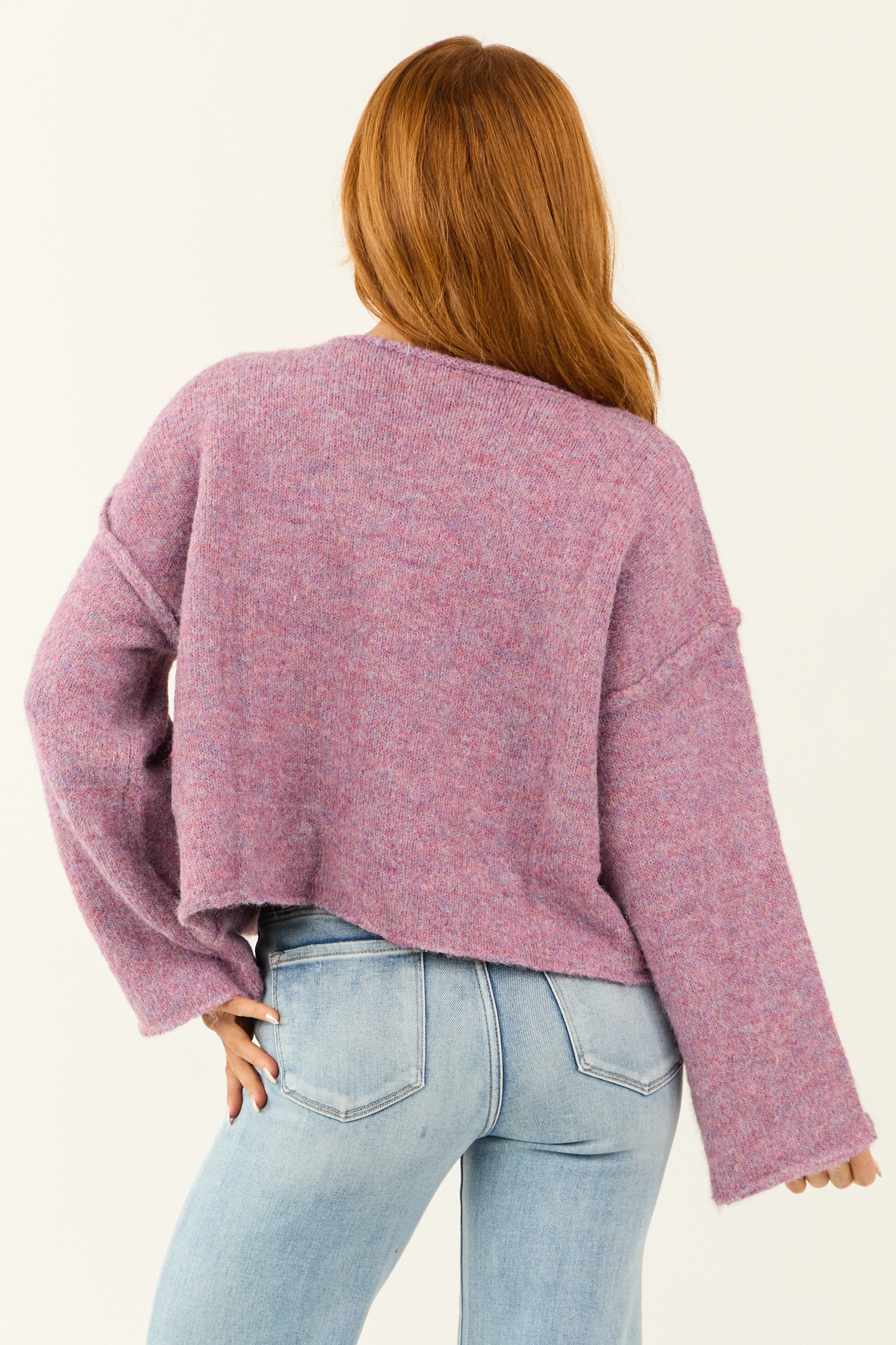 Mauve Melange Knit Boat Neck Wide Sleeve Sweater