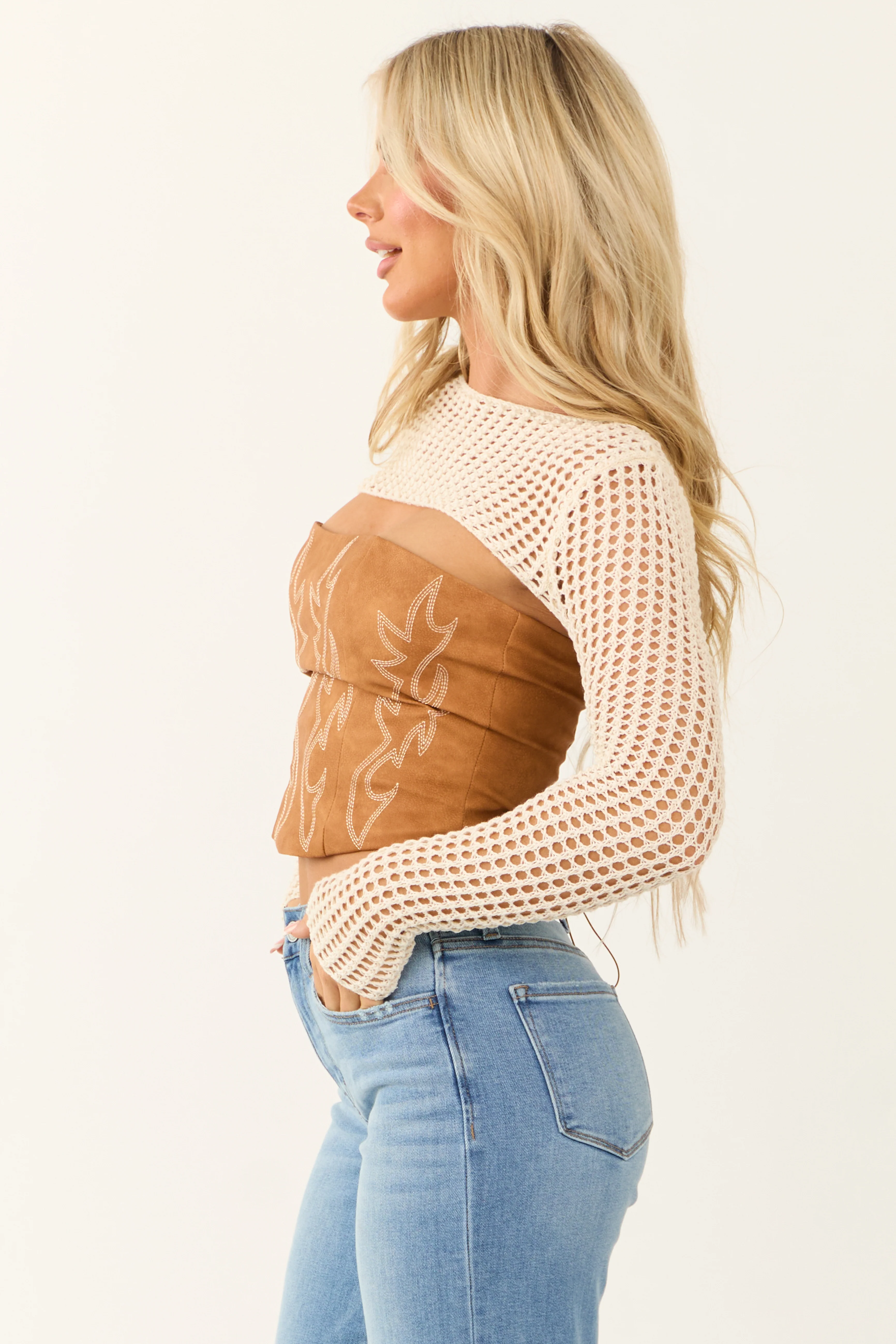 Ivory Lattice Shrug Long Sleeve Sweater Knit Top