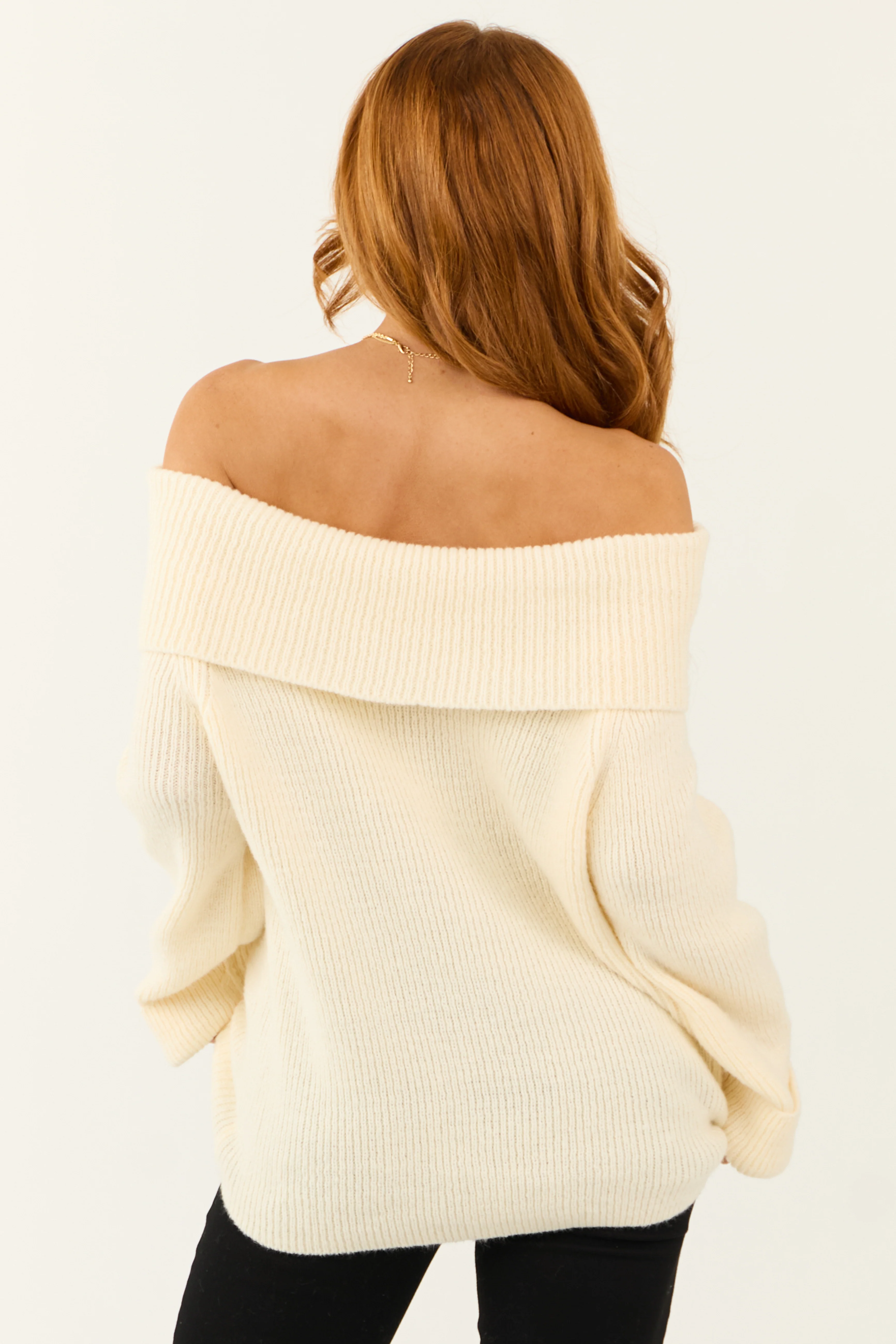 Cream Ribbed Knit Off Shoulder Oversized Sweater