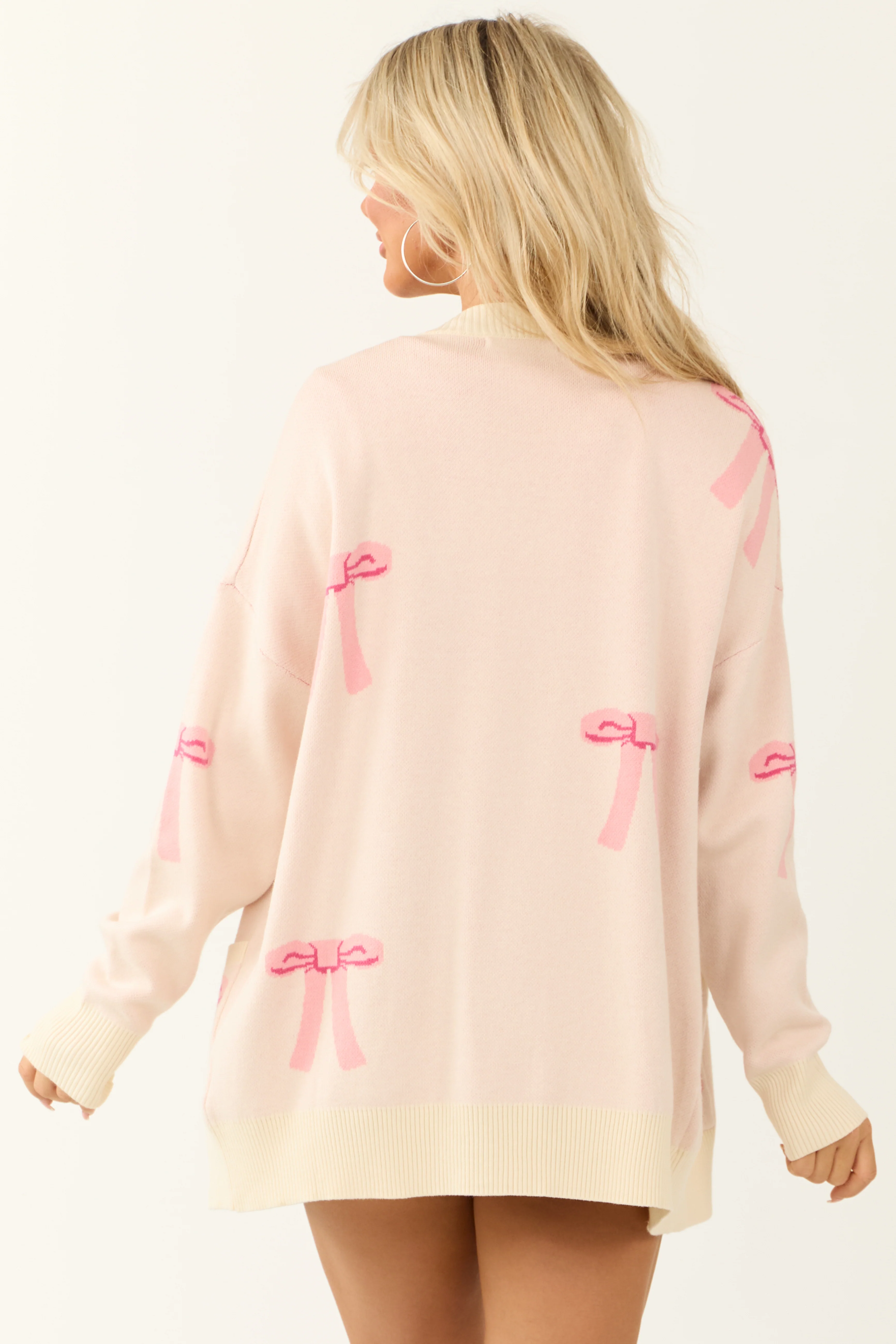 Blush Bow Print Oversized Knit Cardigan