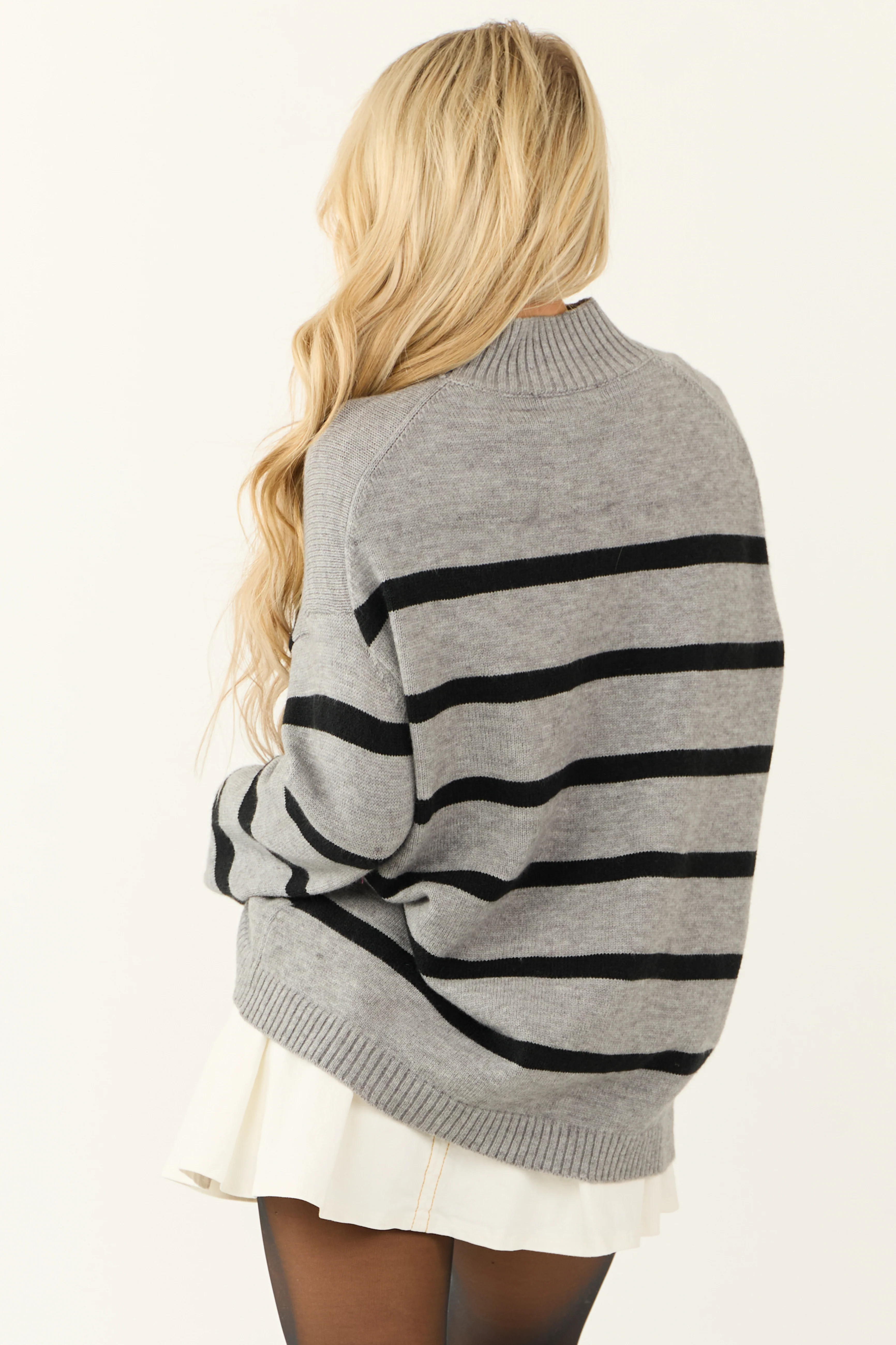 Slate Striped Mock Neck Long Sleeve Sweater