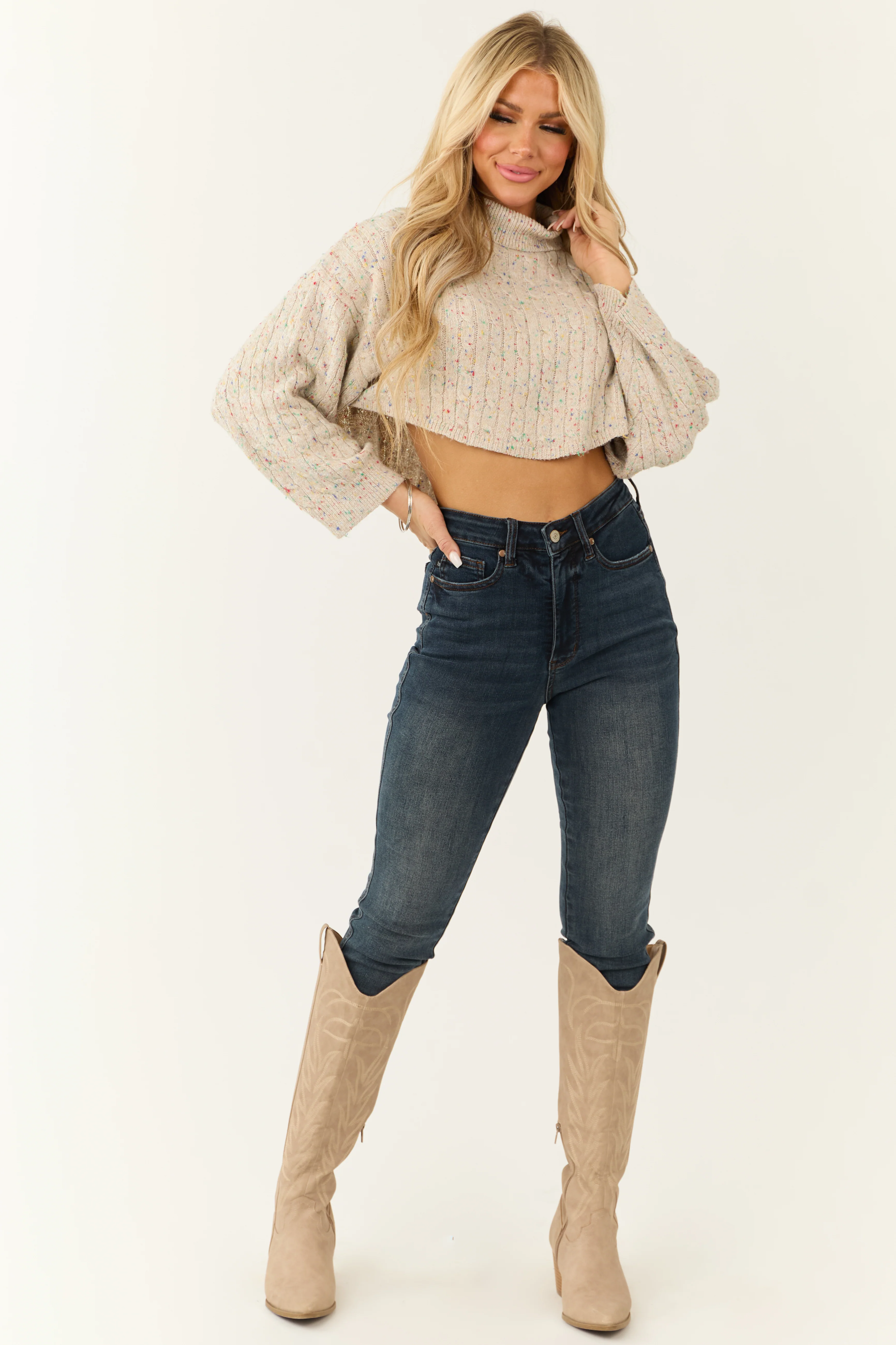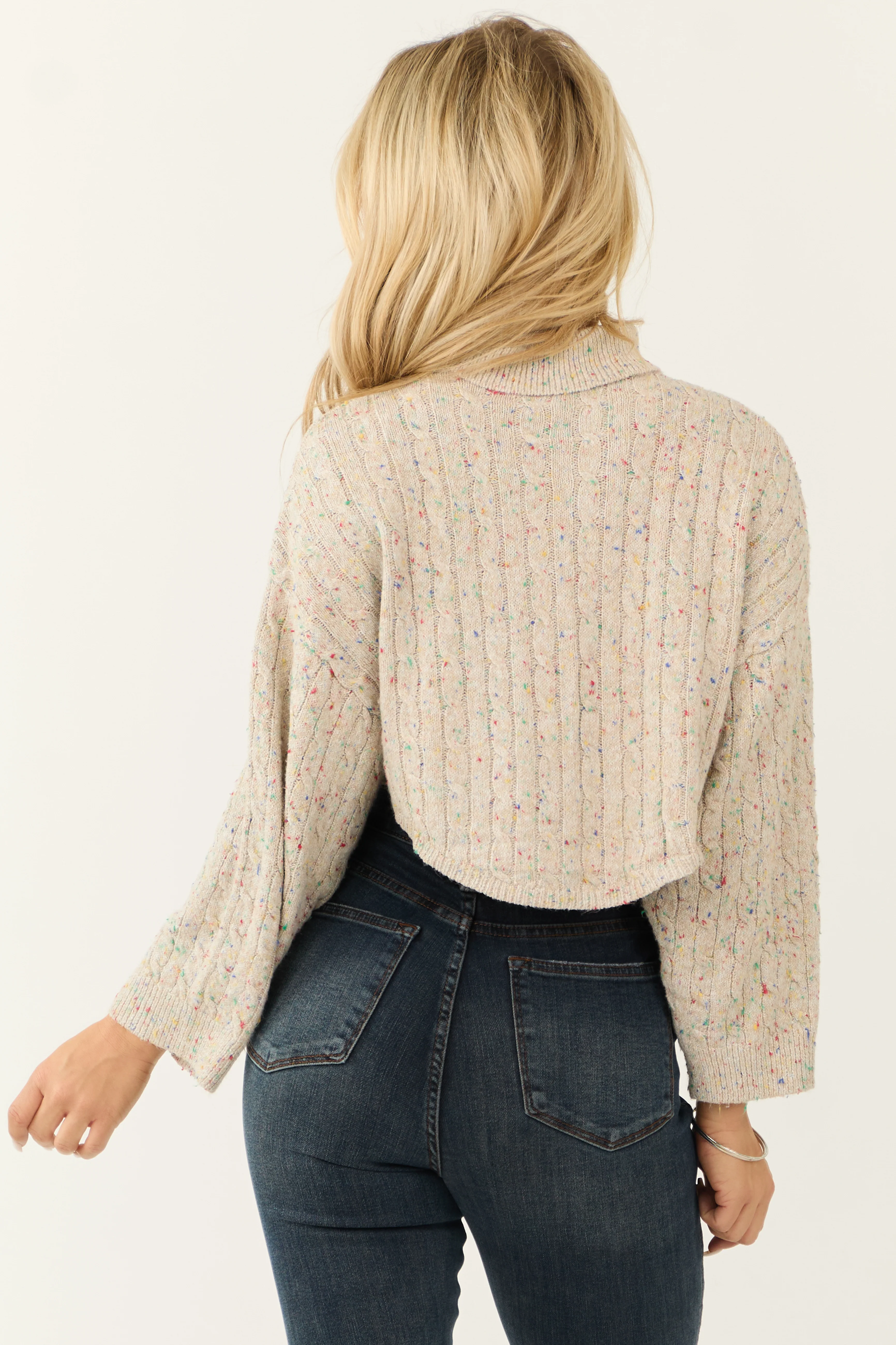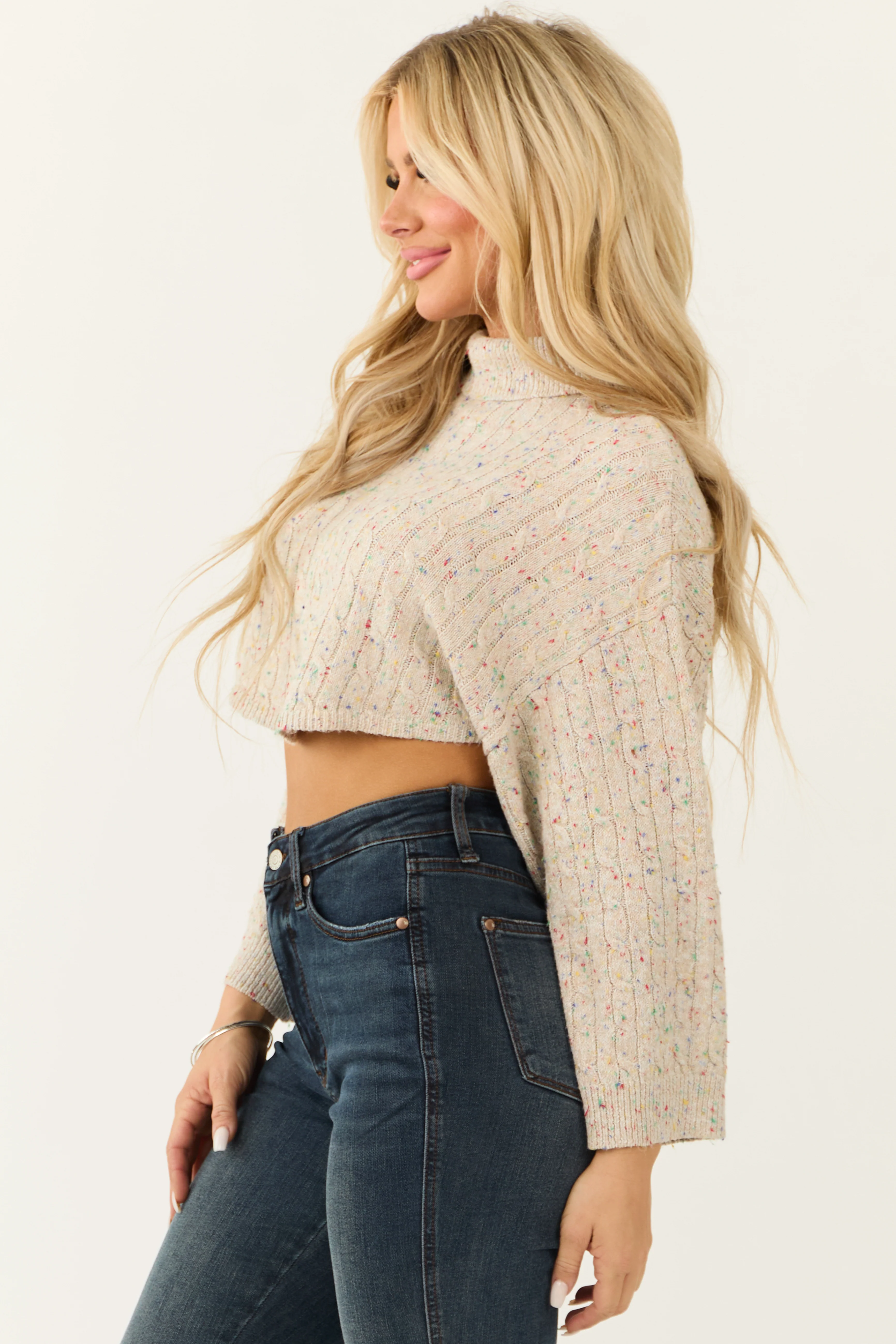 Light Oatmeal Confetti Knit Turtleneck Sweater
