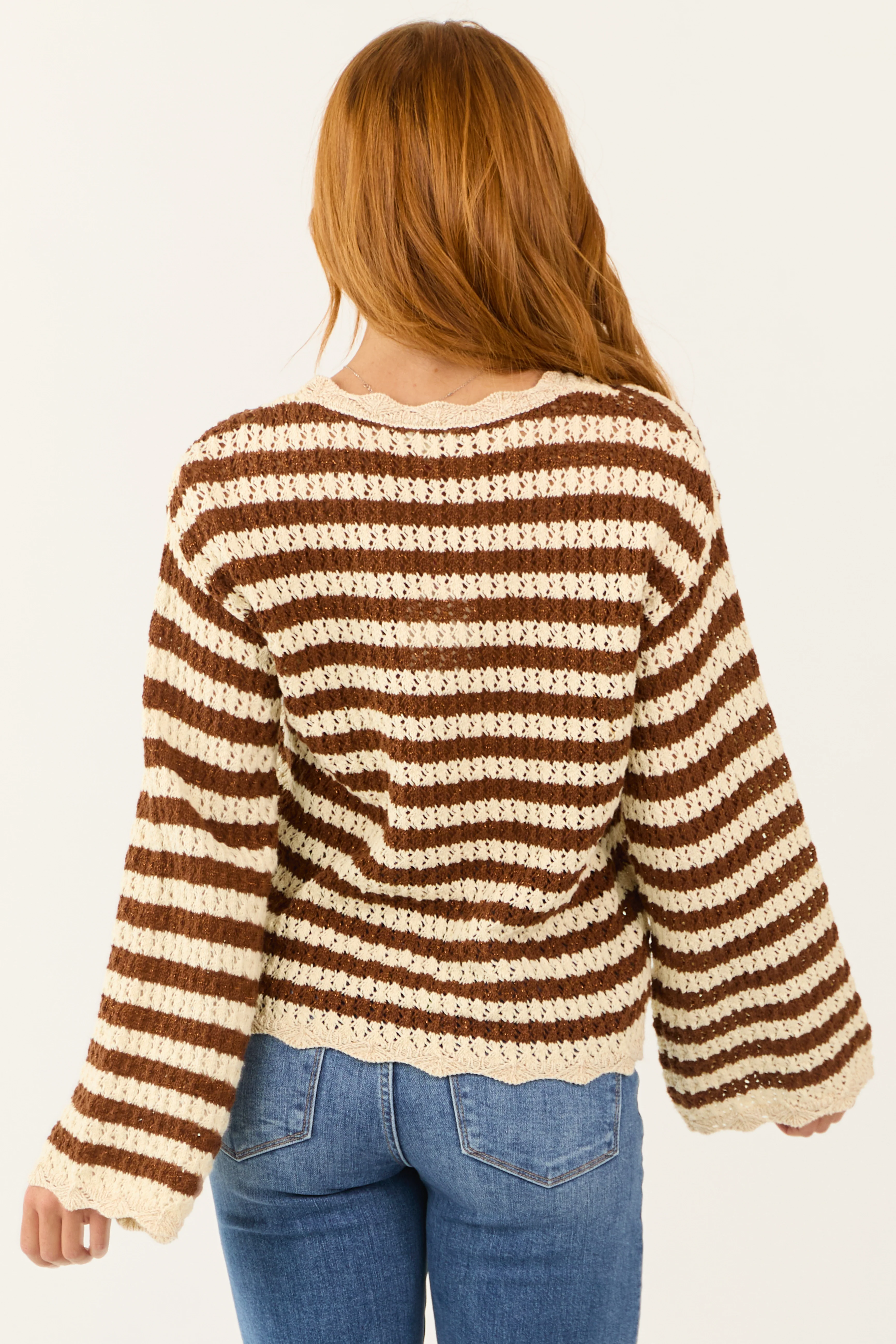 Black Crochet Knit High Cropped Long Sleeve Shrug