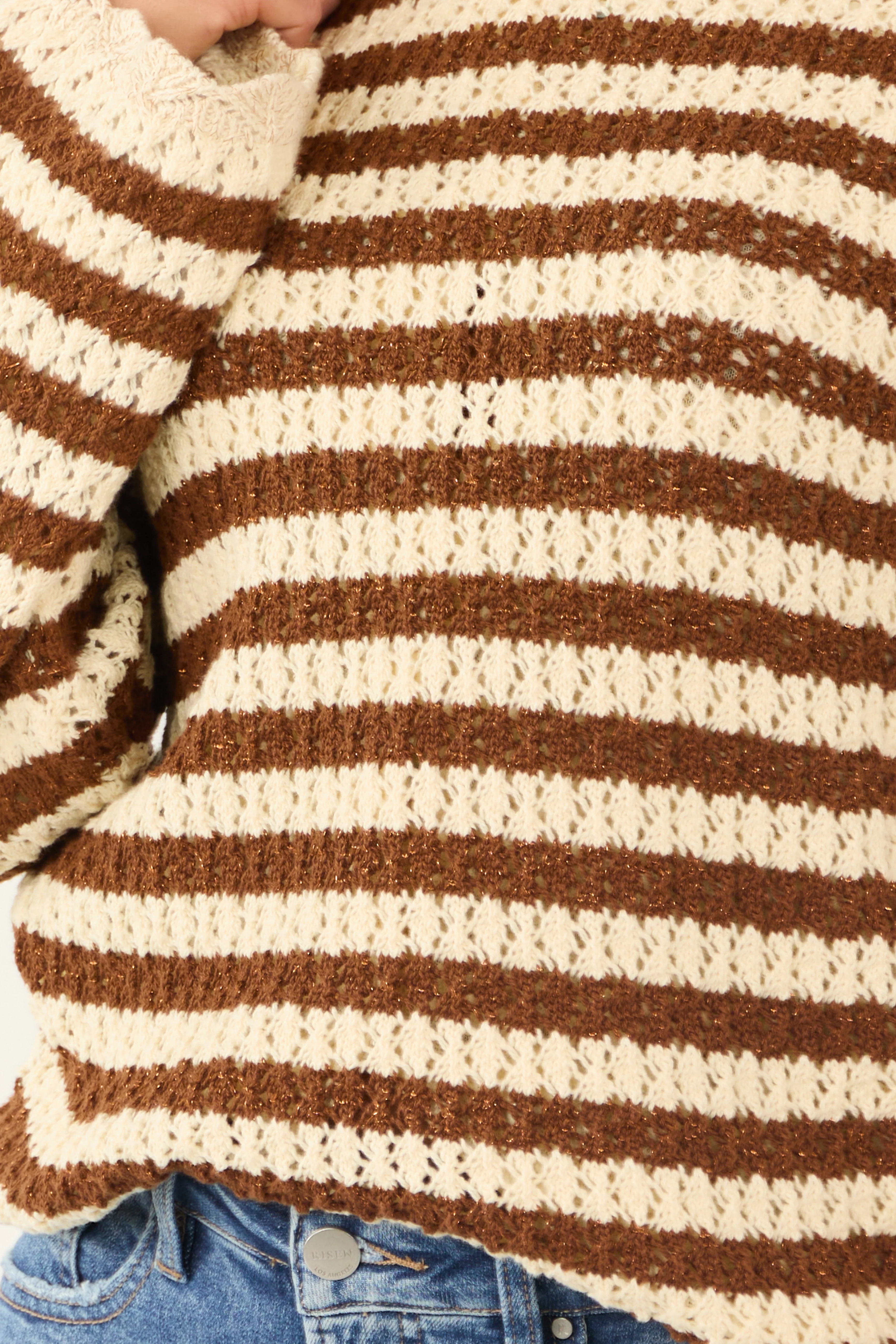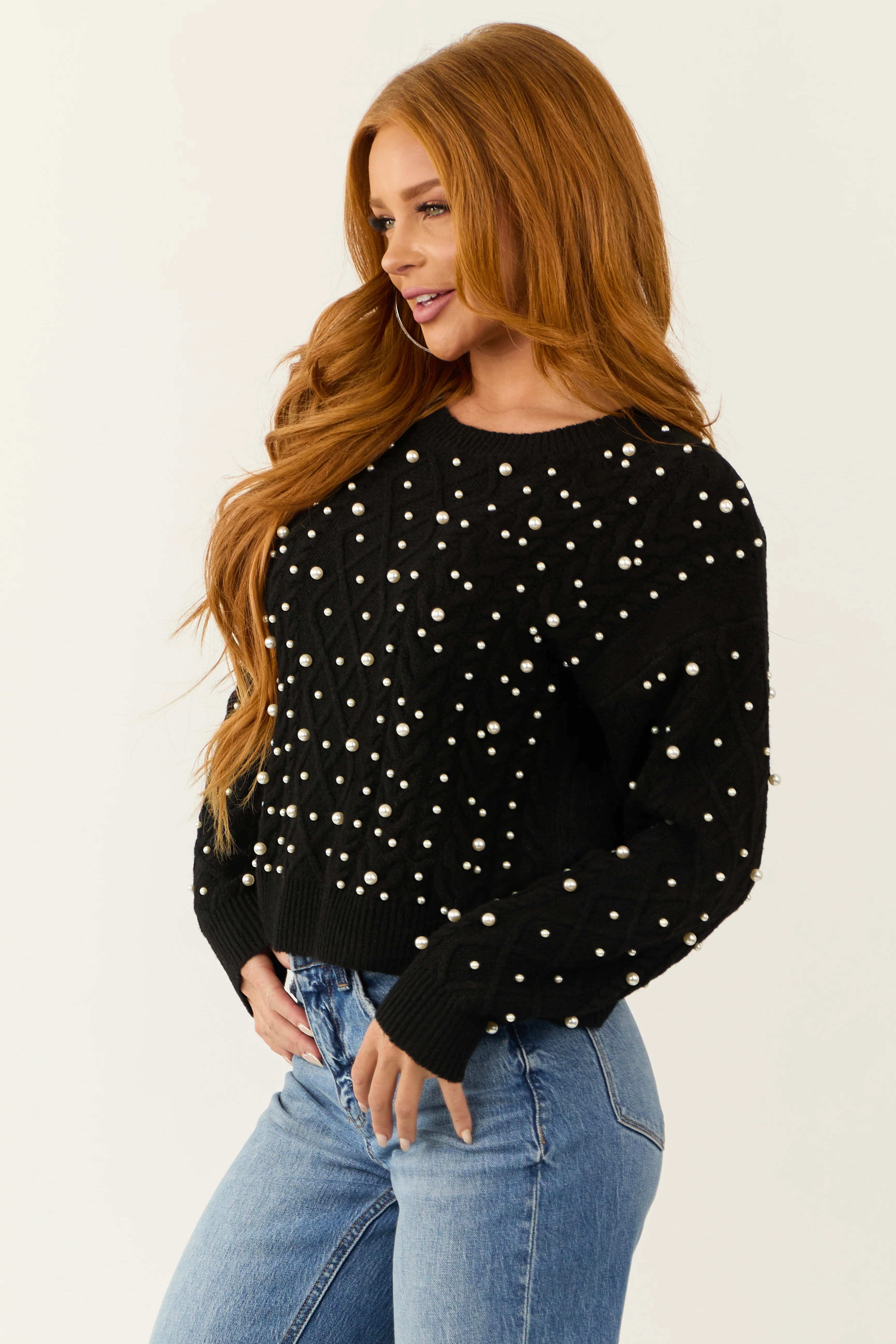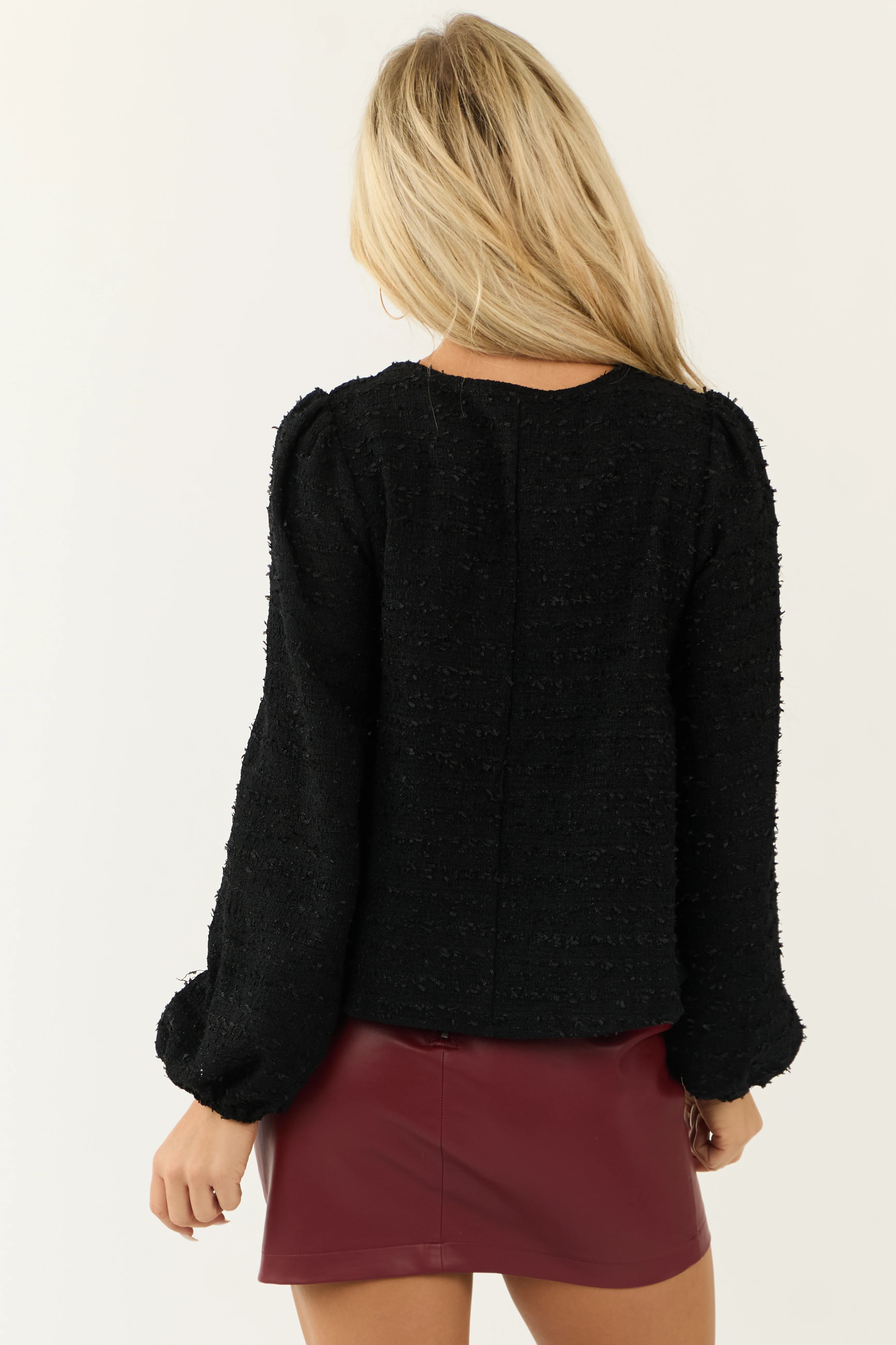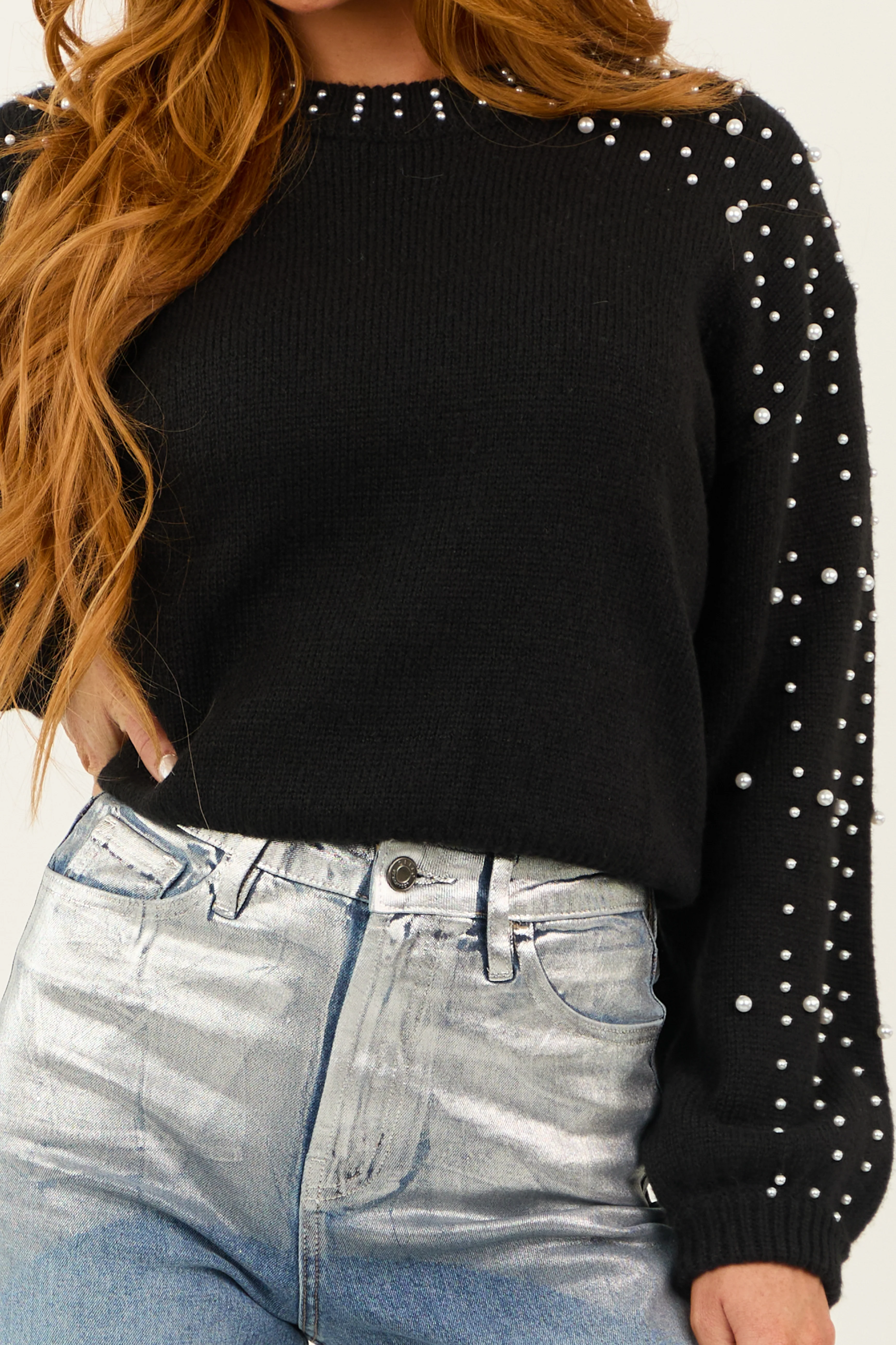 Black Pearl Accent Balloon Sleeve Knit Sweater